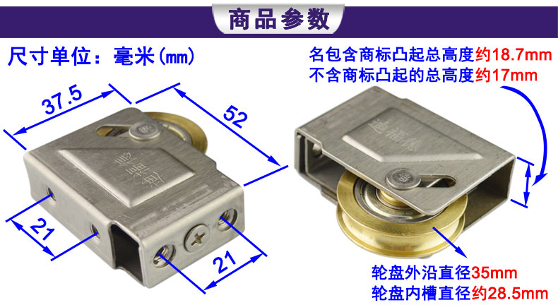 迪福德 2个装76型老式铝合金门窗滑轮平移推拉窗滚钢珠轴承轮子铜质轮盘 2个的价格