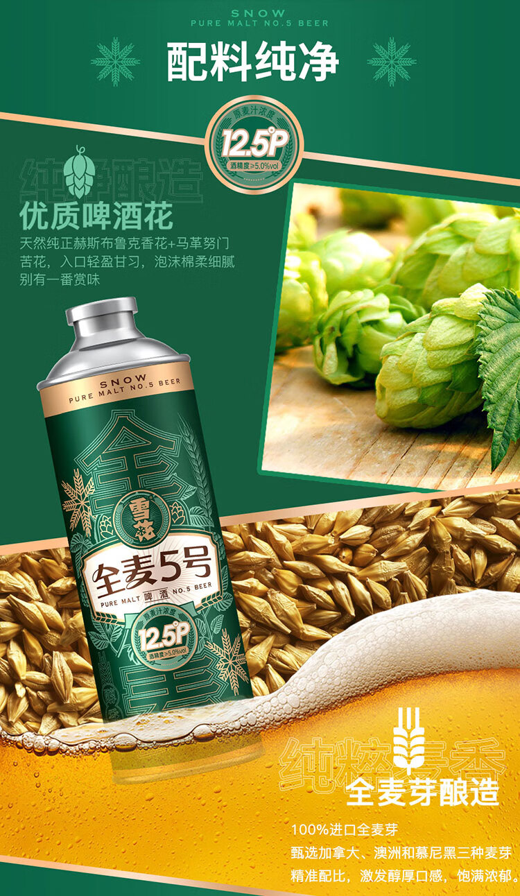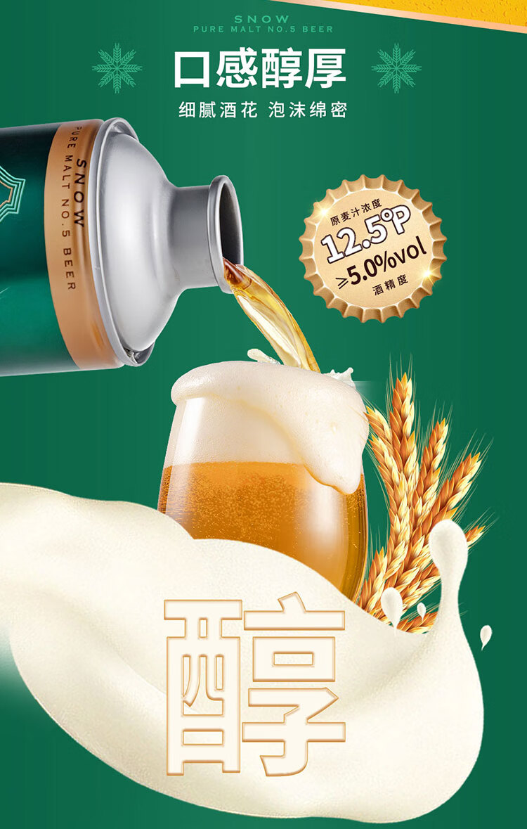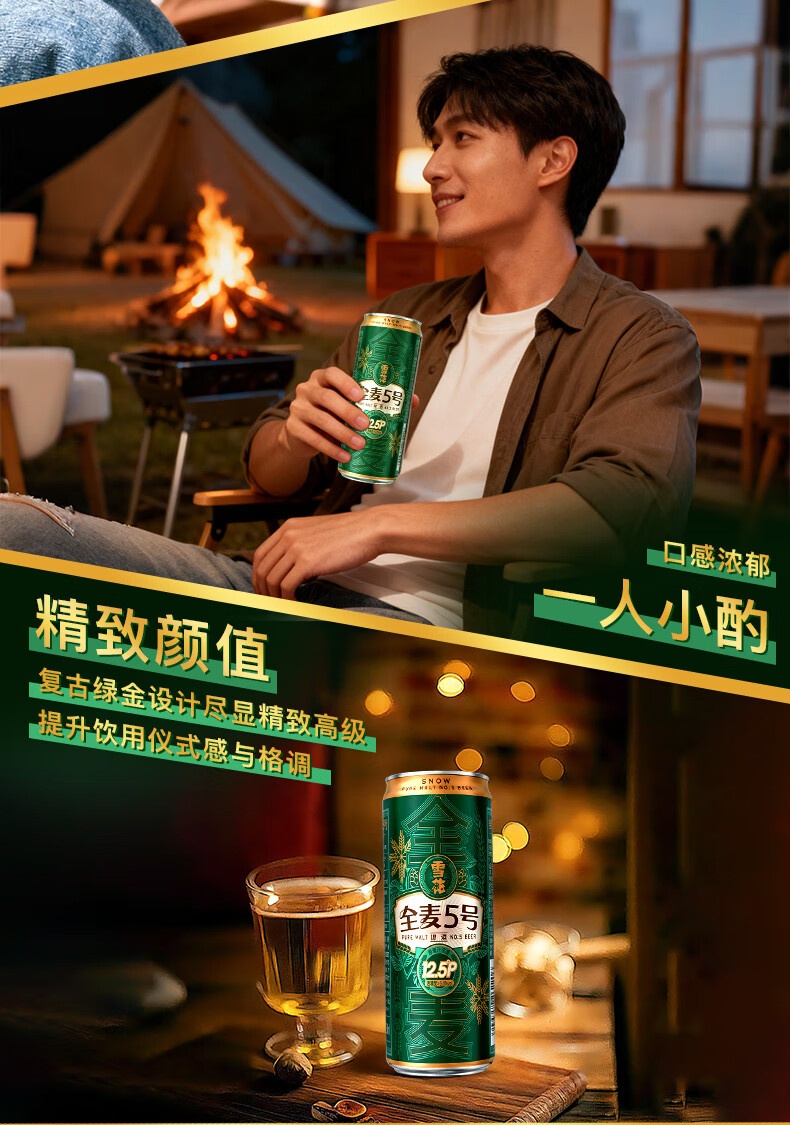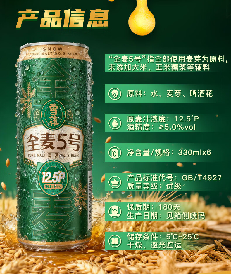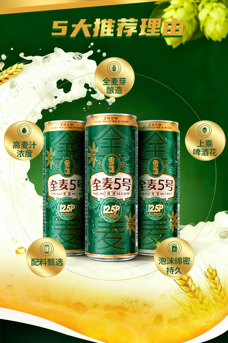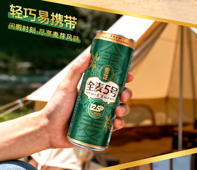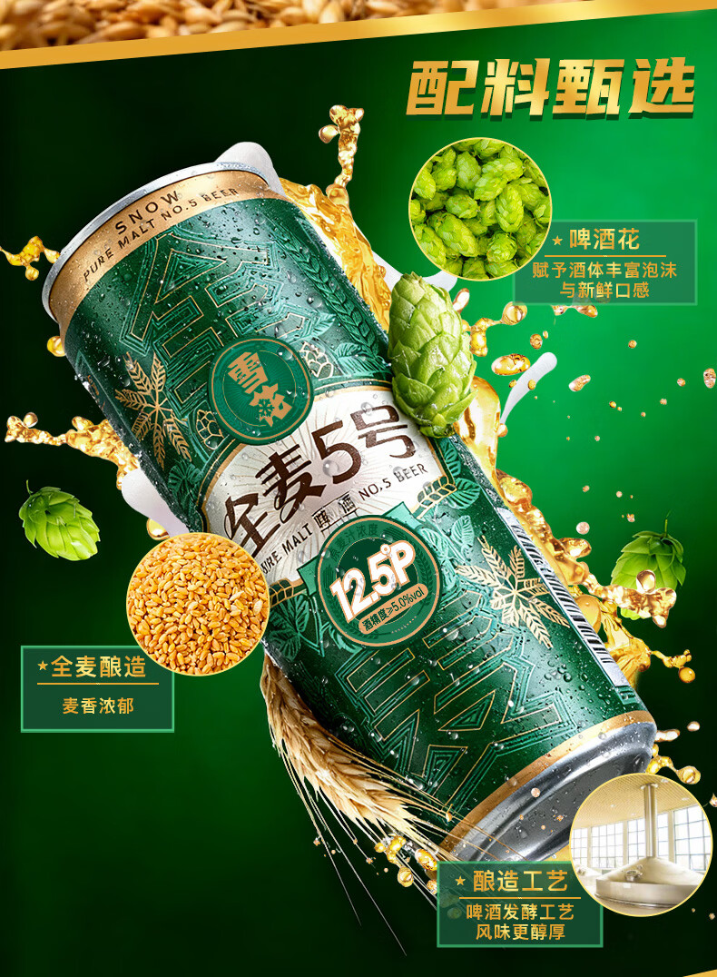雪花啤酒 全麦5号 全麦芽高浓度醇香啤酒 全麦芽 500mL 21罐 整箱装 到期日2月