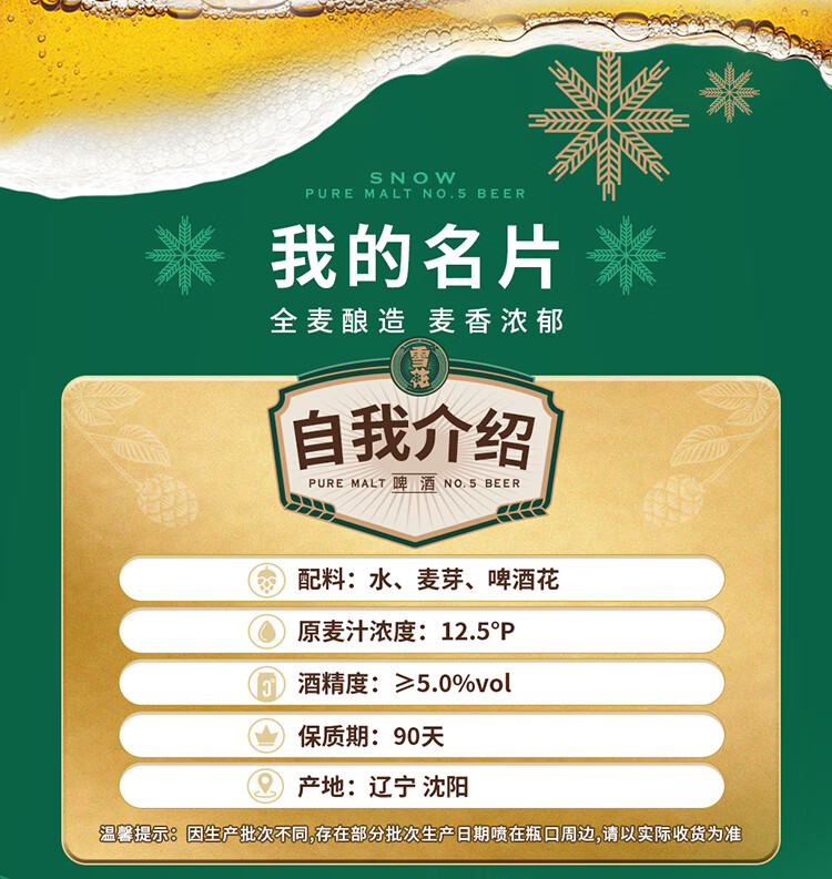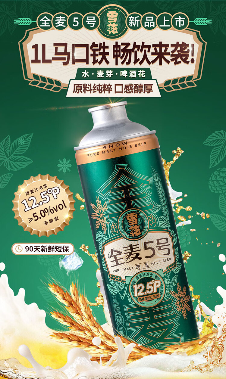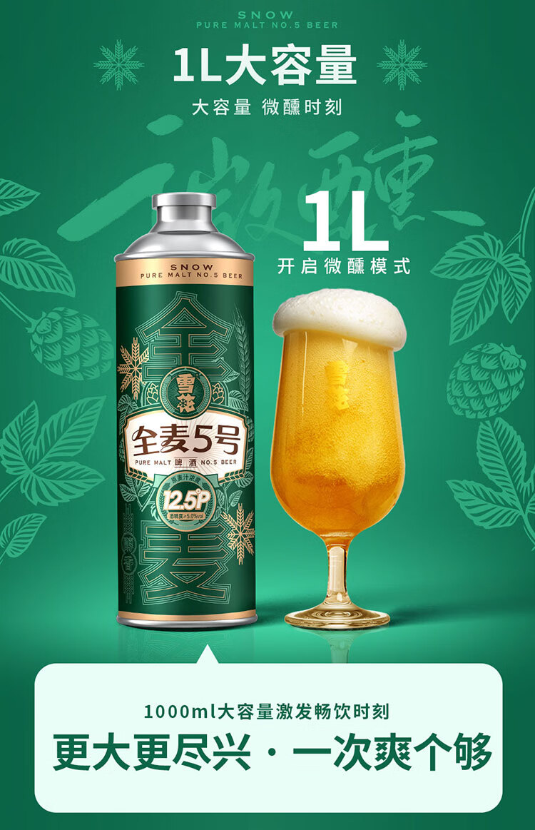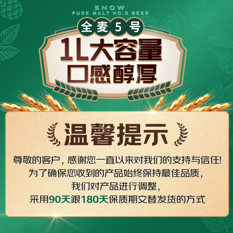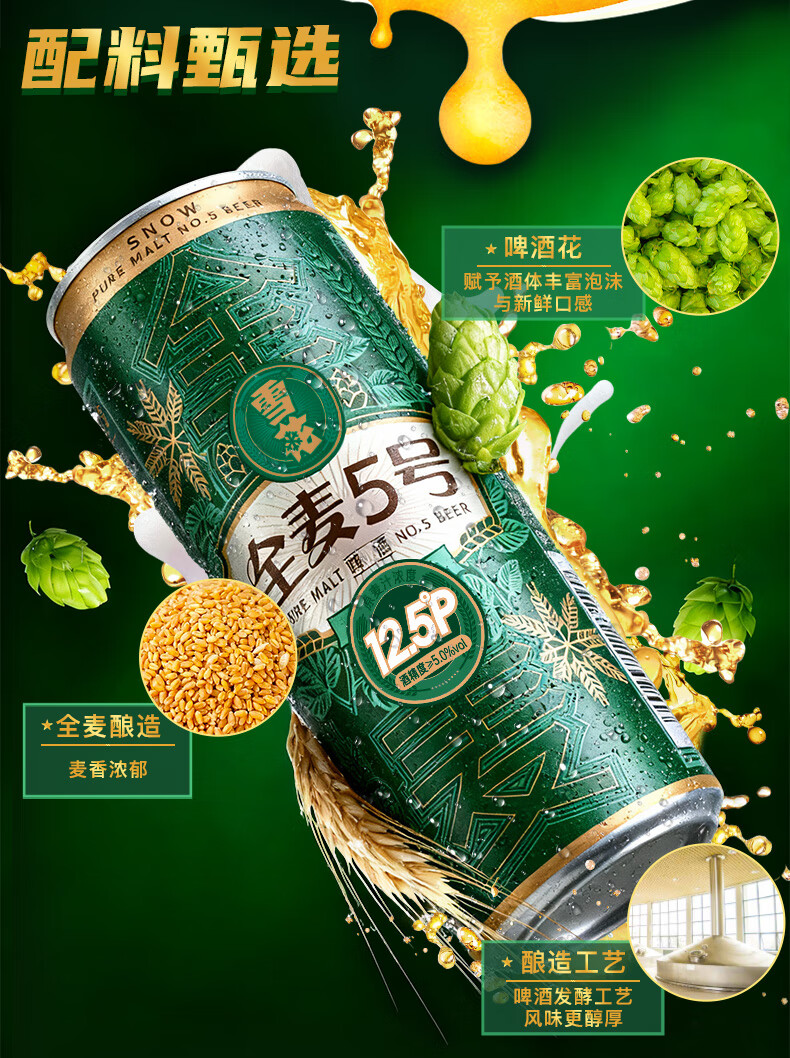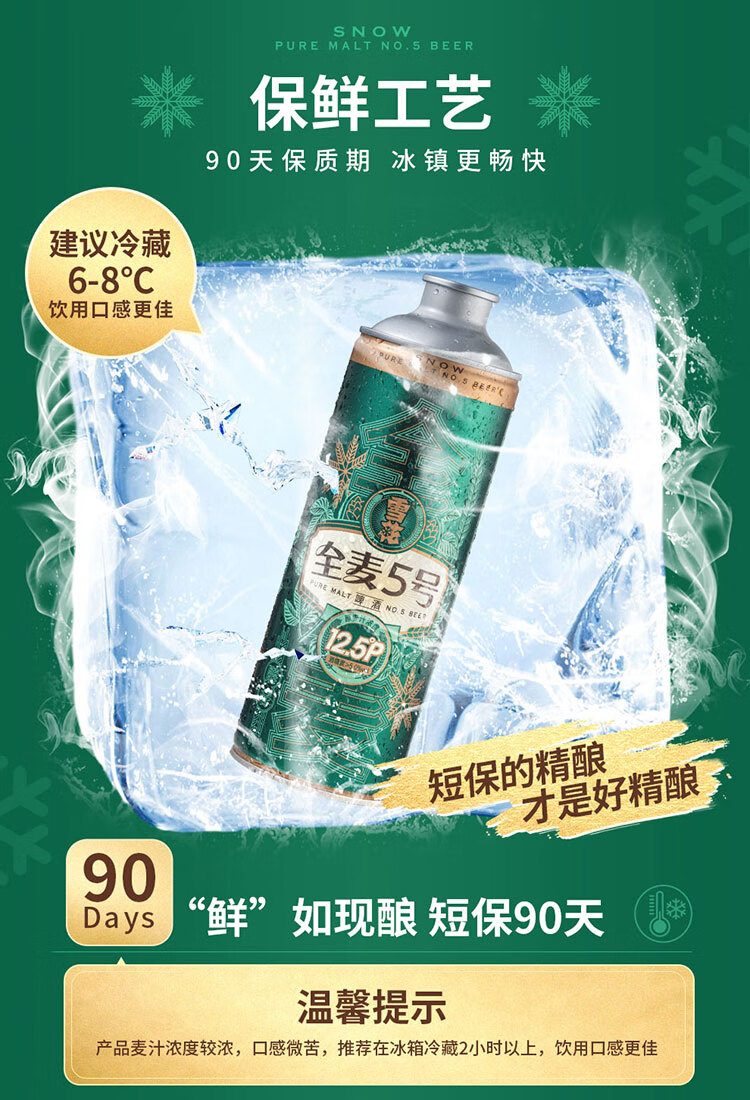 雪花啤酒 全麦5号 全麦芽高浓度醇香啤酒 全麦芽 500mL 21罐 整箱装 到期日2月