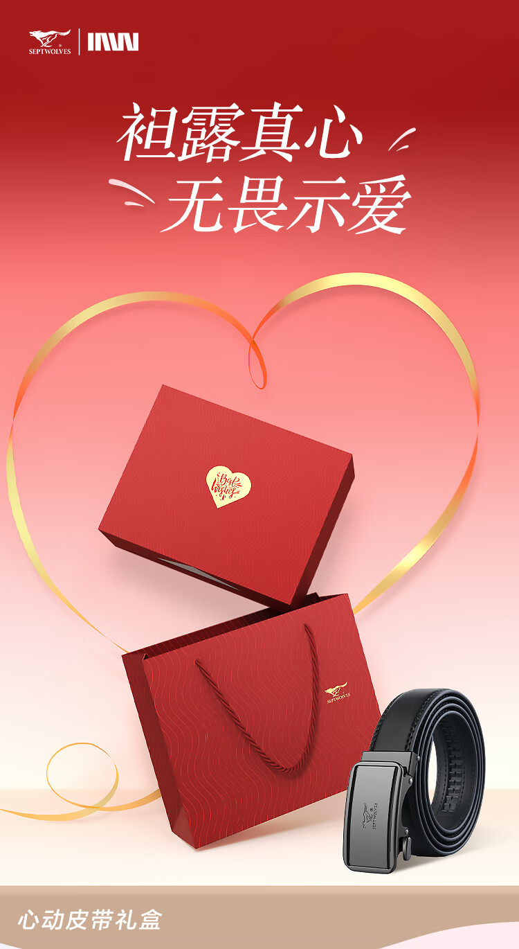 七匹狼男士皮带真牛皮商务自动扣裤腰带实用生日情人节礼物送男友老公 敞开心扉爱意礼 110cm -120cm可备注