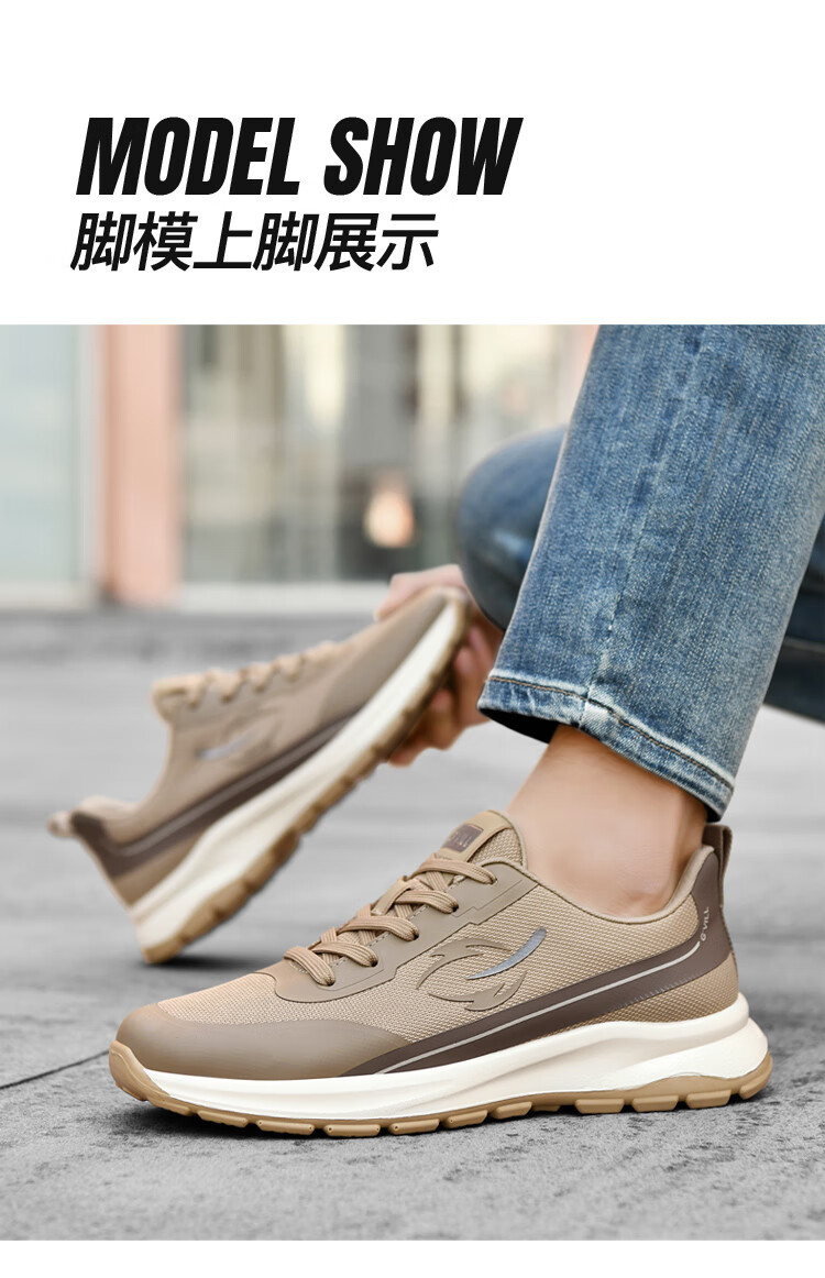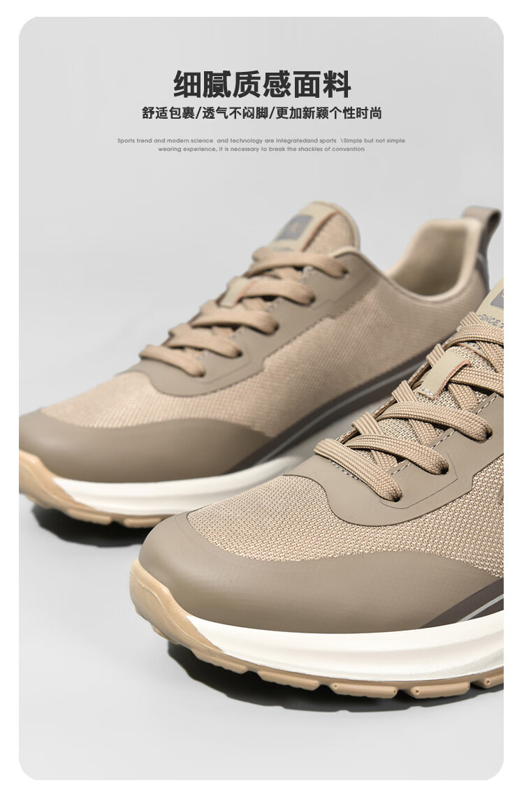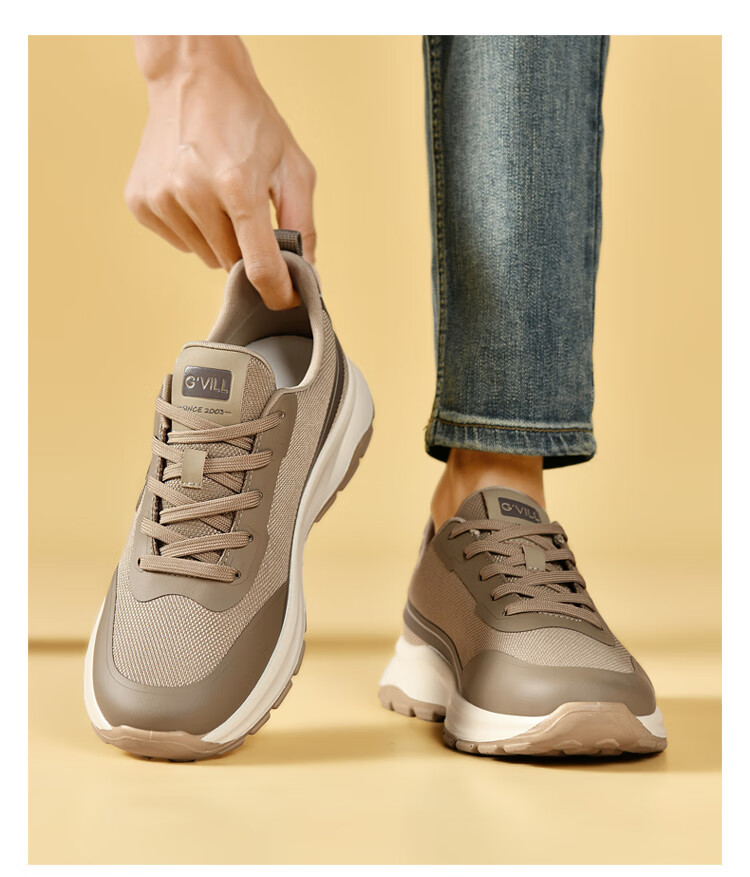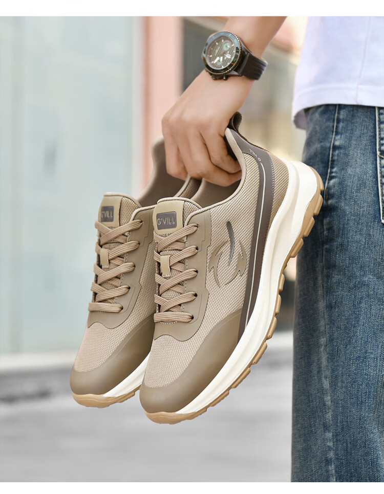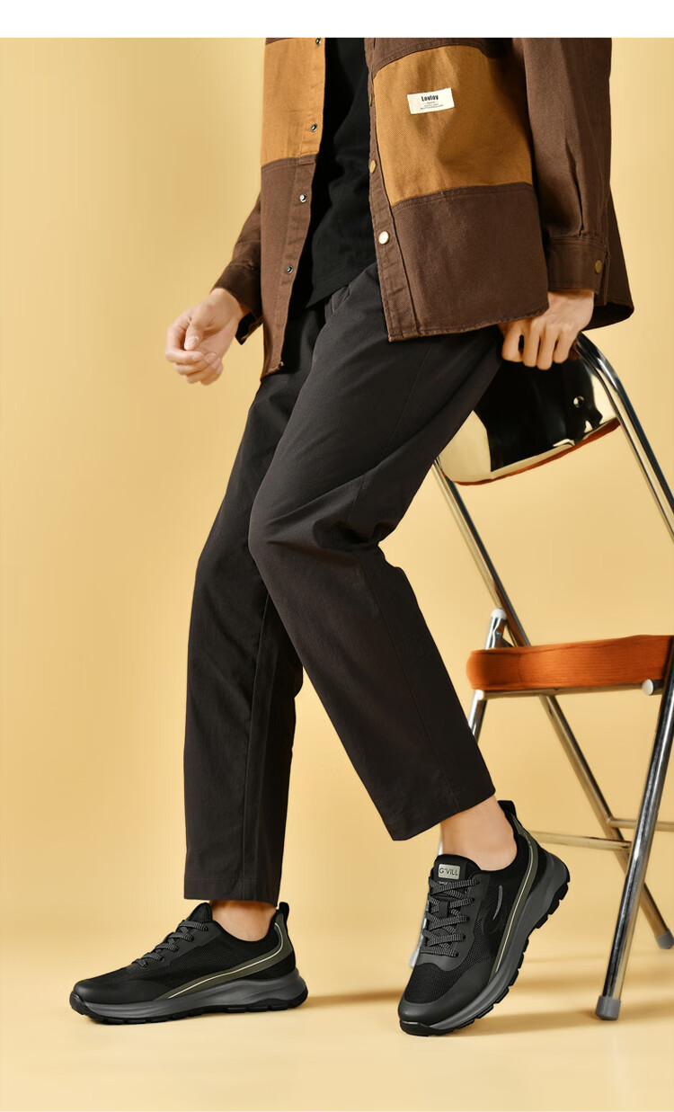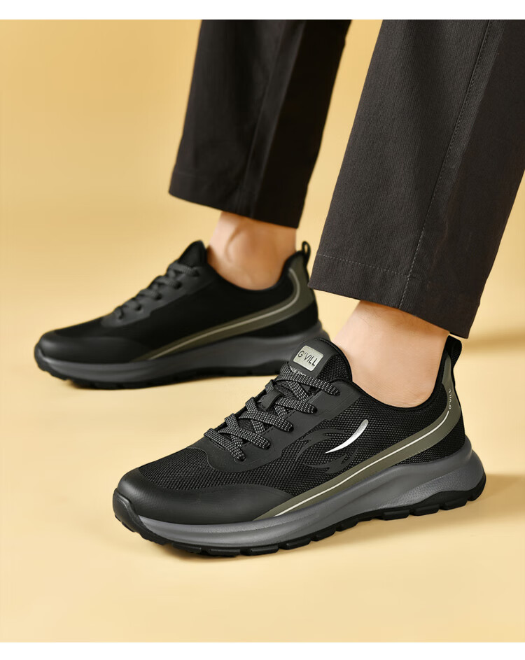 贵之步新款秋冬季舒适软底防滑缓震休闲鞋男款厚底增高运动鞋男鞋 黑杏 G003 42 (运动鞋码)