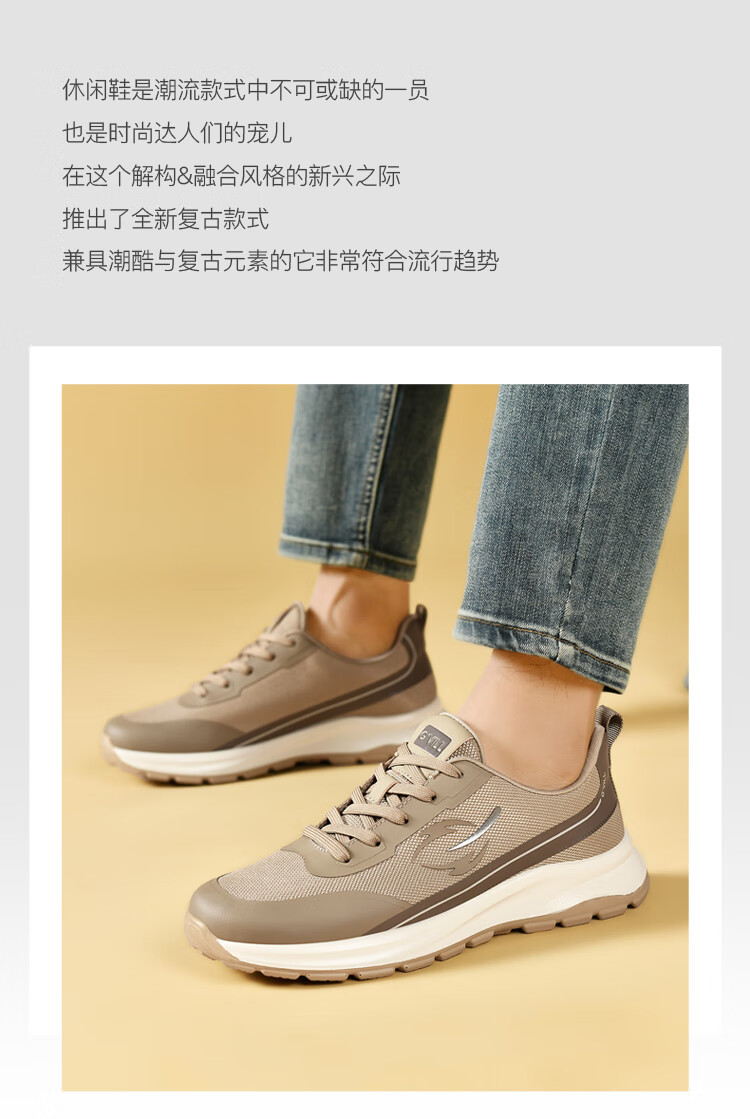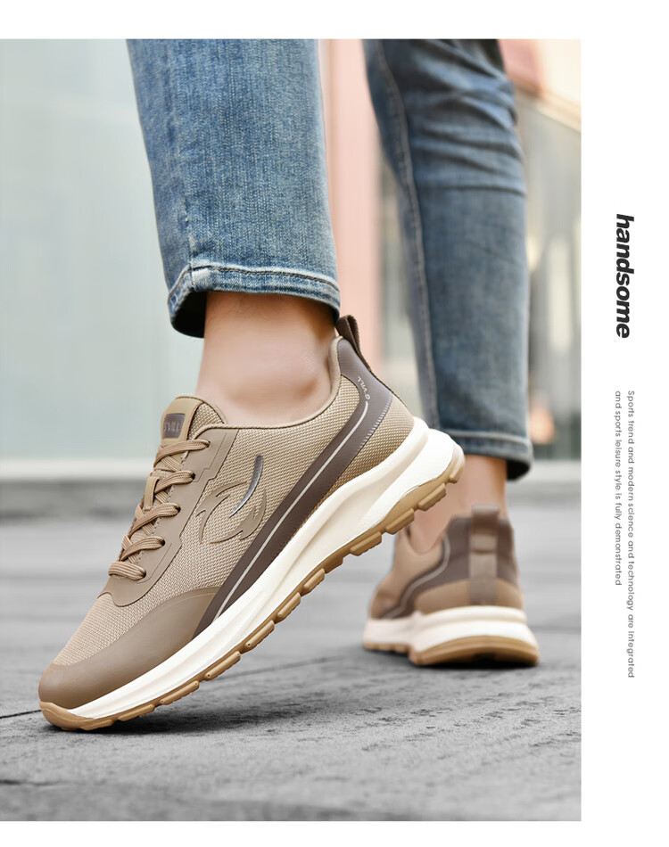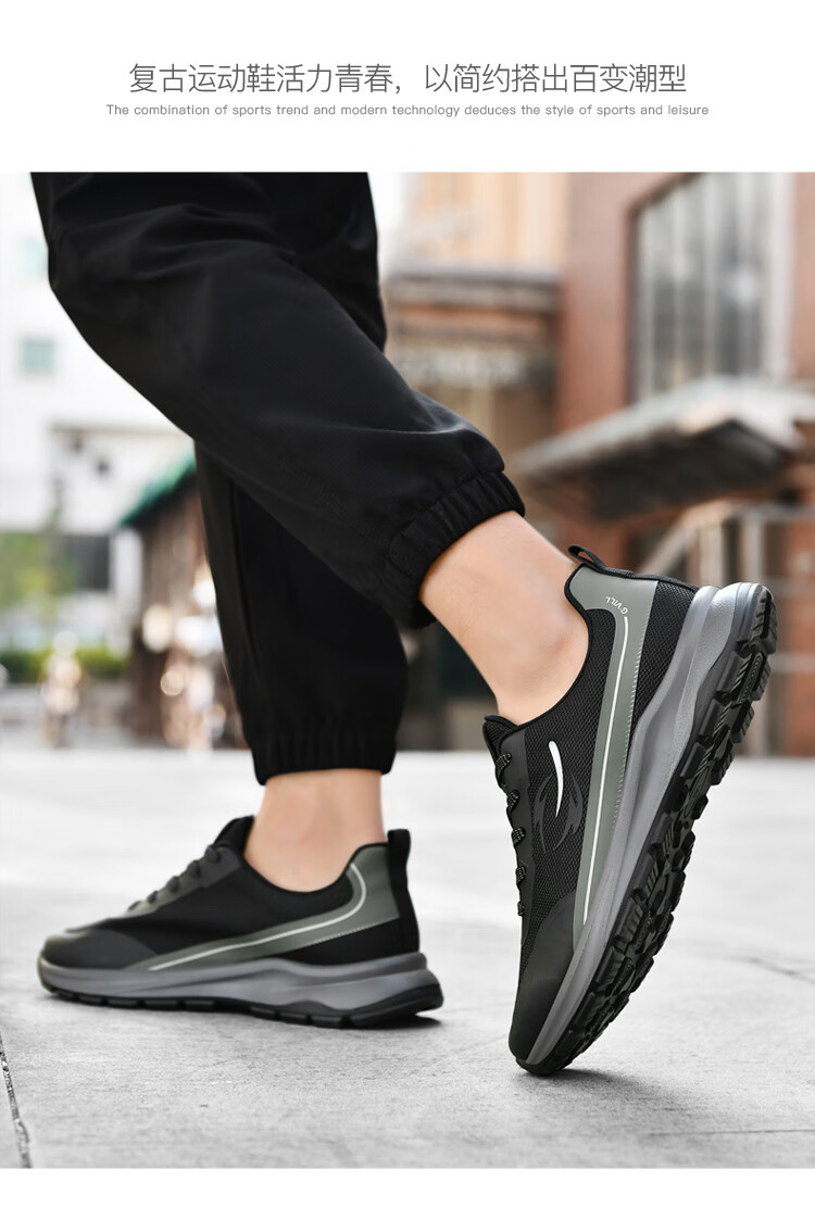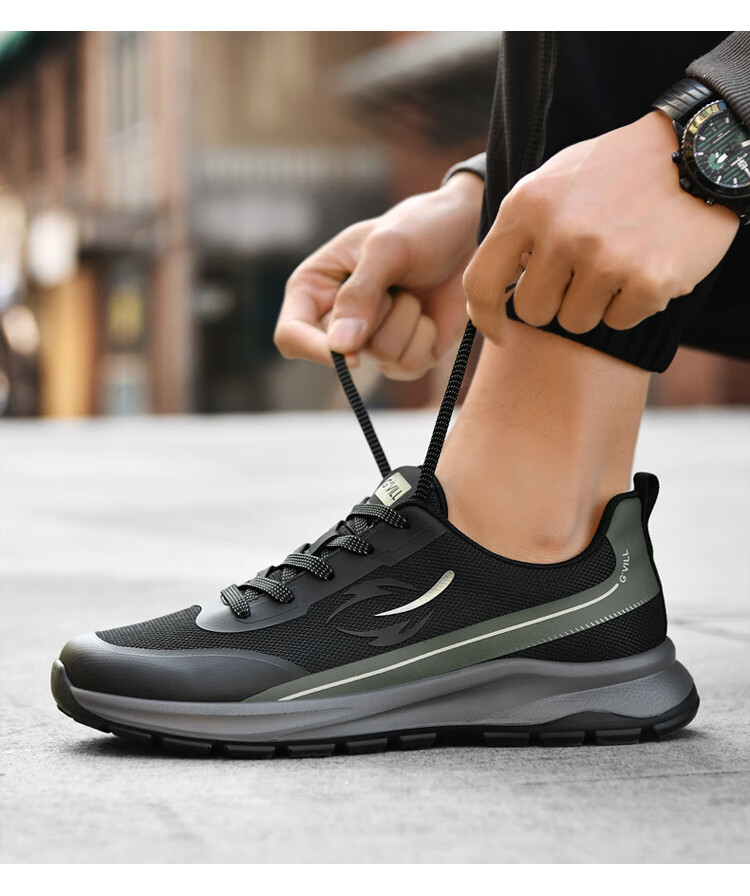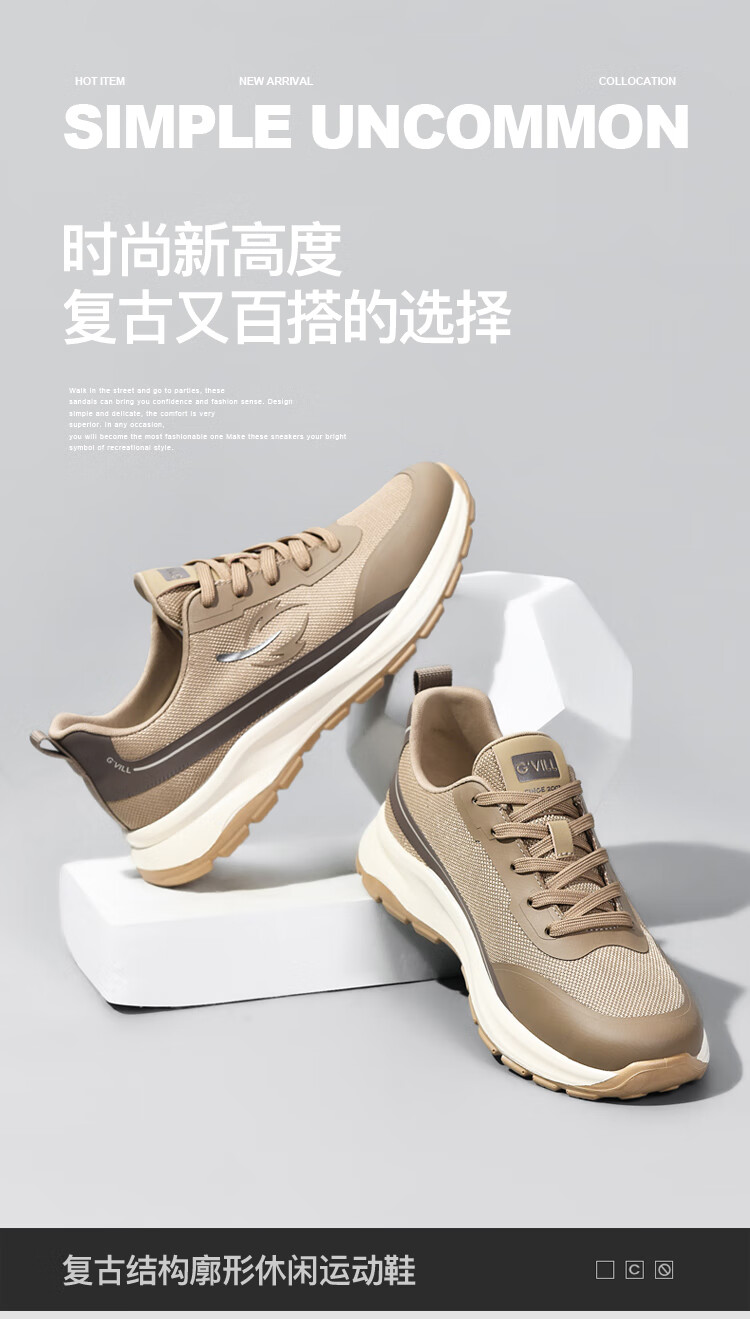 贵之步新款秋冬季舒适软底防滑缓震休闲鞋男款厚底增高运动鞋男鞋 黑杏 G003 42 (运动鞋码)