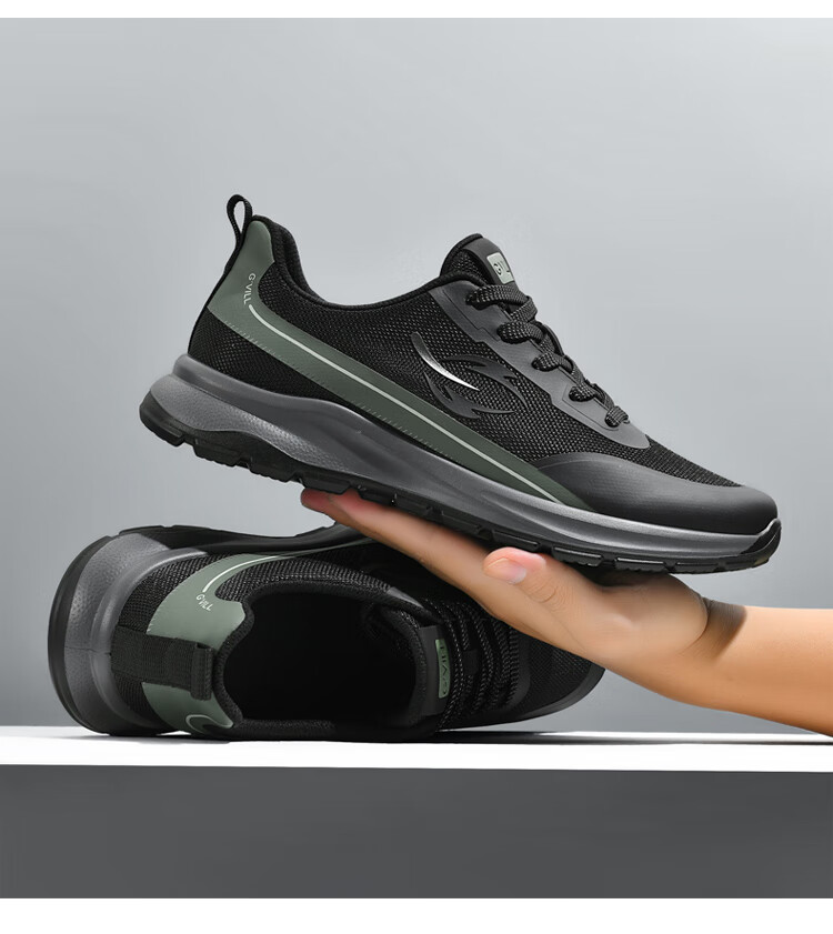 贵之步秋冬季新款软底厚底增高透气休闲鞋男鞋缓震防滑舒适运动鞋 黑色 (G610) 42 (运动鞋码)