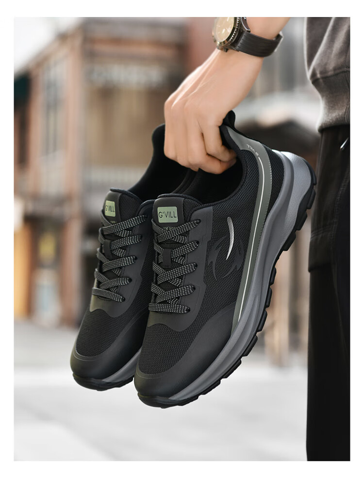 贵之步秋冬季男鞋新款休闲鞋软底防滑舒适运动鞋厚底增高缓震男款 黑色 G006 42 (运动鞋码)