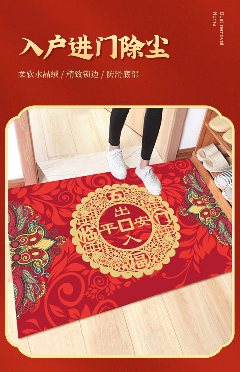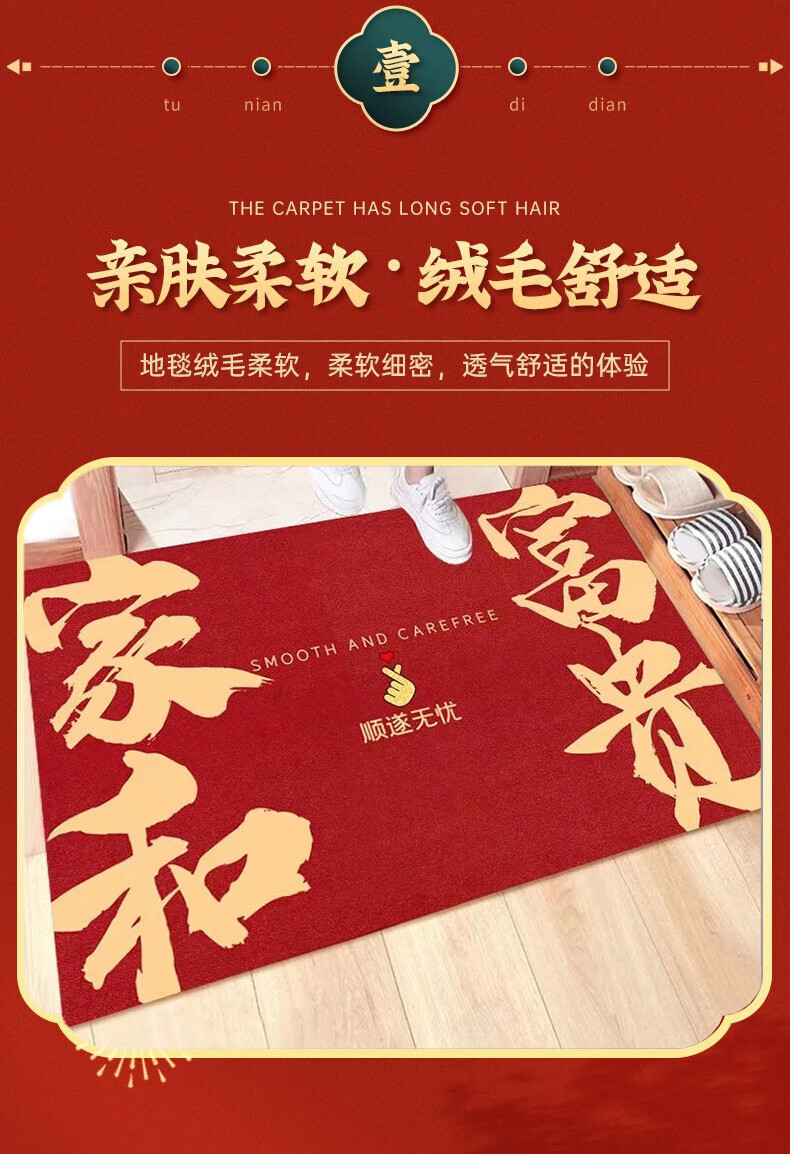 香巴赫德国入户门垫喜庆红色乔迁新居进门地垫家用耐脏玄关地毯防滑垫 诸事皆顺 定制联系客服【升级版TPR防滑底】