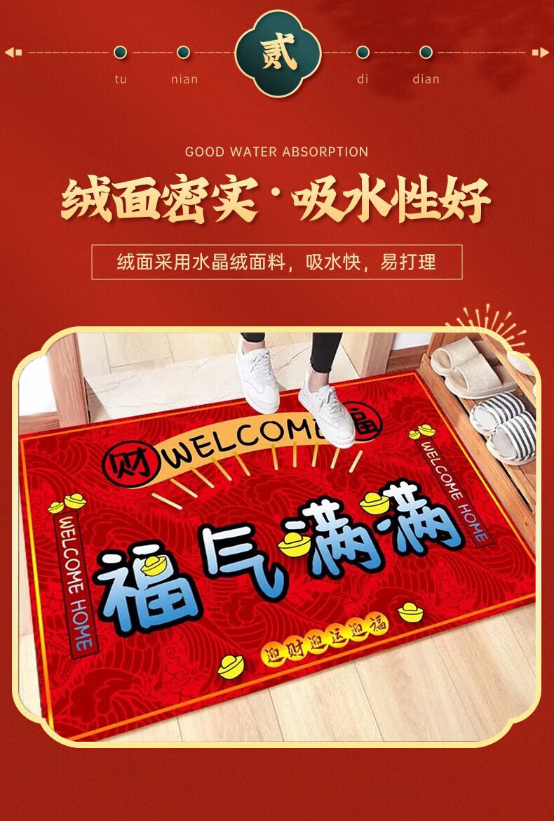 金玉铭川入户门地垫进门门口脚垫红色喜庆厨房龙年卫浴防滑垫家用吸水垫子 恭喜发财 50X80cm(卧室适用)