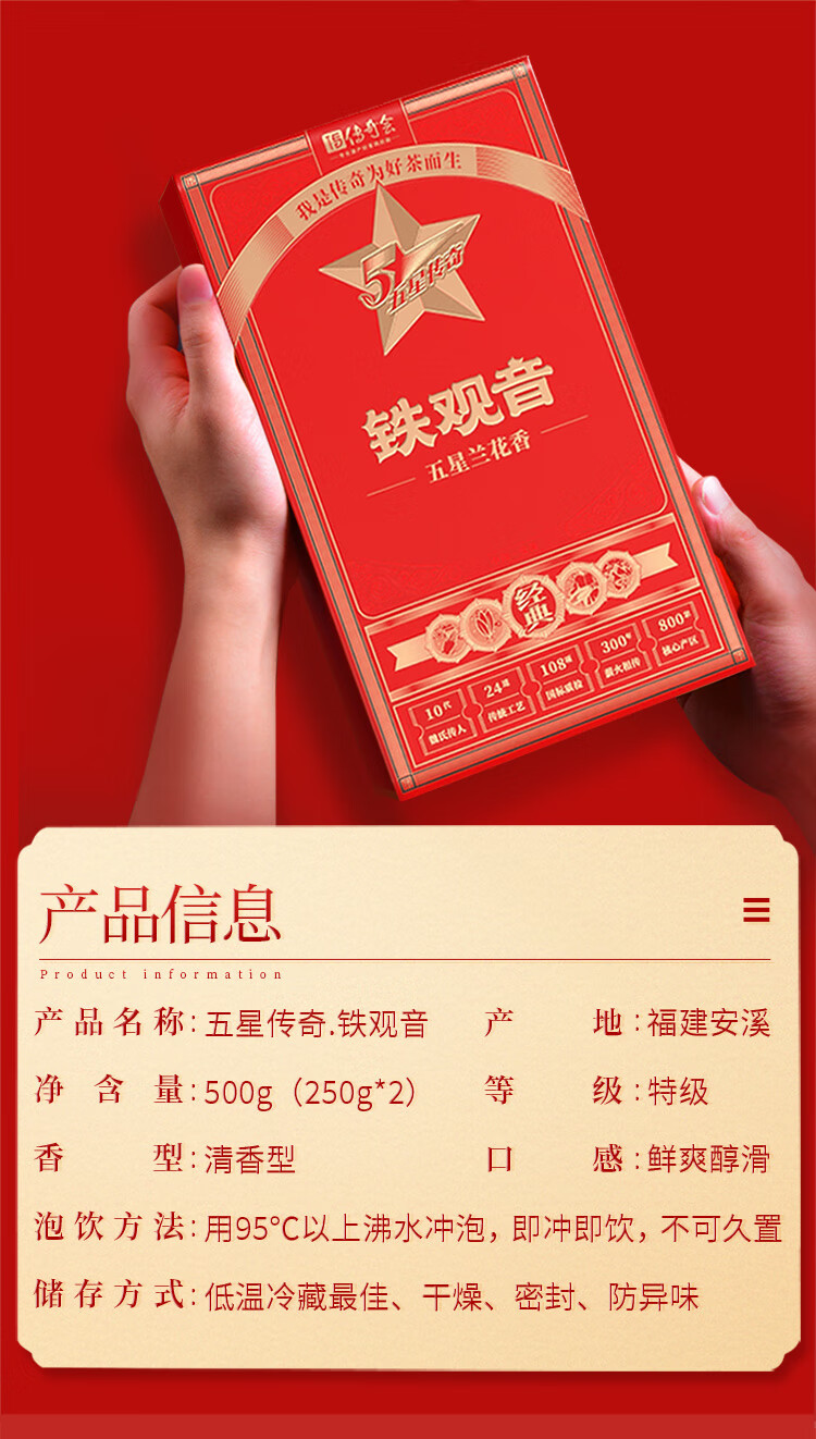 传奇会乌龙茶 安溪铁观音 清香型特级500g茶叶礼盒装自己喝年货春节送礼
