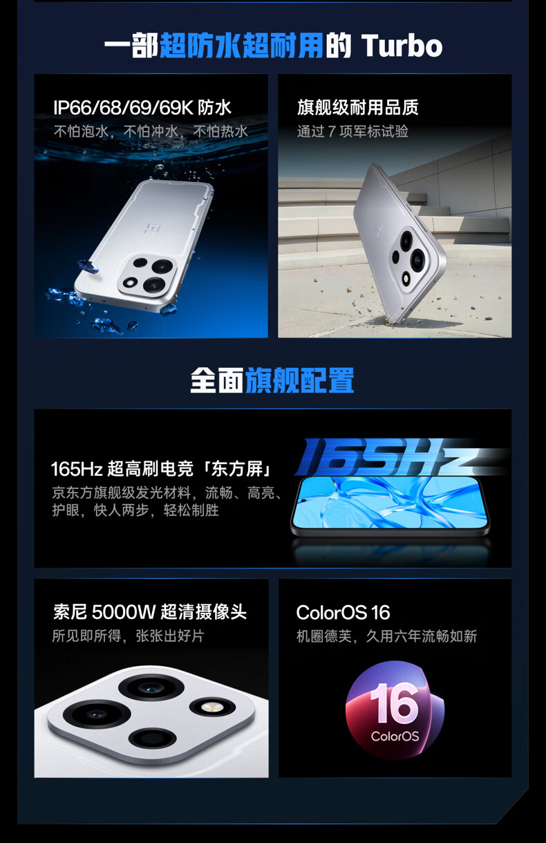 一加 Turbo 6 16GB+512GB 独行黑 oppo 9000mAh冰川电池 165Hz高刷东方屏 智能游戏电竞手机 国家补贴