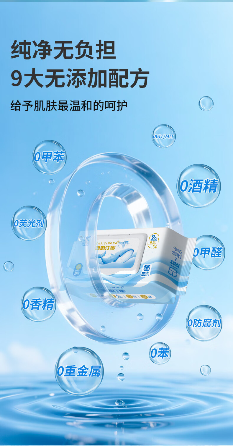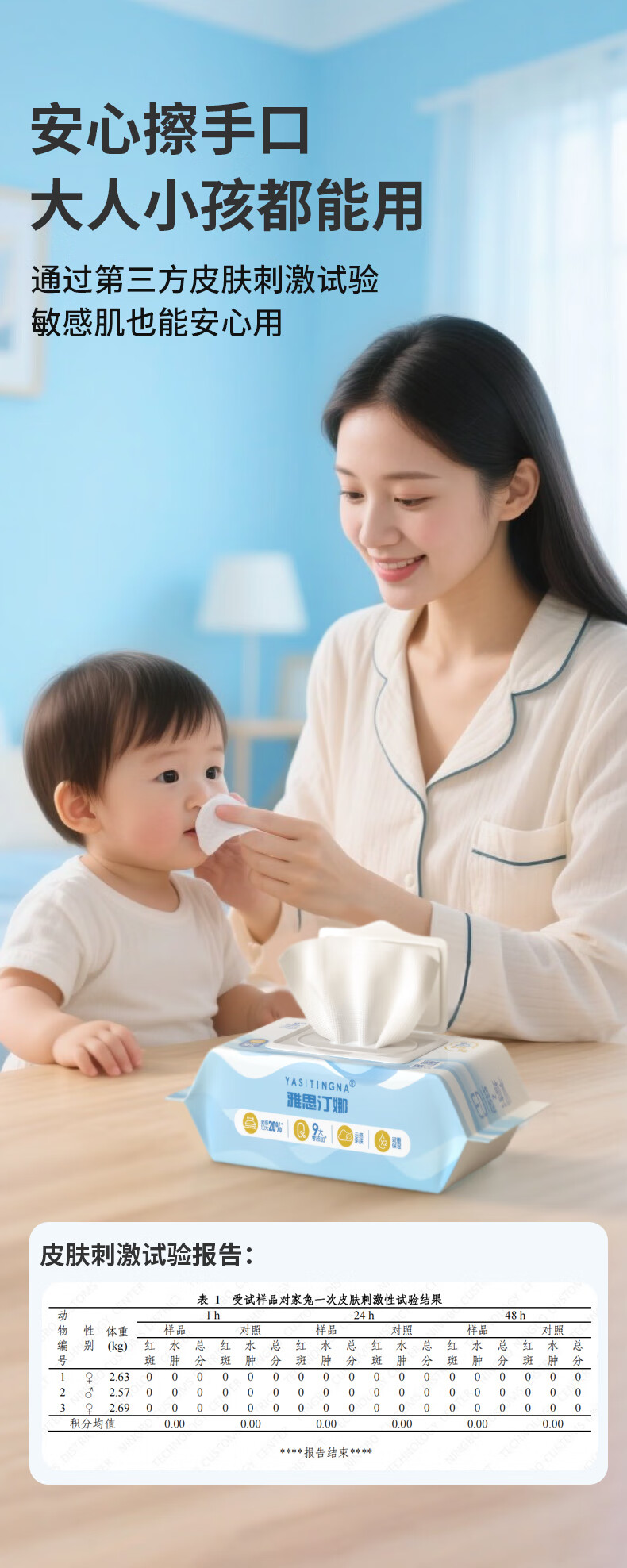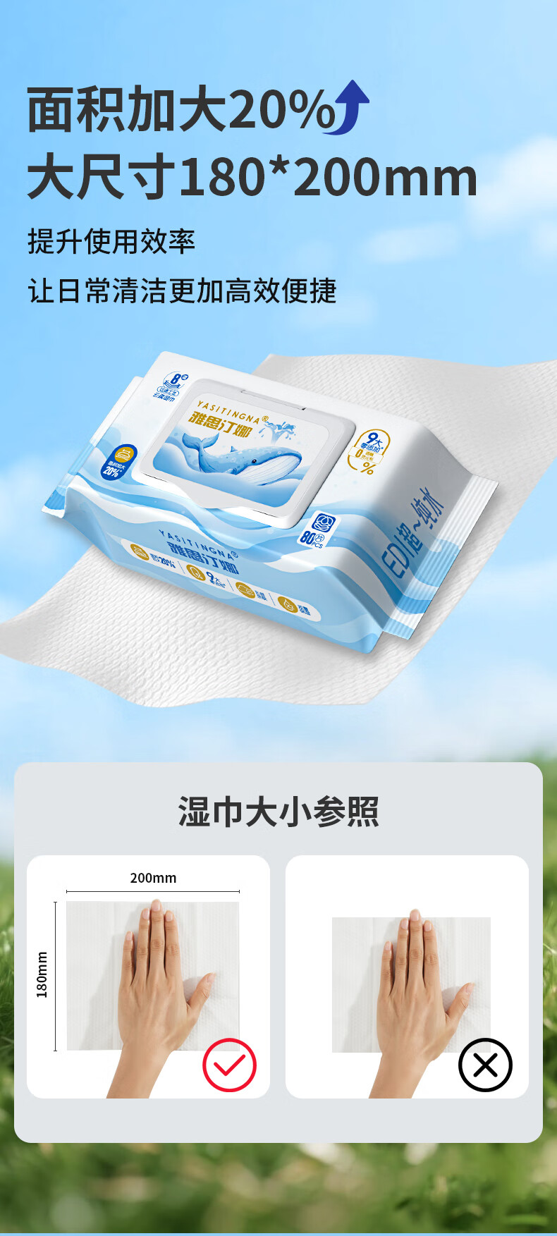 雅思汀娜湿巾EDI纯水湿纸巾80抽保湿亲肤不含酒精手口可用180*200mm 80抽*3包