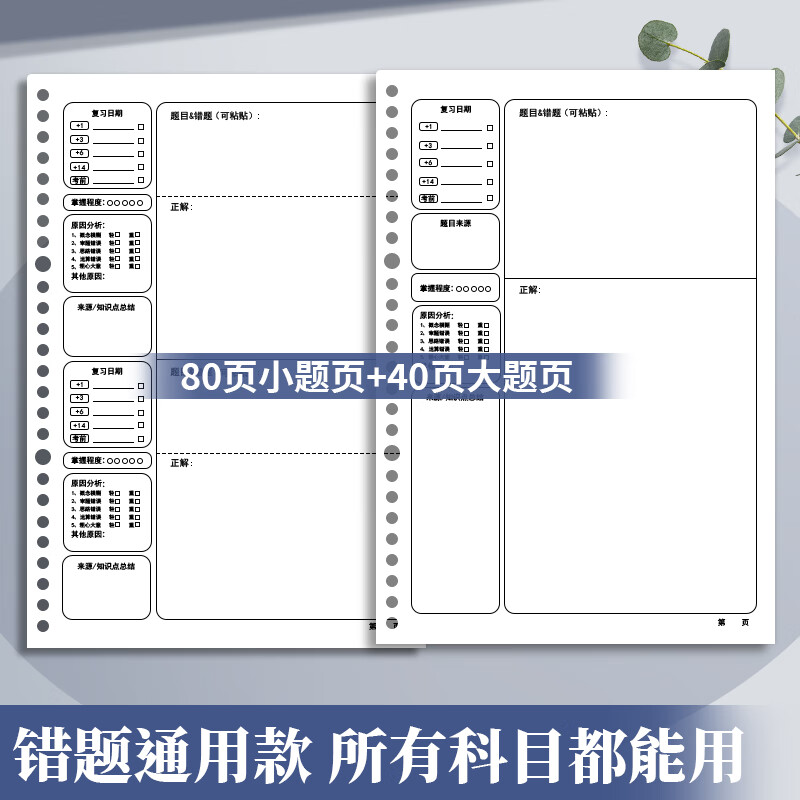 新时达 B5/120页错题本活页可拆卸合页小初高中大学生专用免抄加厚考研改错纠错集数学整理神器理化笔记本子