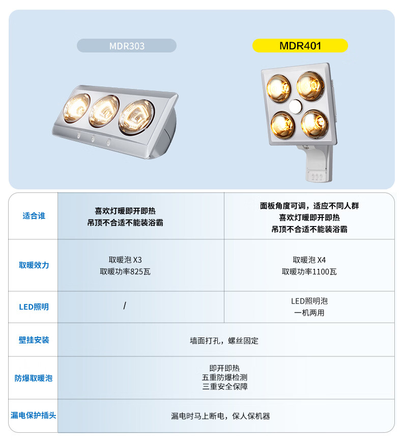 欧普照明(OPPLE)灯暖浴霸 壁挂系列 即开即热三重防护 MDR401