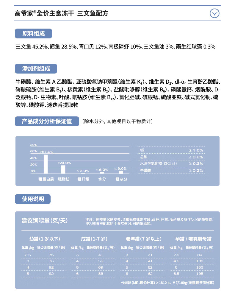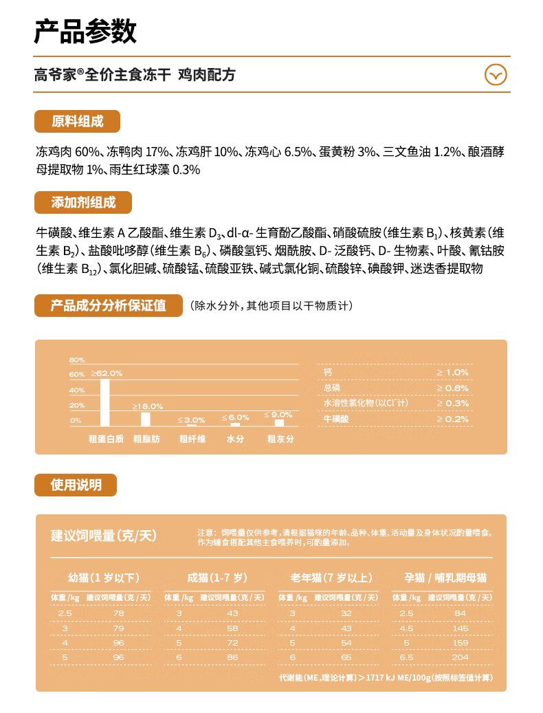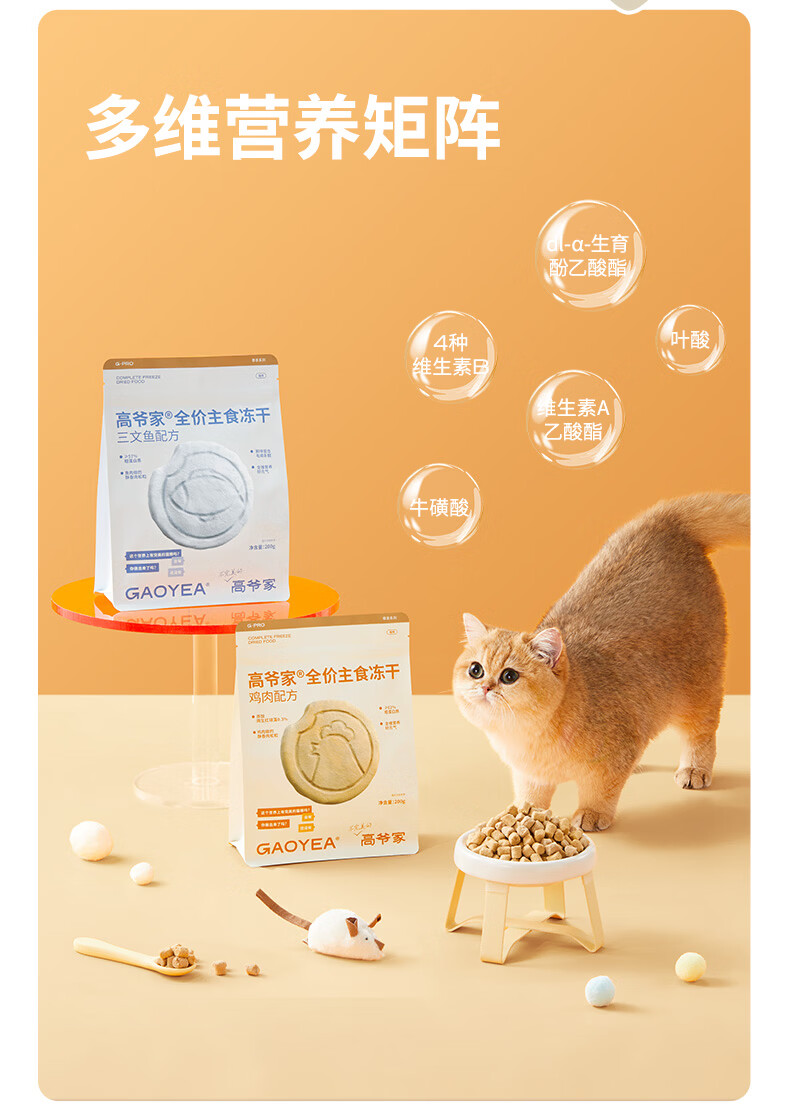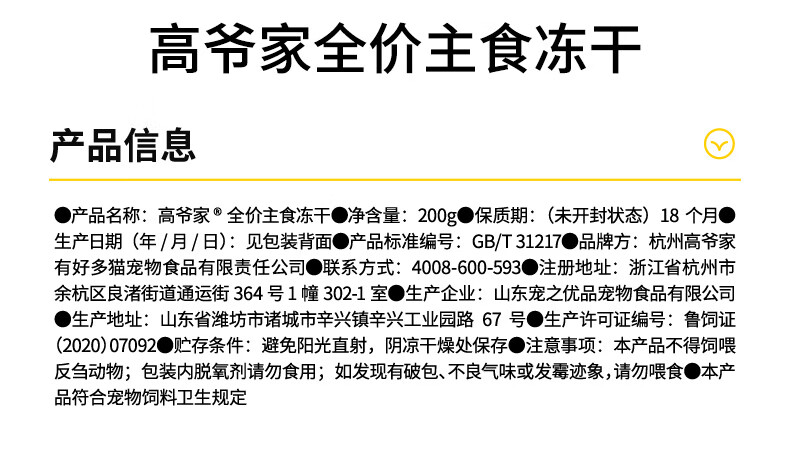 高爷家全价主食生骨肉冻干猫粮鸡肉鱼肉成猫幼猫粮营养冻干200g/袋 鸡肉每日冻干200g