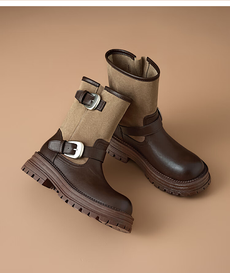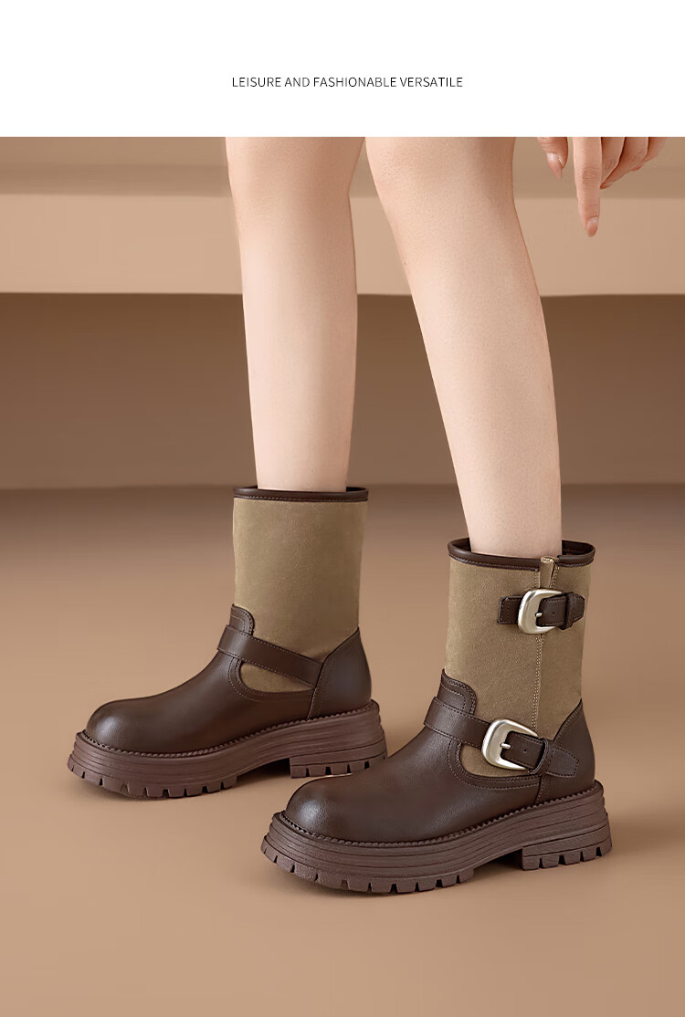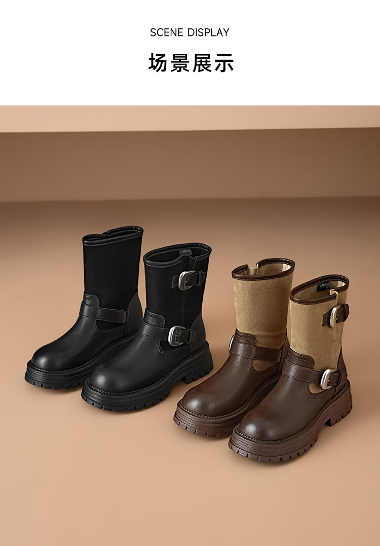 星期六厚底马丁靴女款2025新款秋季复古瘦瘦短靴美拉德骑士西部靴 棕色 35