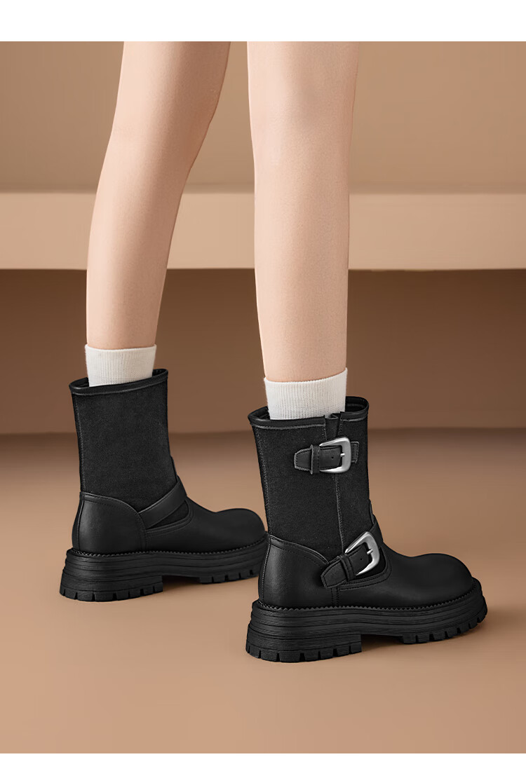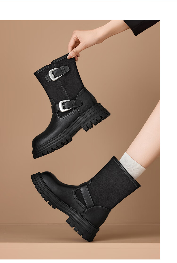 FZT厚底雪地靴女款2025新款冬季加绒加厚皮毛一体保暖防滑棉鞋女外穿 黑色【主图款】 35 (内长22.5cm)