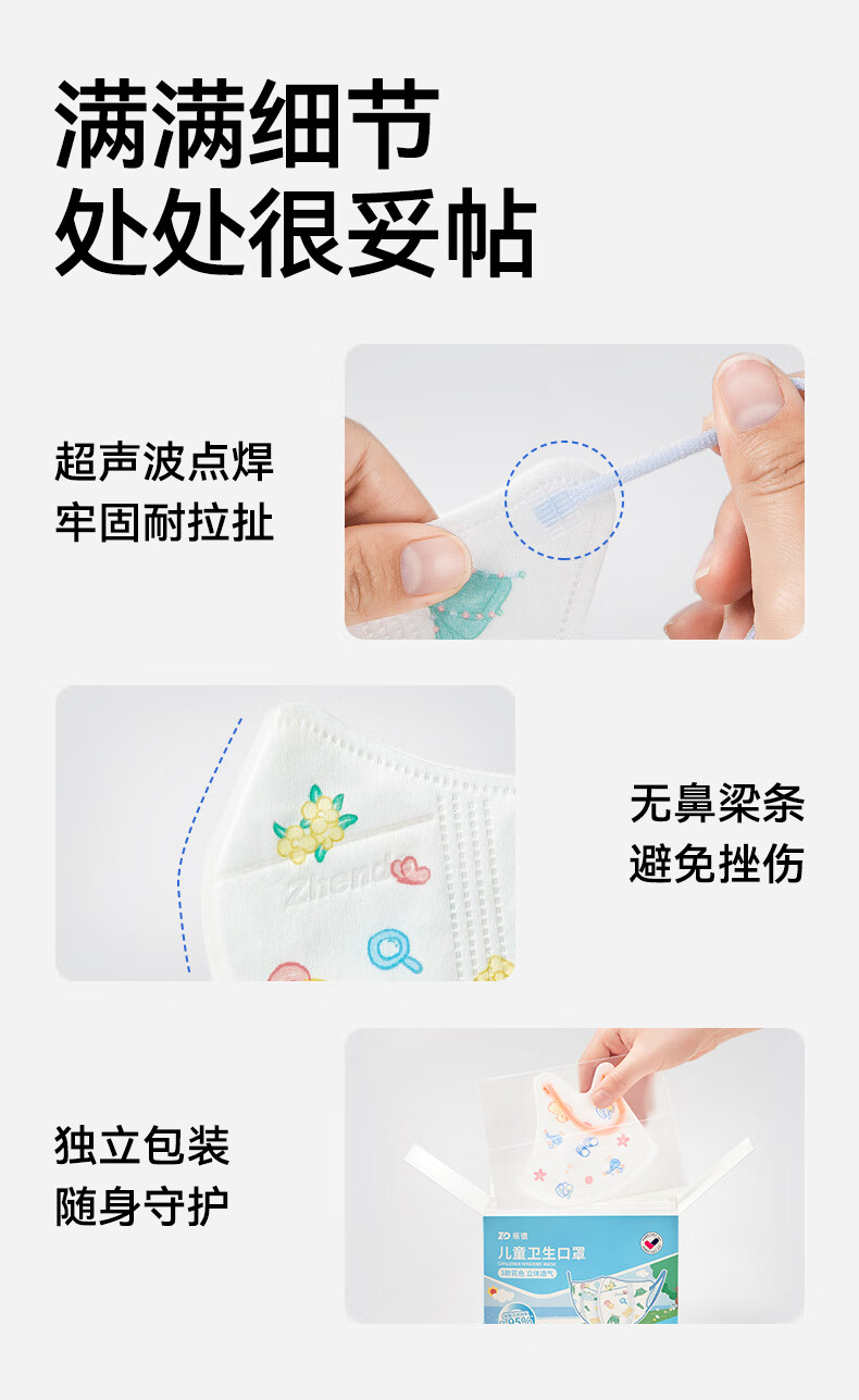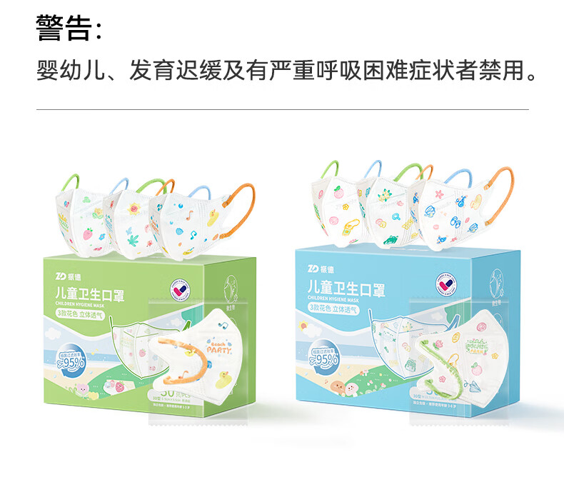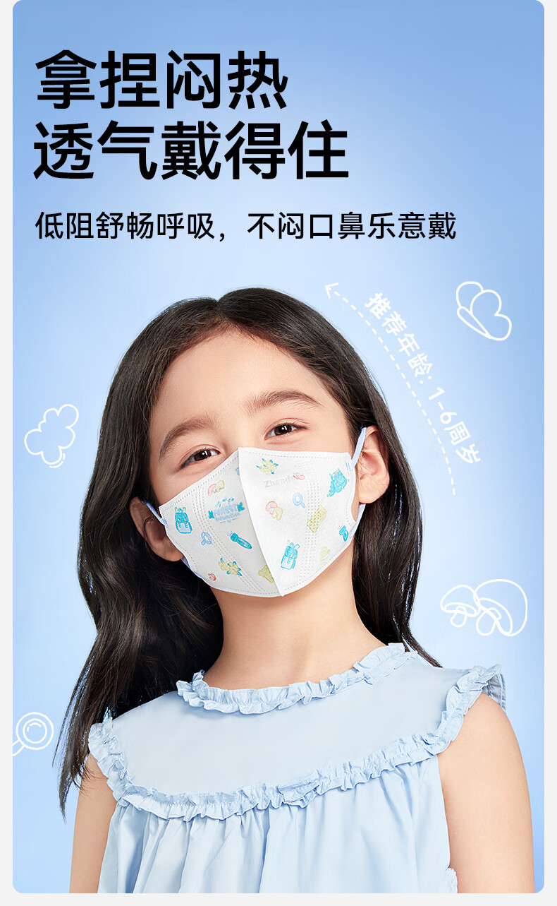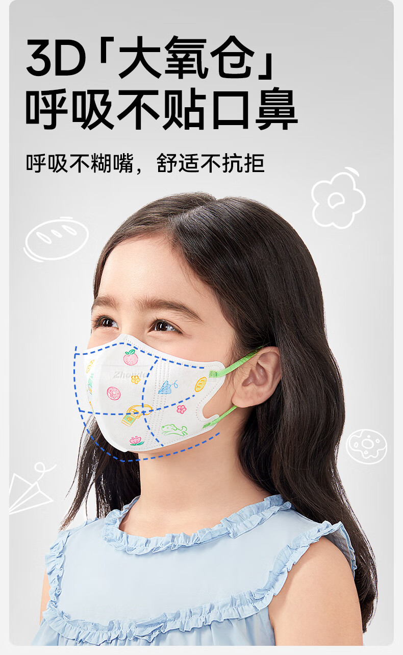 振德一次性口罩儿童口罩3-6岁独立包装3D立体冬季防过敏粉尘雾霾 30只