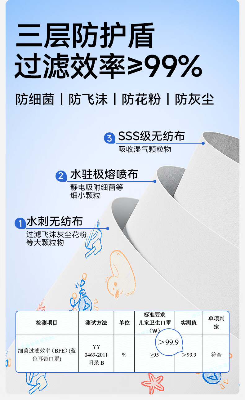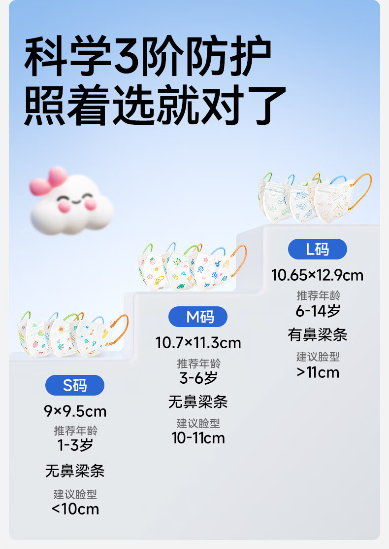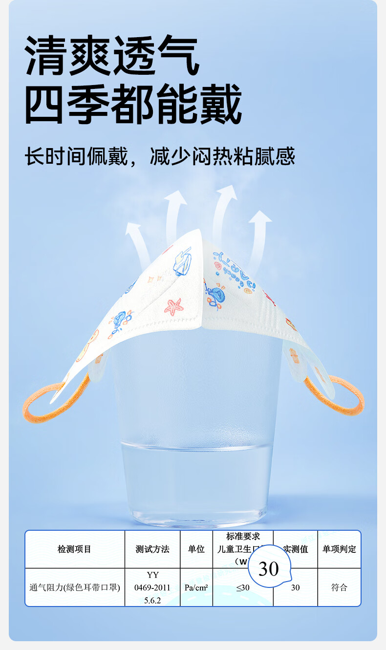 振德一次性口罩儿童口罩3-6岁独立包装3D立体冬季防过敏粉尘雾霾 30只