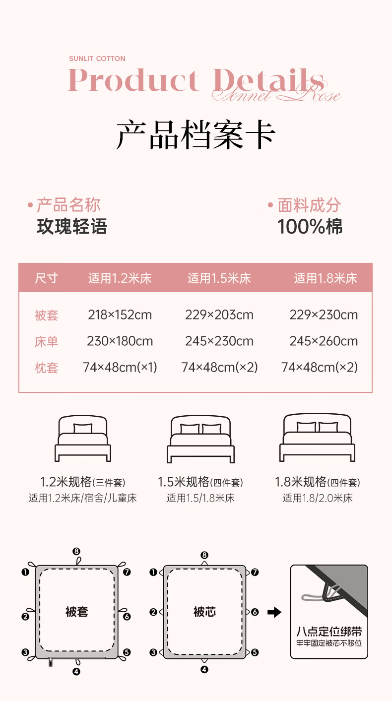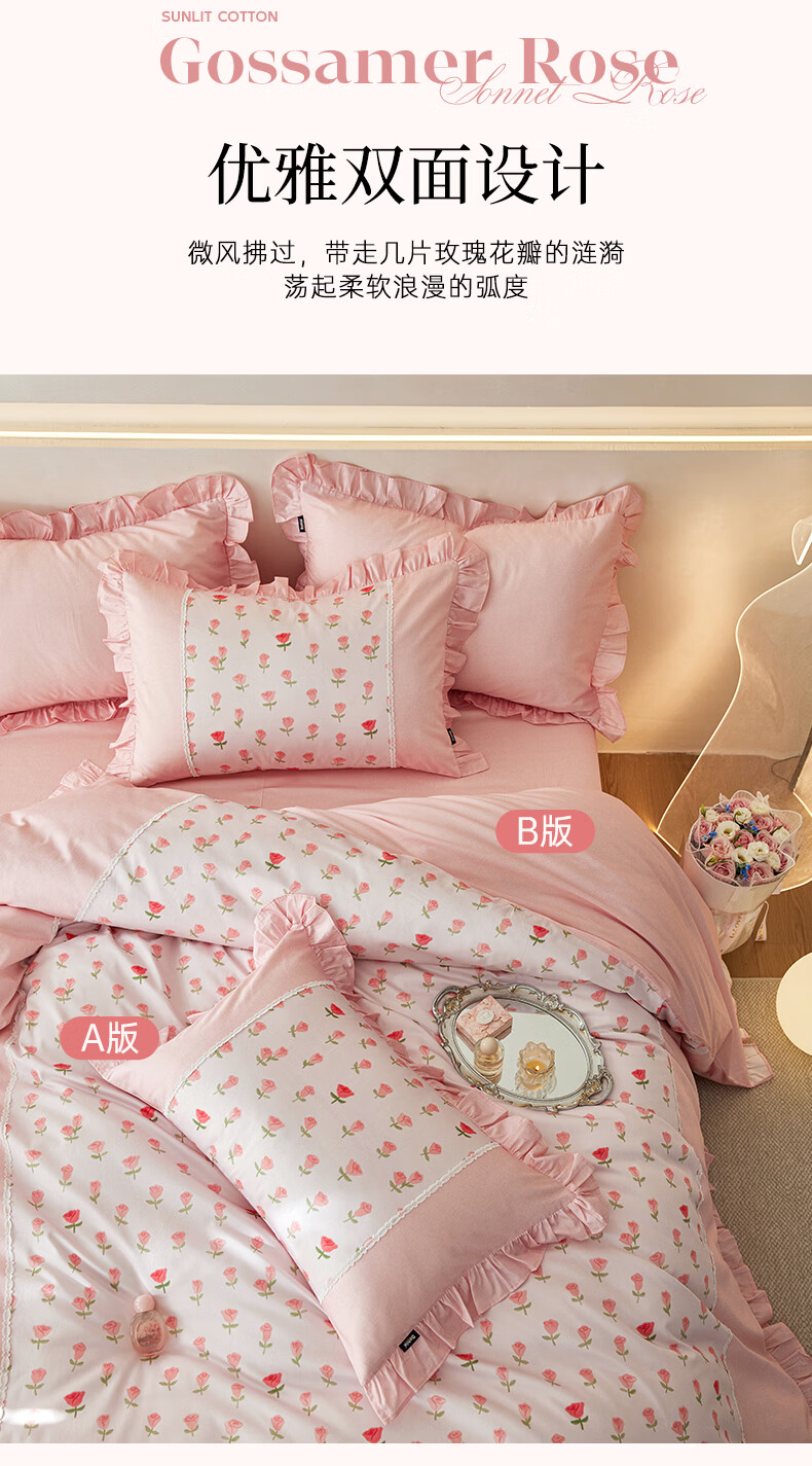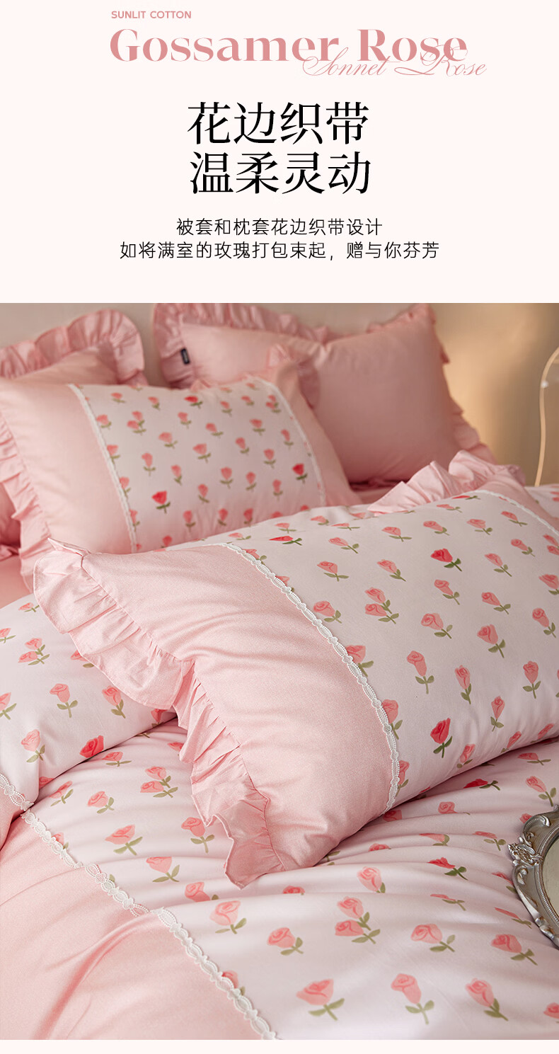 多喜爱家纺纯棉床上三件套 A类单人宿舍全棉床单被罩床品套件1.2米床152*218cm嵌条拼边款