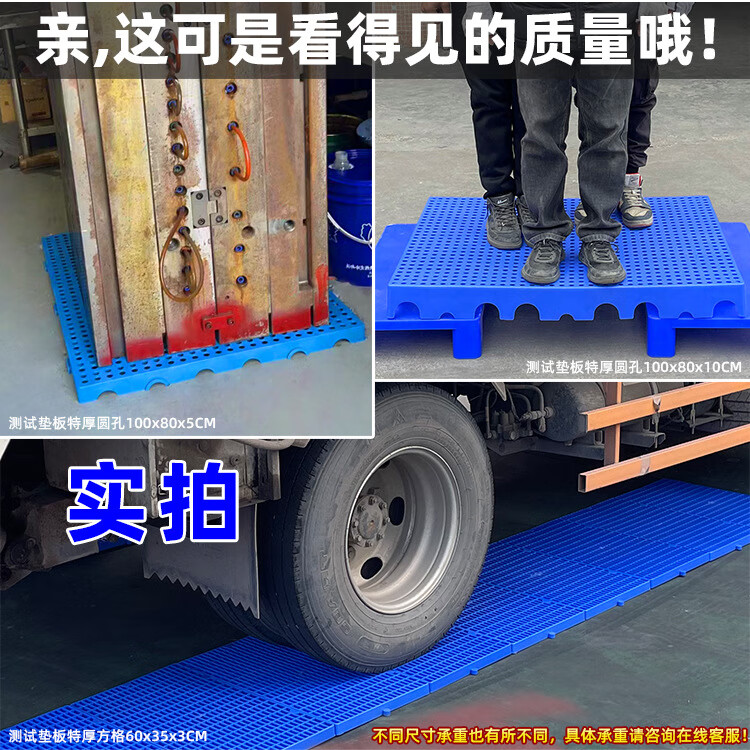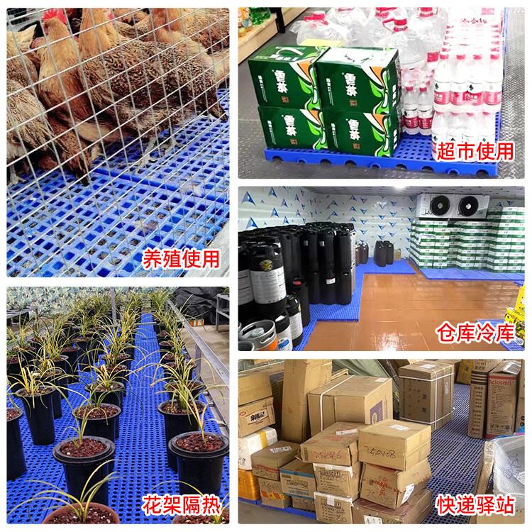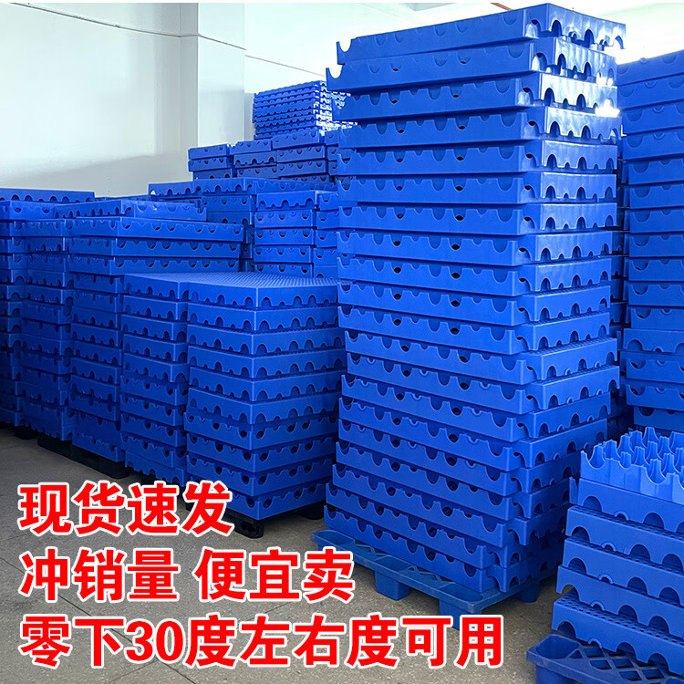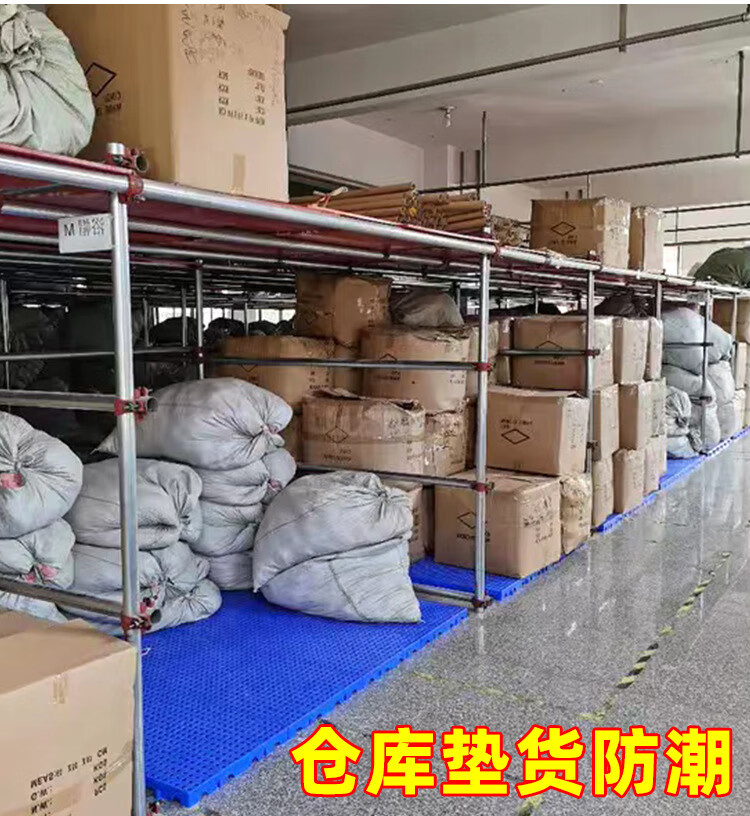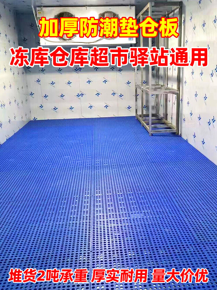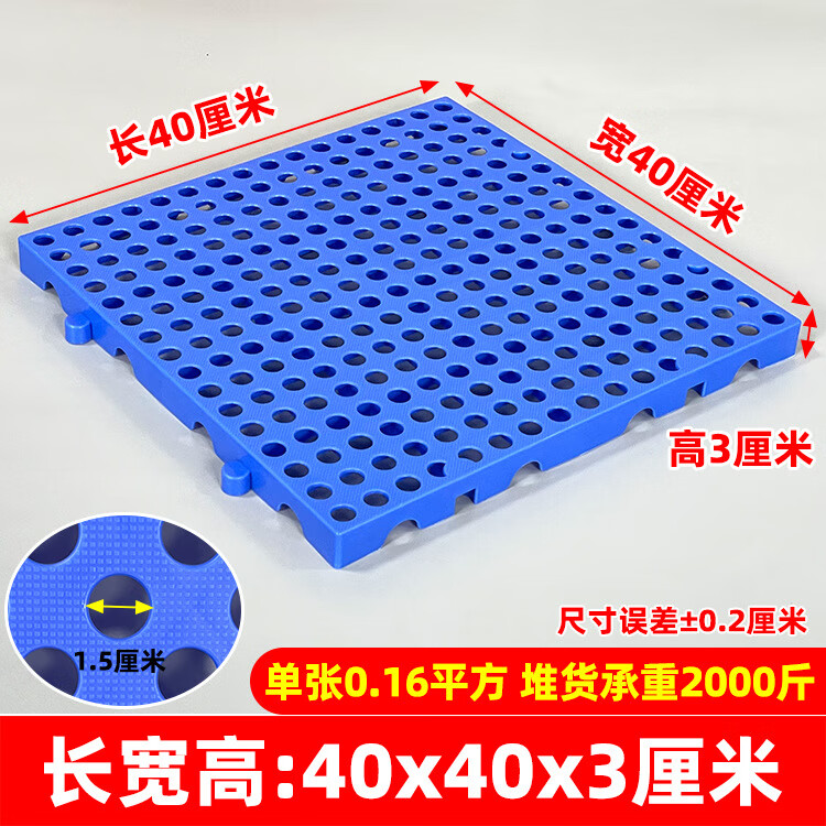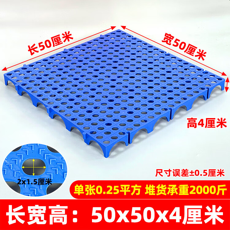 防潮垫板仓库货物垫可拼接网格超市地垫仓防潮隔水塑胶托盘地台板 蓝色100*80*5CM-加厚圆孔