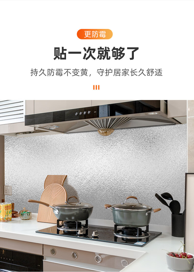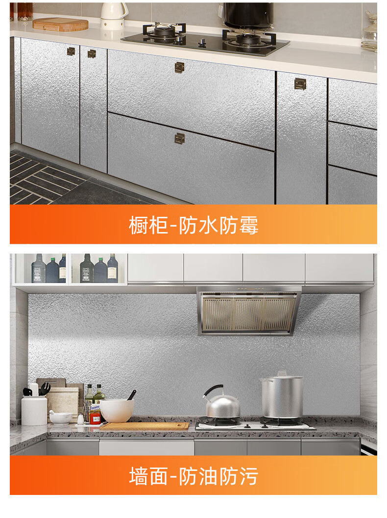 晴画厨房防油贴纸耐高温灶台防水防潮自粘橱柜翻新水槽垫纸台面铝箔纸 橘皮纹60cm*10米