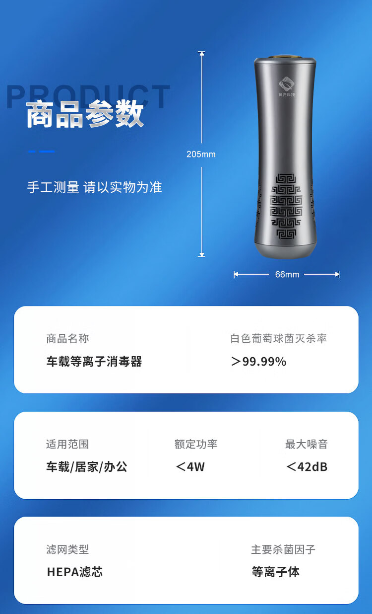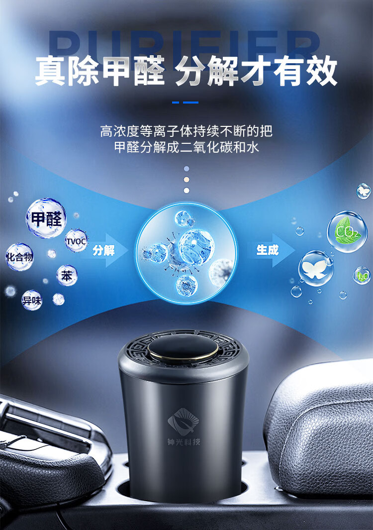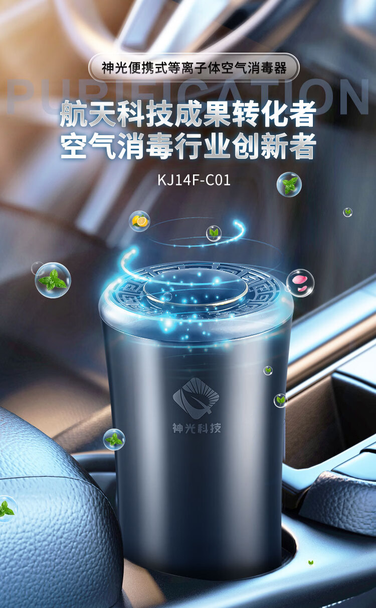 S神光科技车载便携式等离子体净化消毒器新车内避免感冒交叉感染杀过敏原菌去清除除烟酒尿异味甲醛 鎏金灰:轻奢舱内美学,百万级呼吸SPA