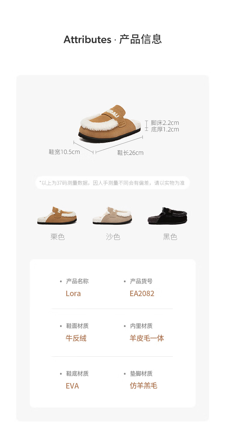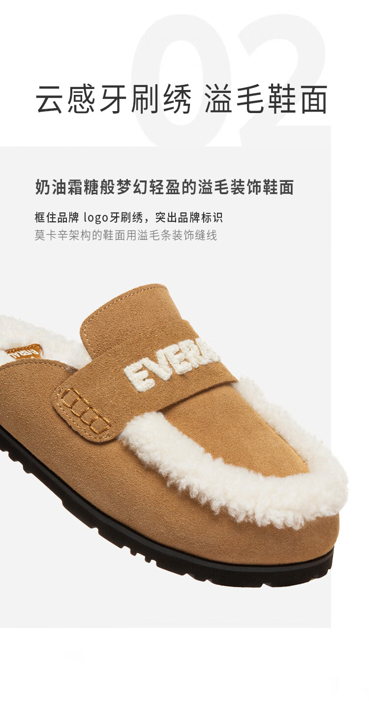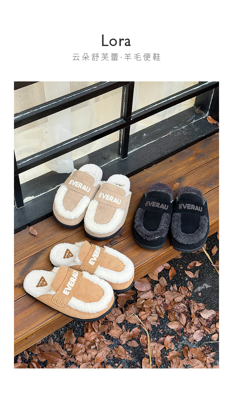 EVERAU女士冬季新款包头毛茸云朵拖鞋厚底室外舒适棉拖便鞋丨EA2082 栗色 35