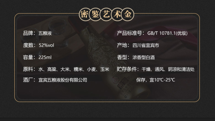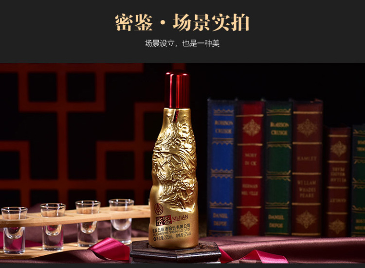 五粮浓香股份公司【下单咨询客服】密鉴(艺术金) 浓香型 白酒 送礼摆柜 52度 225mL 12瓶 原箱