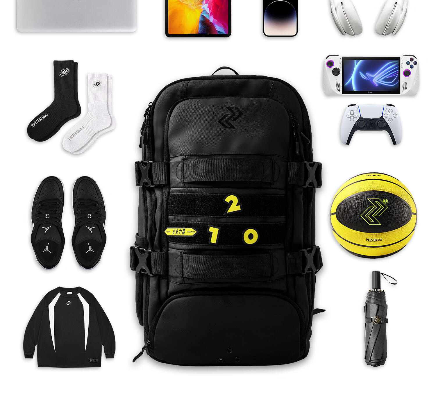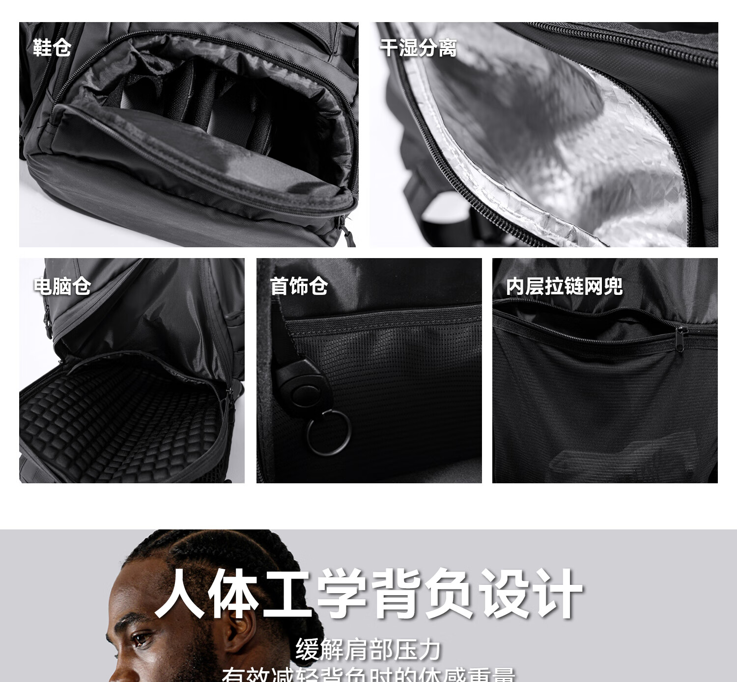 左右力量旅行双肩包大容量学生电脑书包男女健身篮球运动背包登山包 黑色