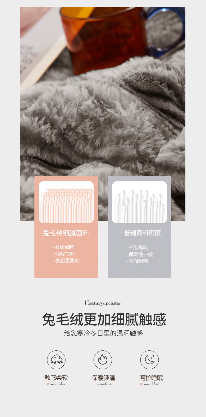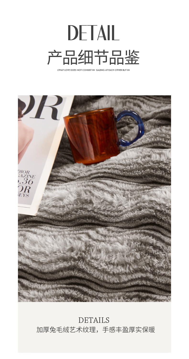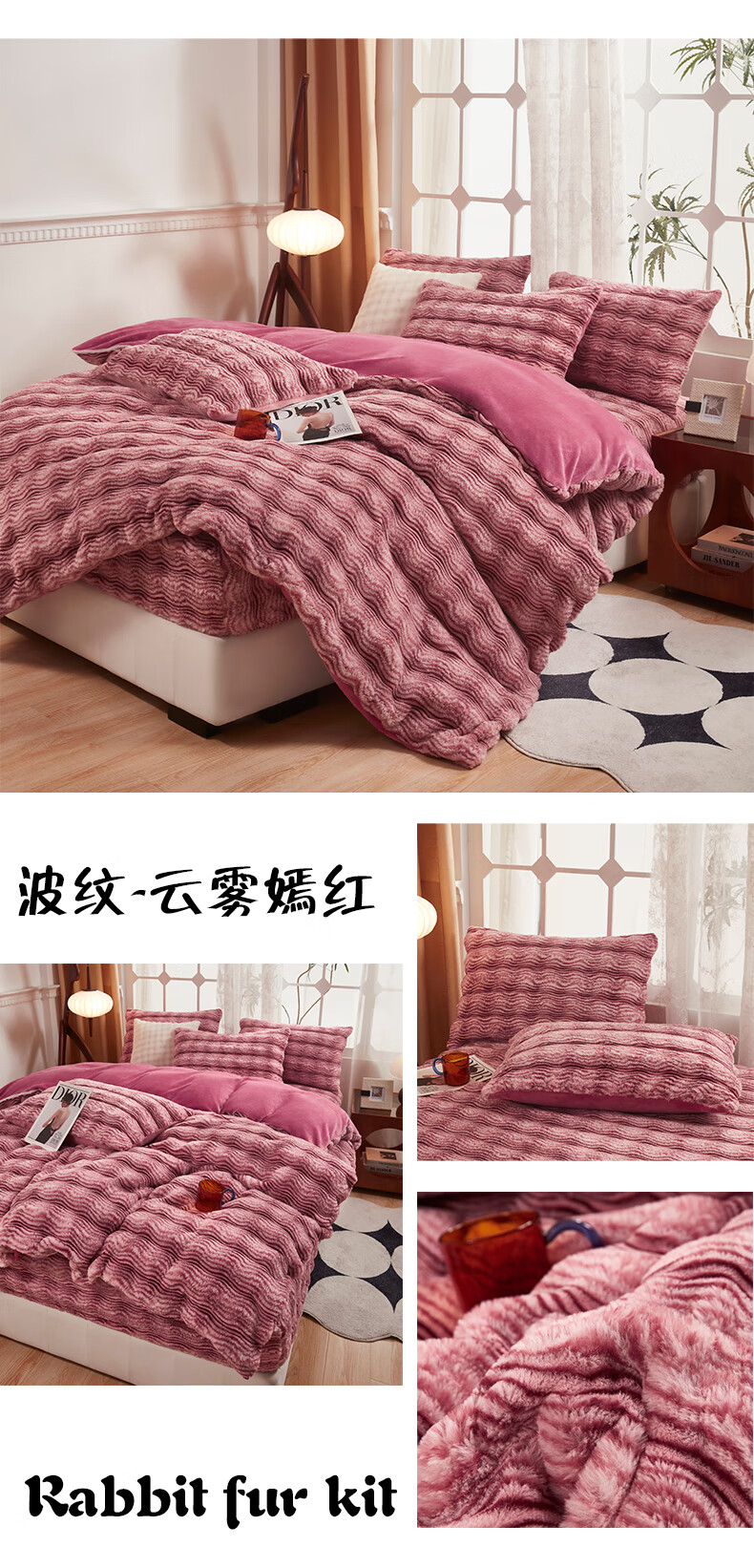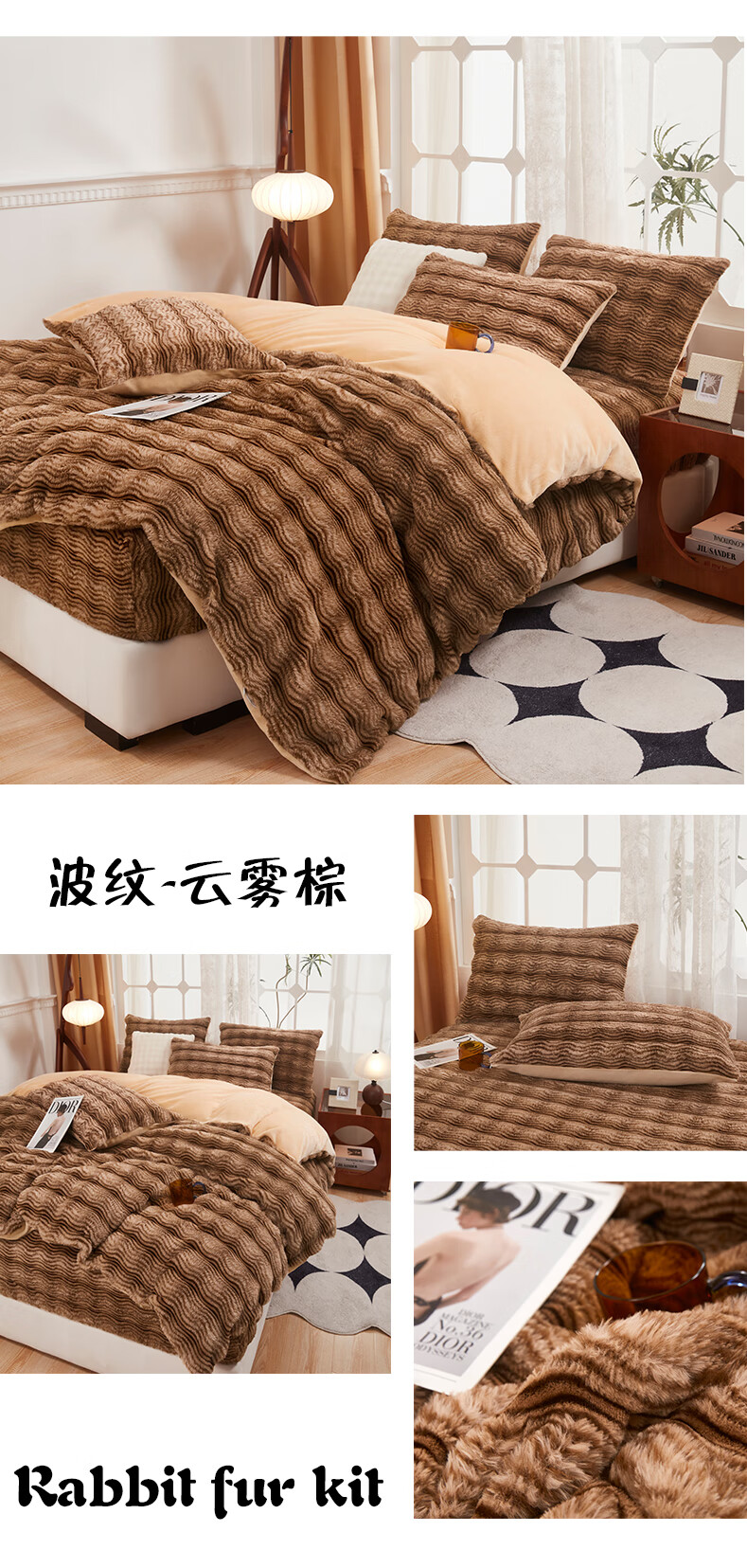 元族2025新款加厚兔毛绒纯色四件套套件系列 波纹-云雾浅灰 床单款 150*200cm单被套