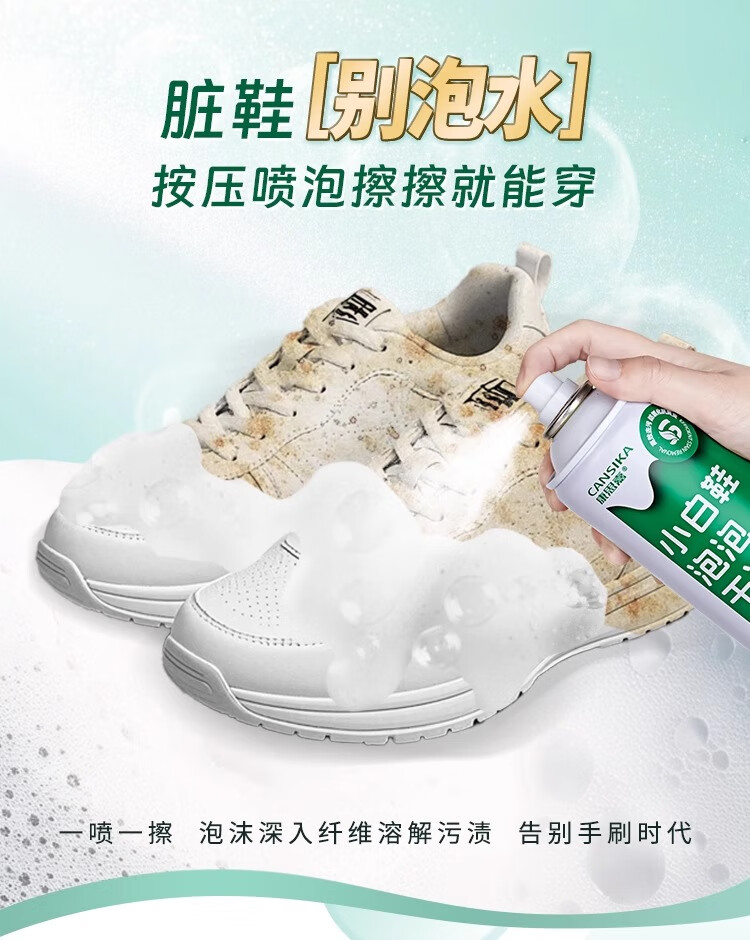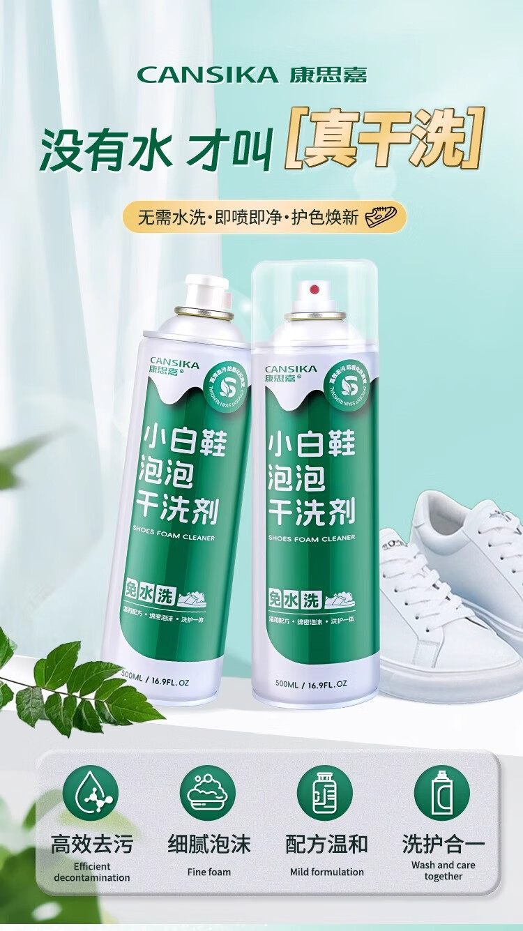 康思嘉小白鞋清洁剂洗鞋泡泡干洗剂球鞋运动鞋面去污渍清洗擦鞋刷鞋神器 【全网热卖400w+】小白鞋泡泡干洗剂500ml*2