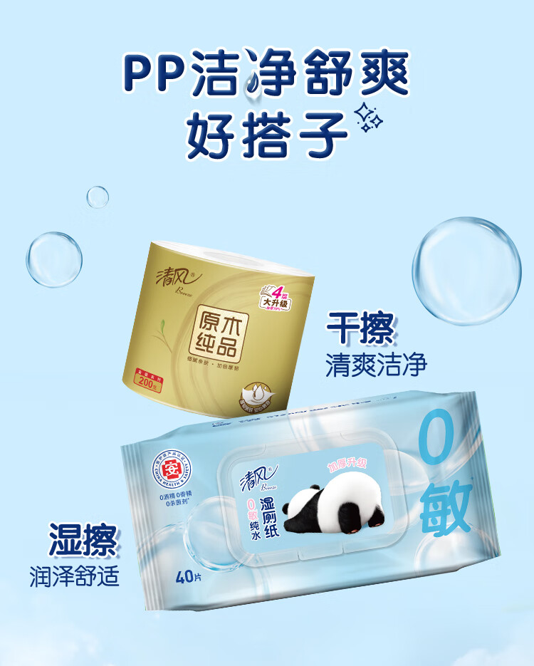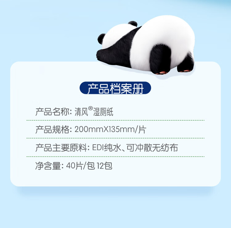 清风【李昀锐同款】0敏纯水湿厕纸40片*12包 医护级认证