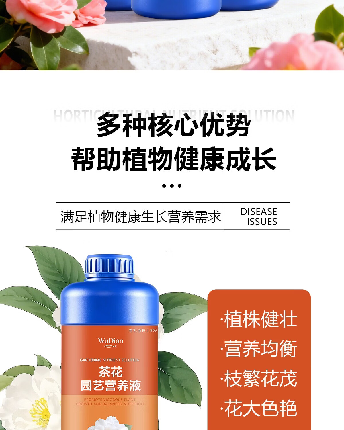 茶花肥料专用肥喜酸植物营养液山茶花杜鹃茉莉促开花家用盆栽植物 兰花园艺营养液1100ml