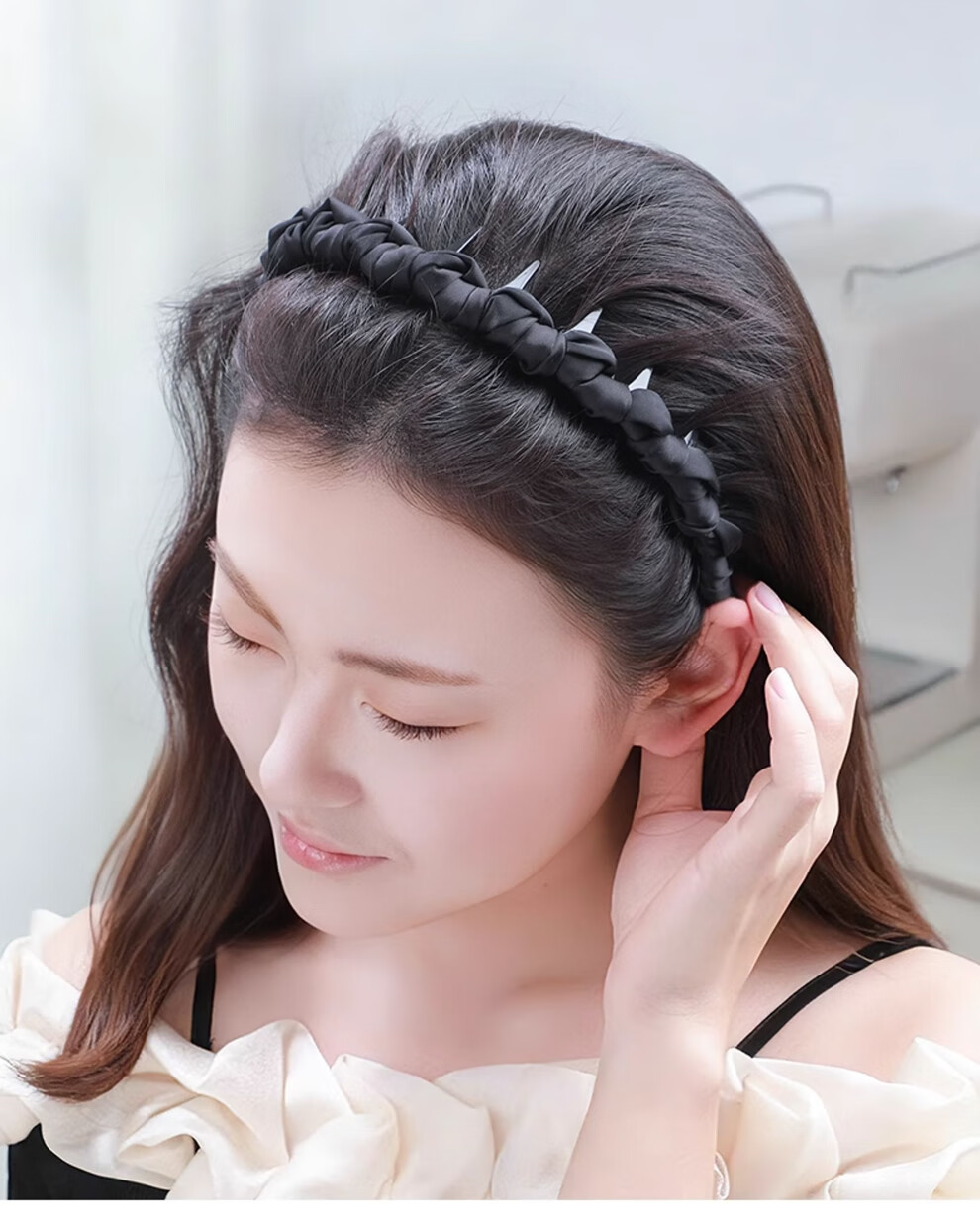 LVPASA女士高颅顶绝美发箍蓬松显发量头箍新款高级感带齿发卡发捆 【黑色】发箍