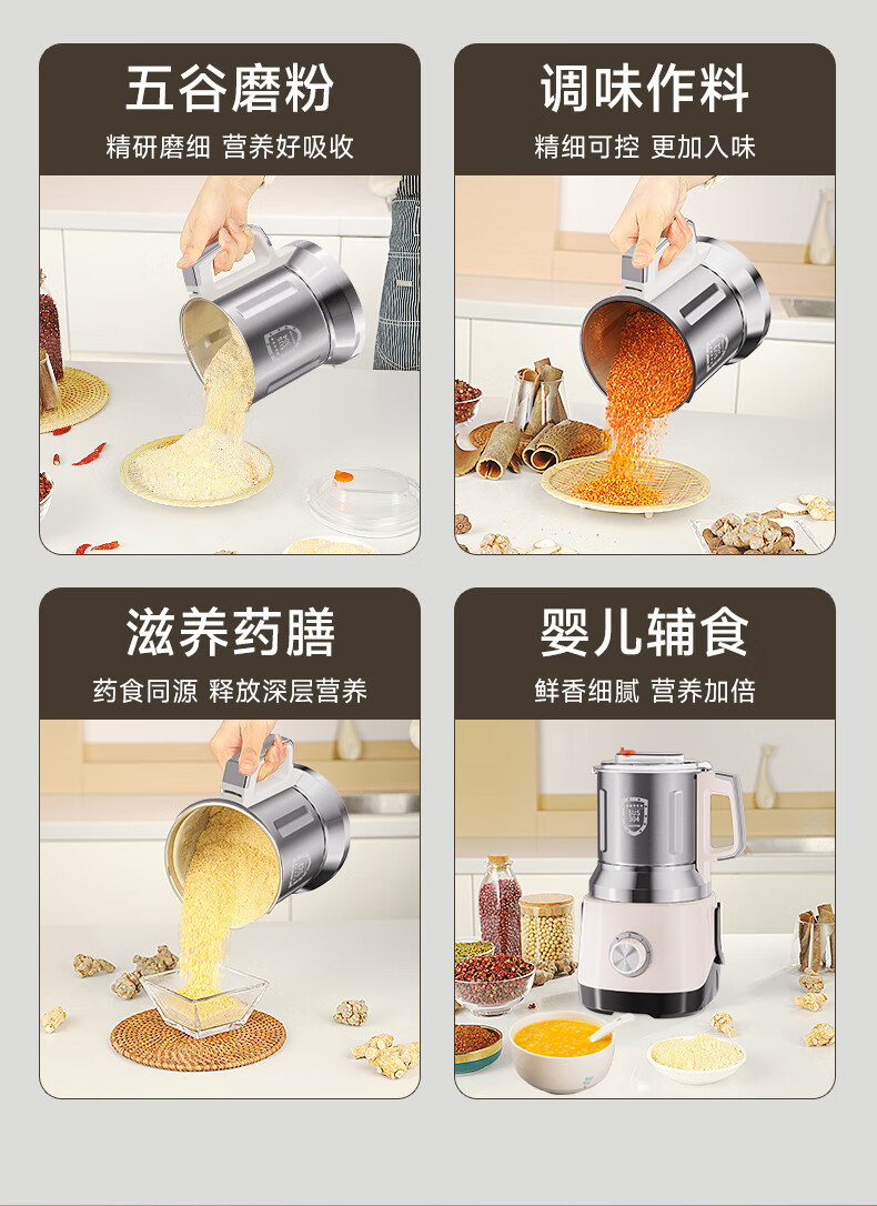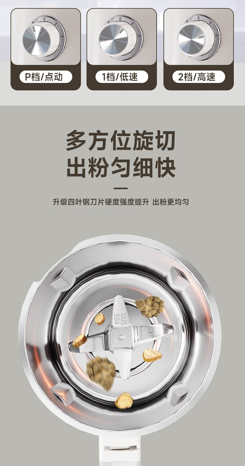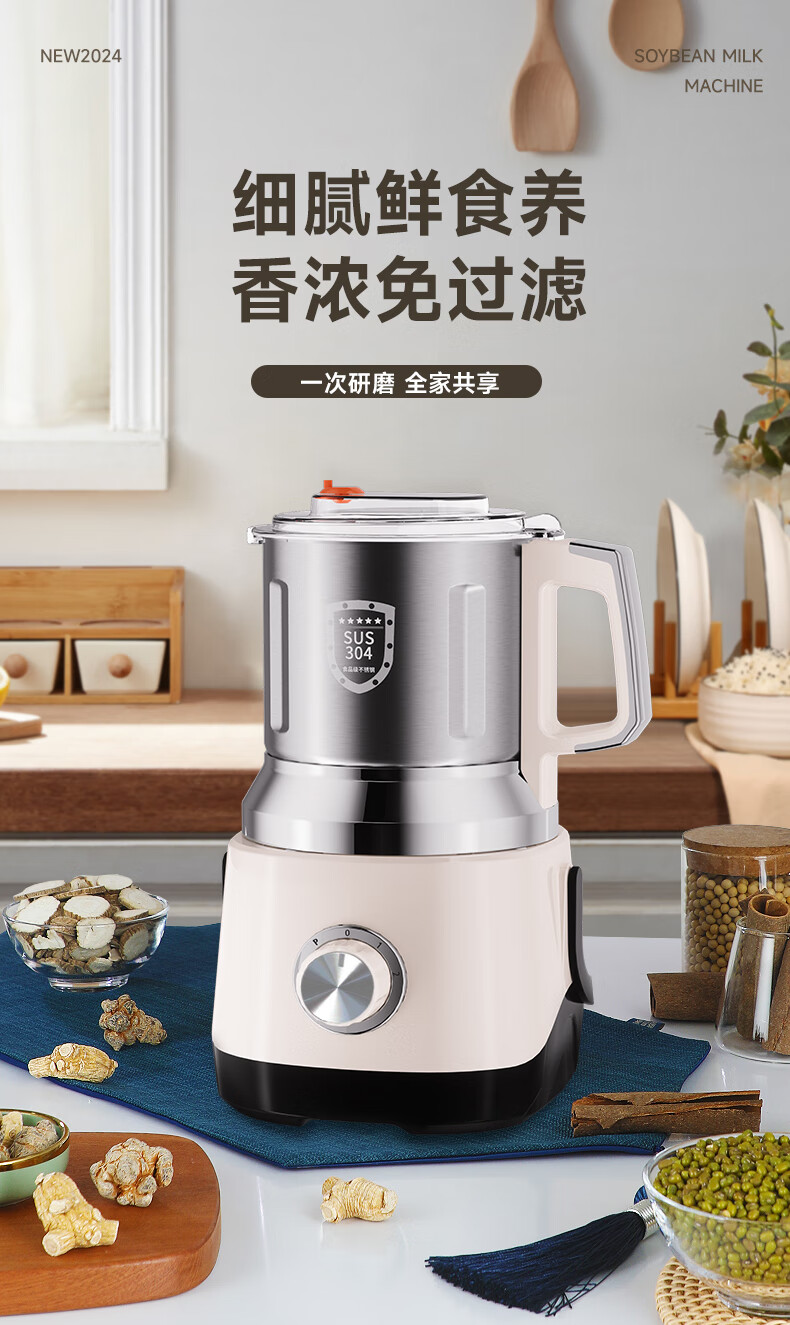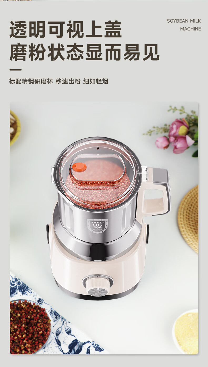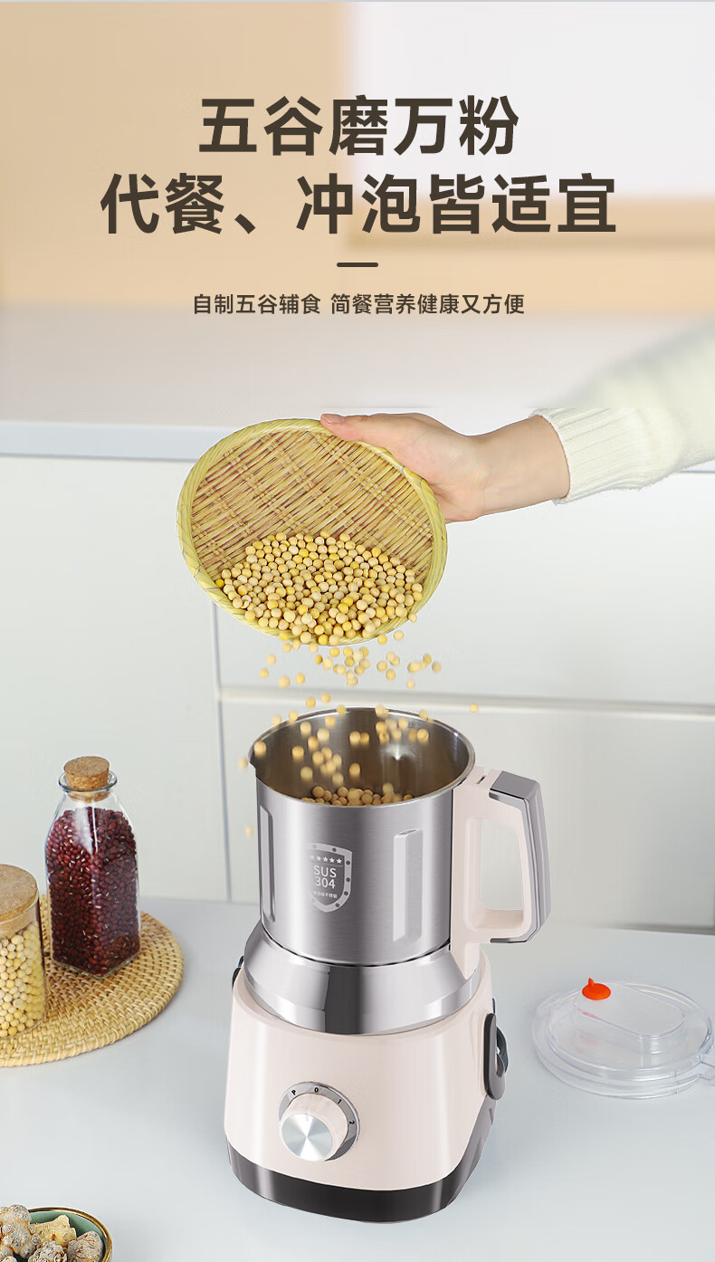 worbush【干湿两用】研磨机家用小型粉碎机中药打粉机五谷杂粮磨粉机破壁机开盖断电料理机辣椒酱芝麻糊 【加粗铜线升级/绿色】1200克容量食品级不锈钢