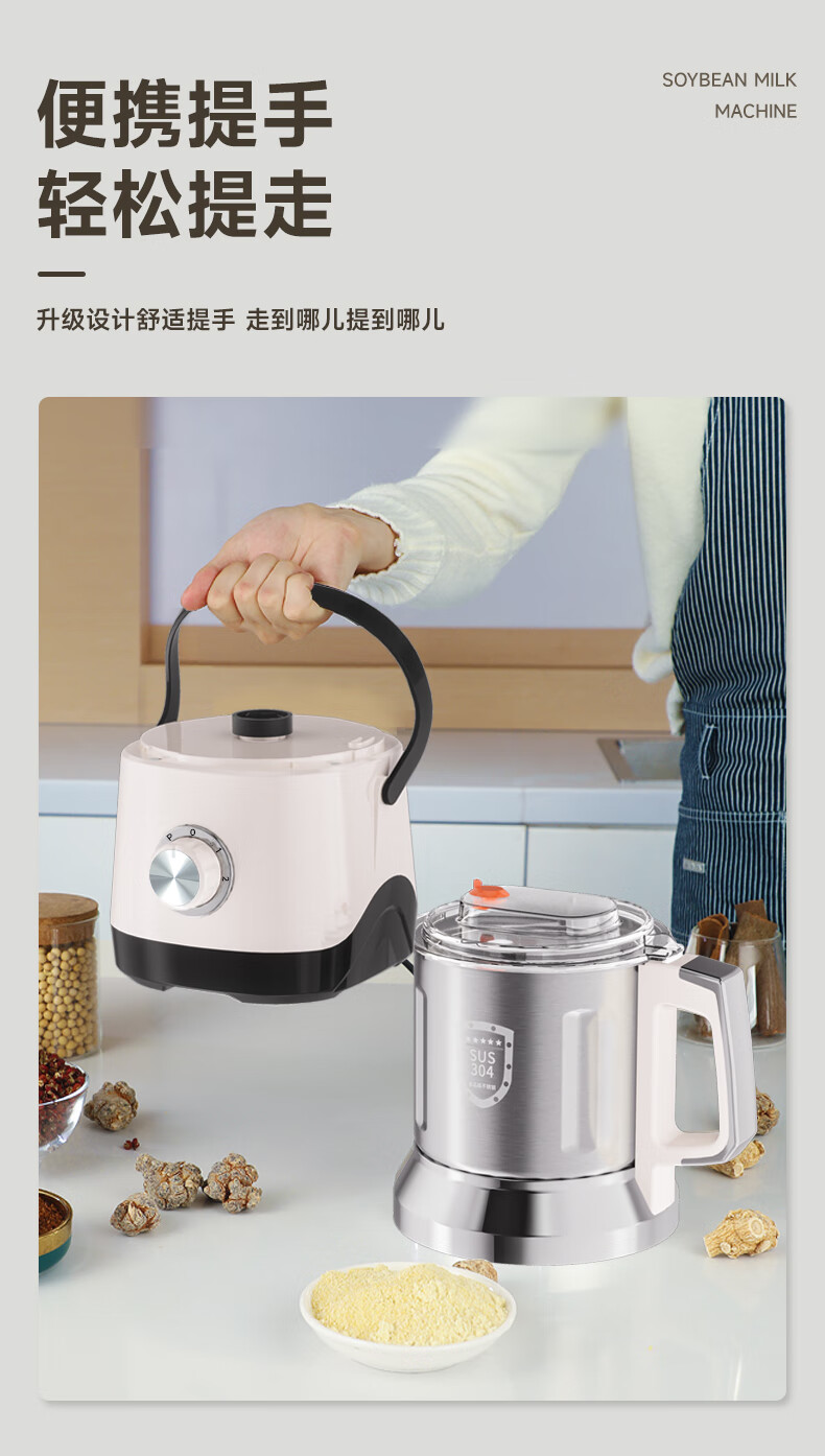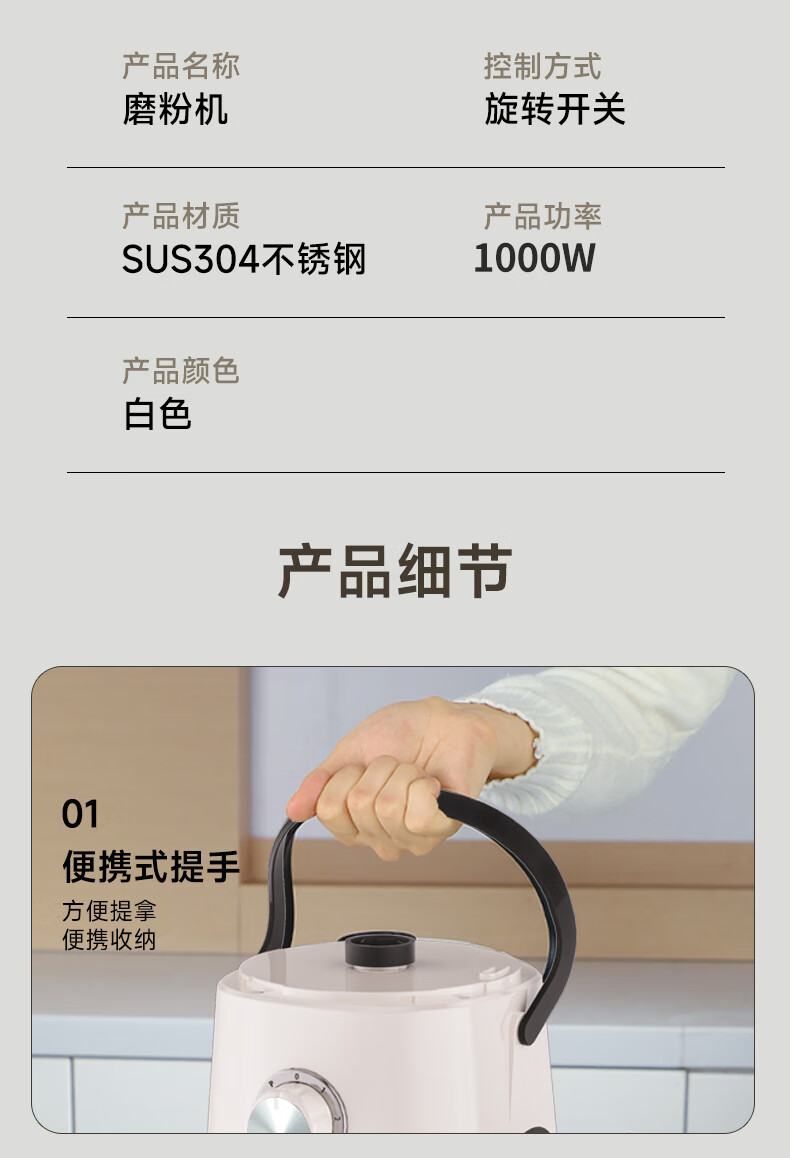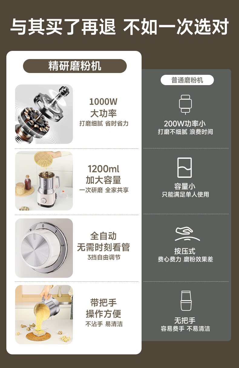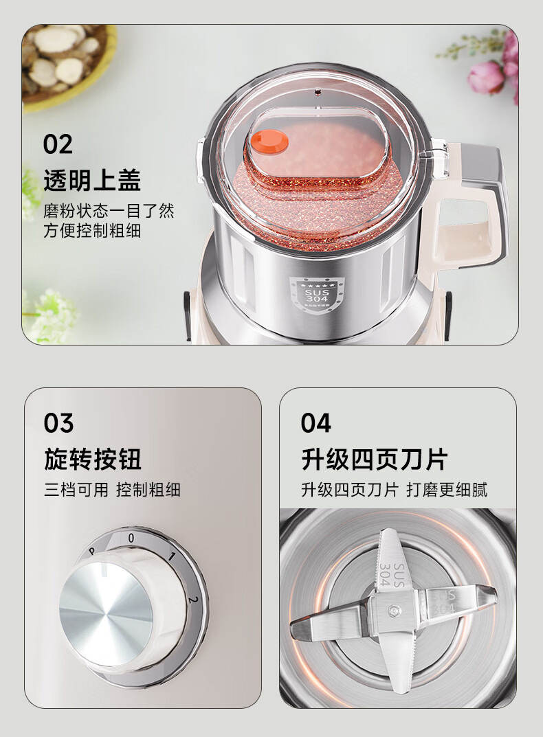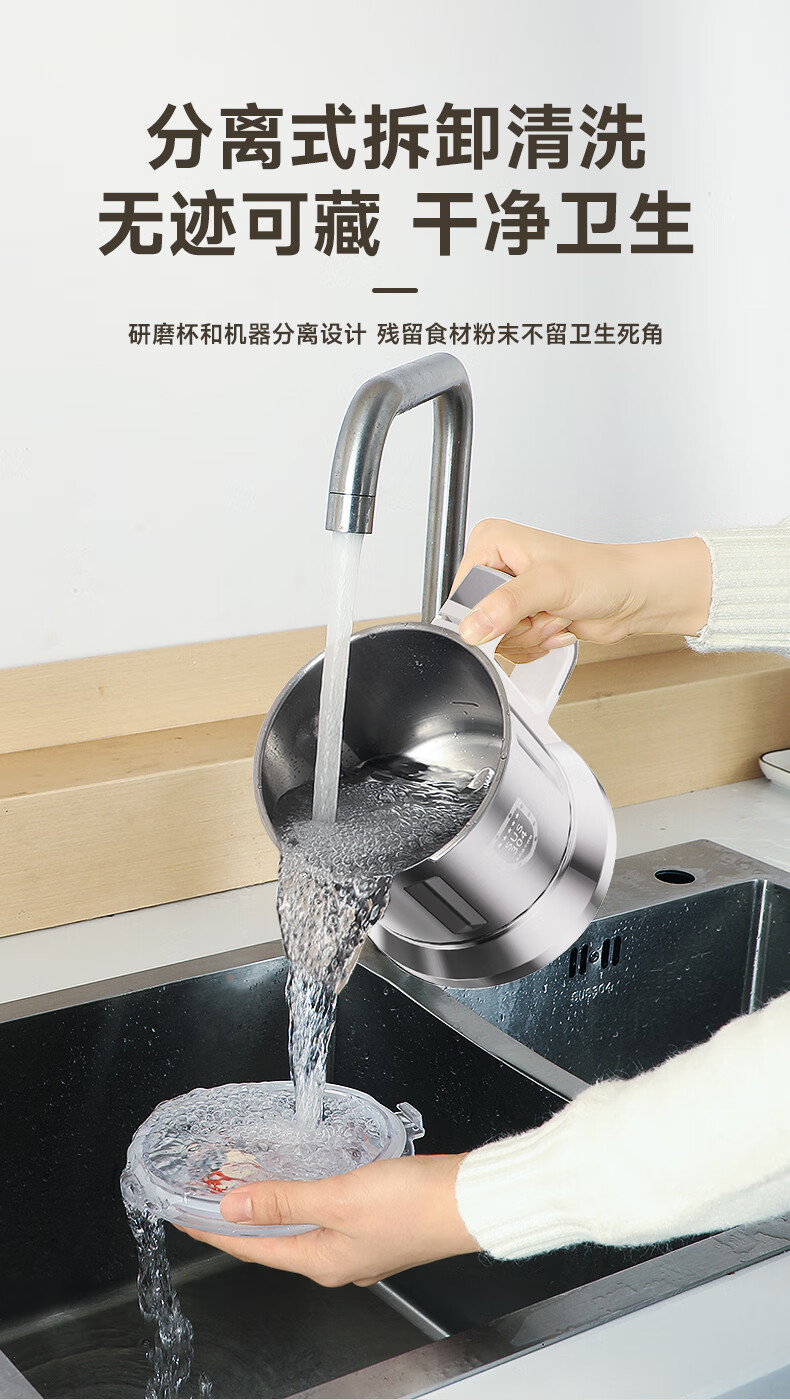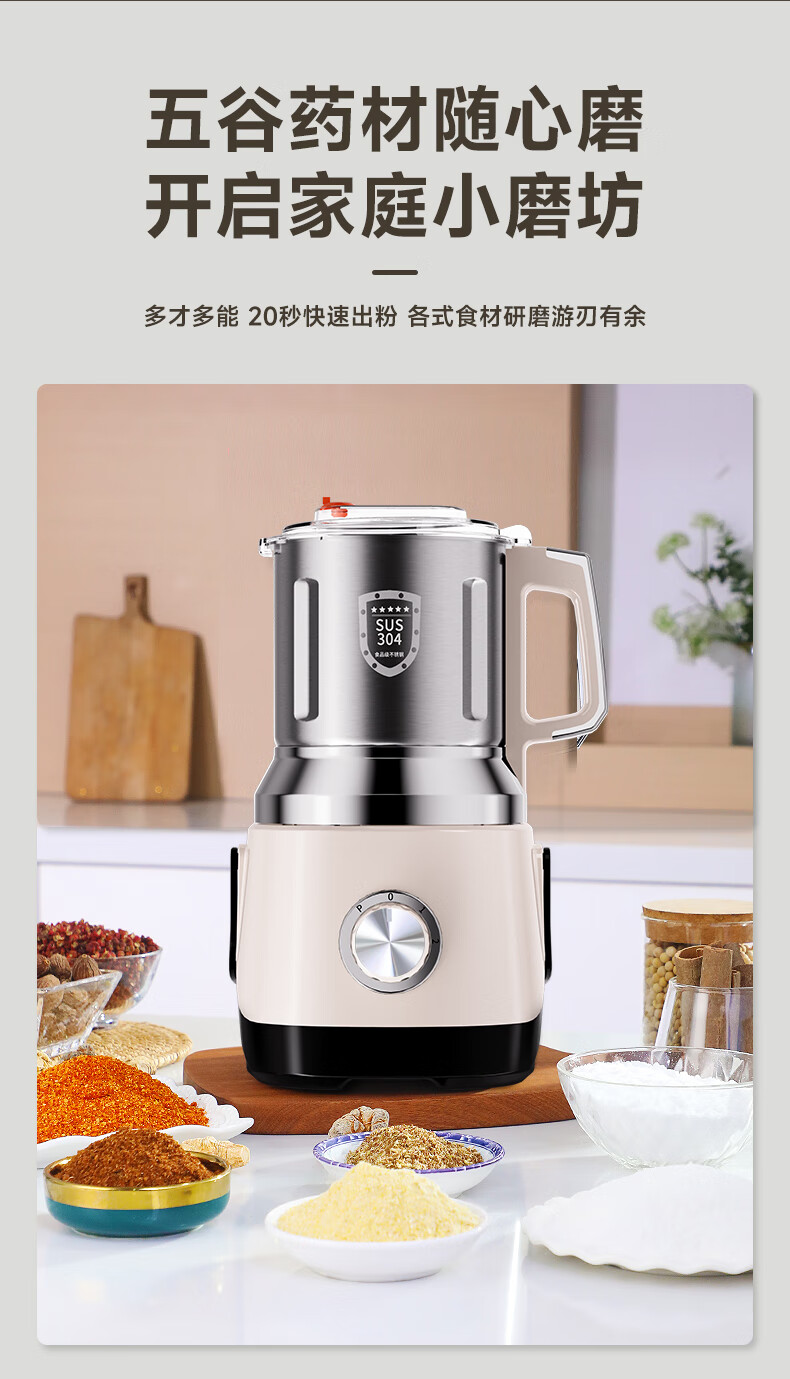worbush【干湿两用】研磨机家用小型粉碎机中药打粉机五谷杂粮磨粉机破壁机开盖断电料理机辣椒酱芝麻糊 【加粗铜线升级/绿色】1200克容量食品级不锈钢