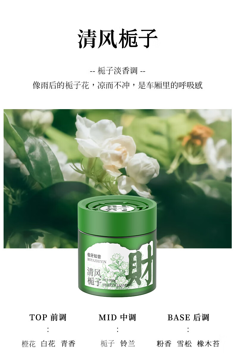 ROMK车载香水 汽车香水座 小车用香薰固体香薰汽车用品饰品车内香薰 茉莉花香【大容量】持久散香