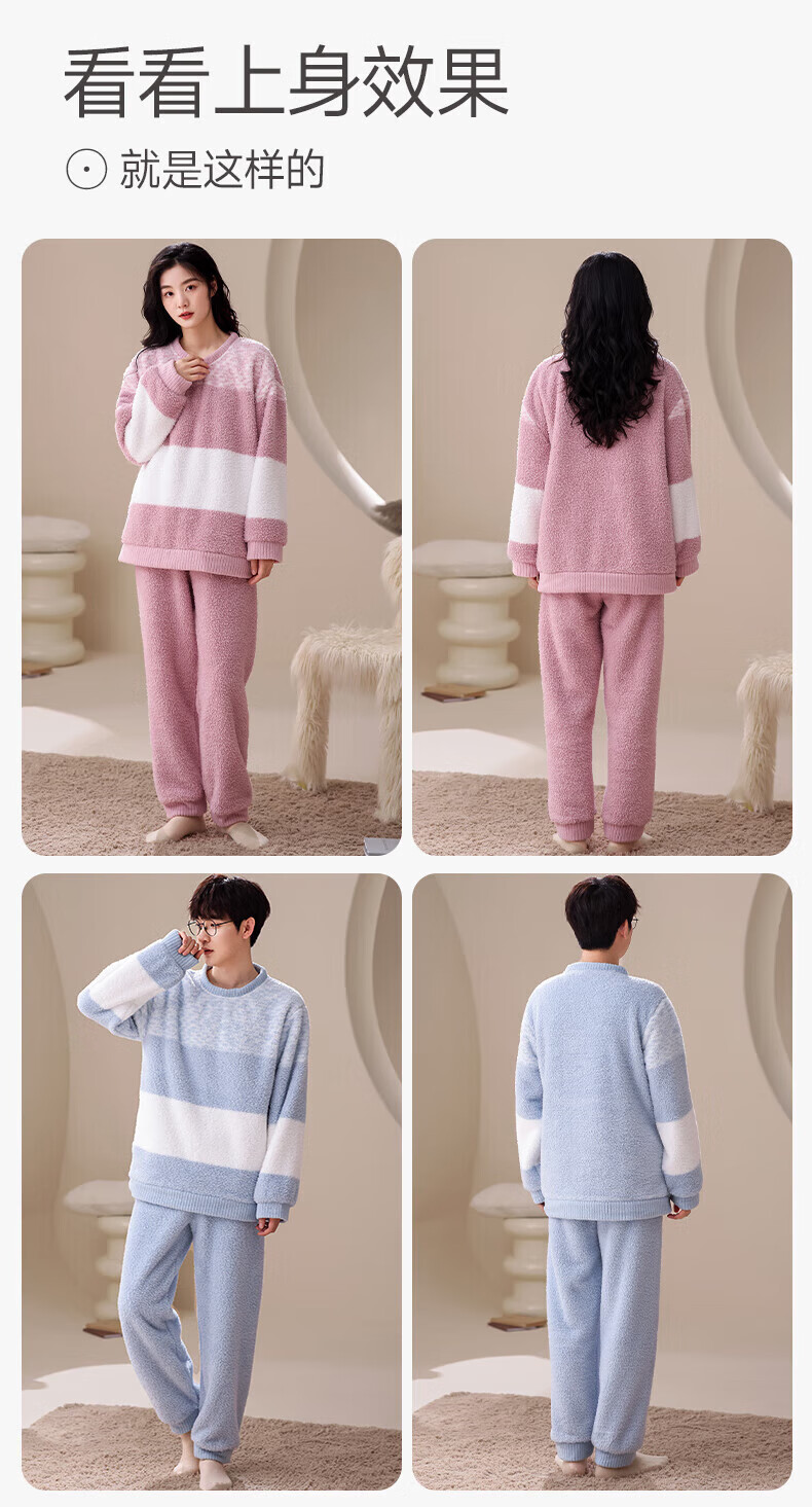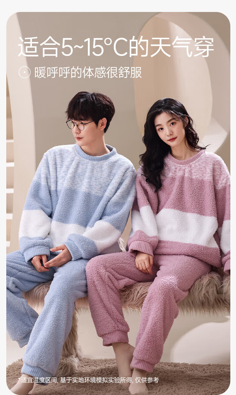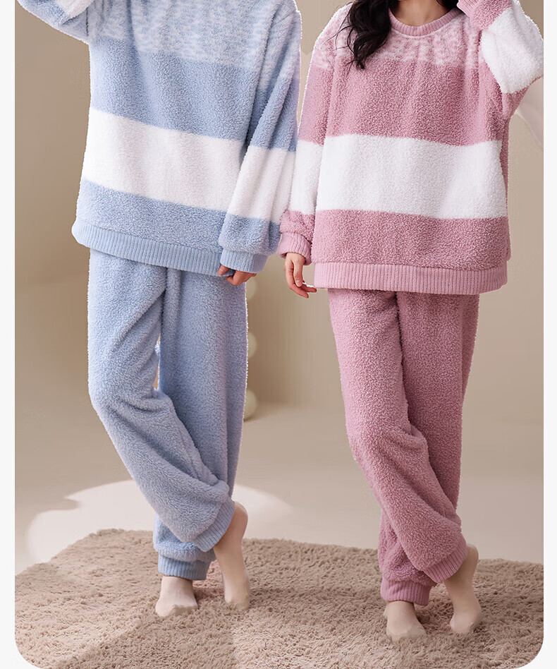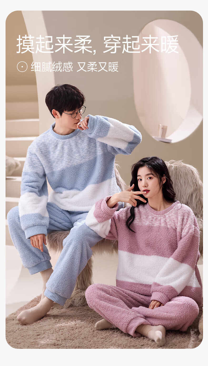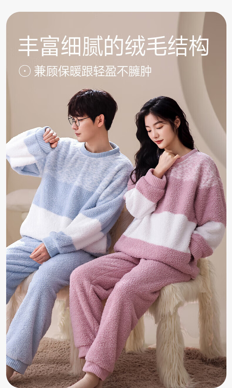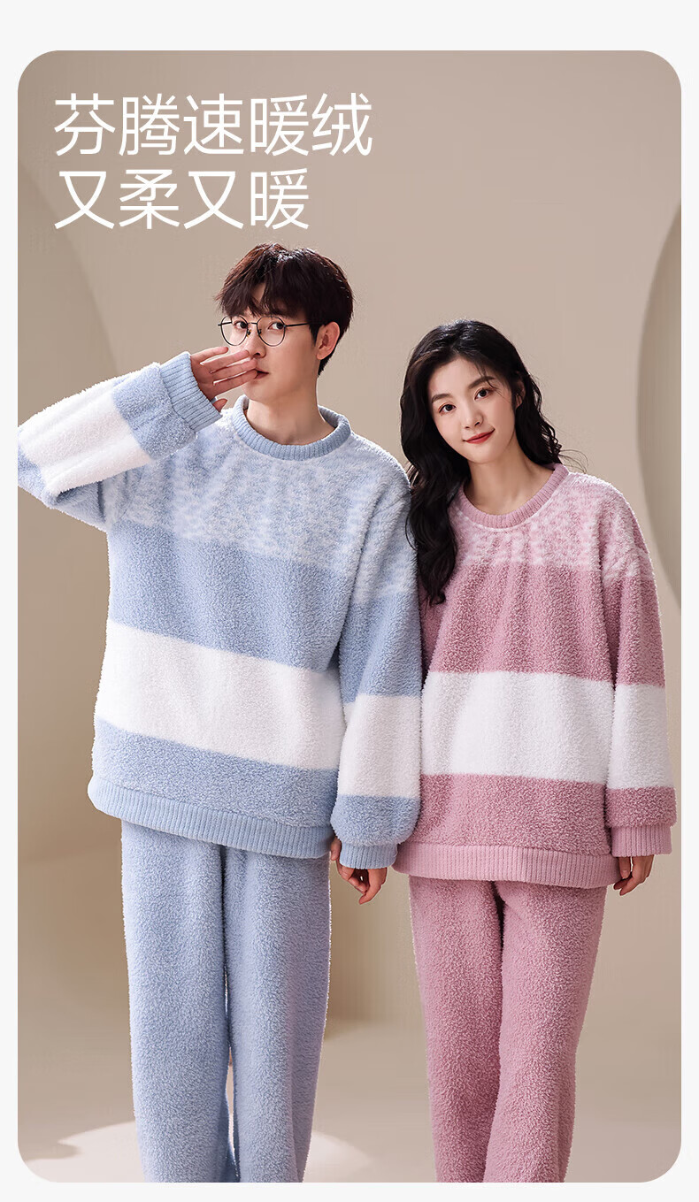 芬腾【断码清仓】珊瑚绒情侣睡衣冬季女款男士加厚加绒套装大码家居服 FX25940681粉紫【单女款】 L 建议:女110-124斤,男126-146斤