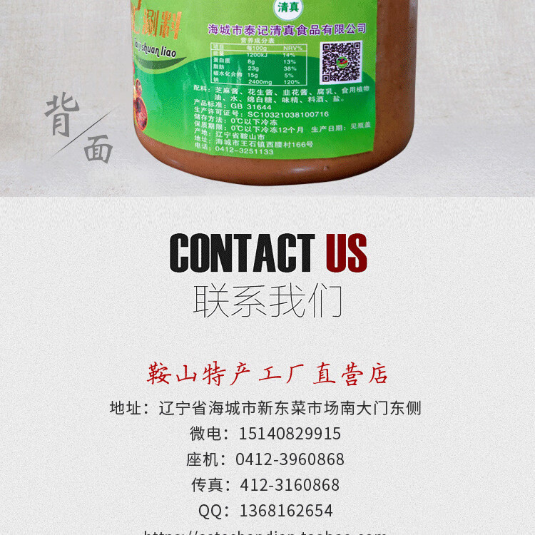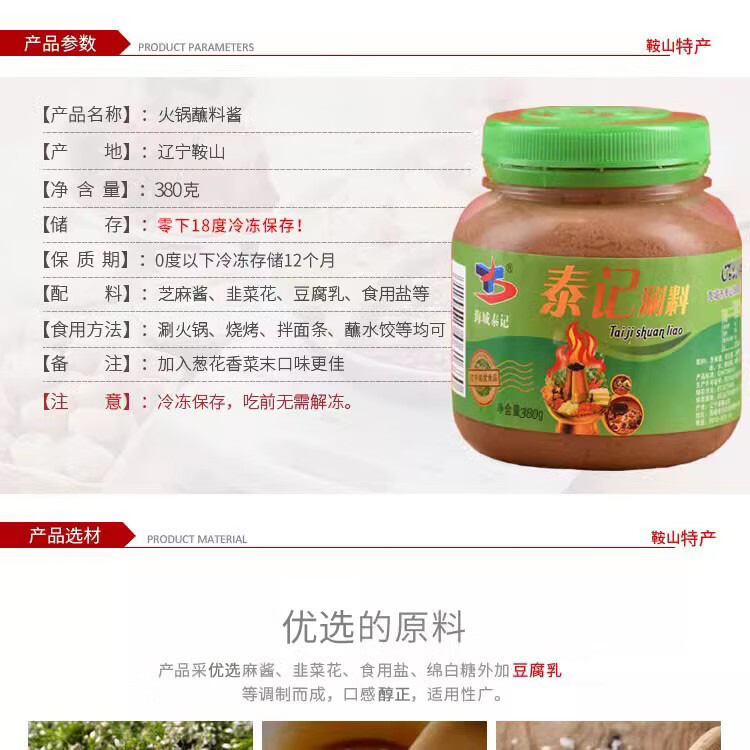 海城泰记涮料火锅蘸料沾料调味拌面酱芝麻酱韭菜花生酱老北京家用 酱380克