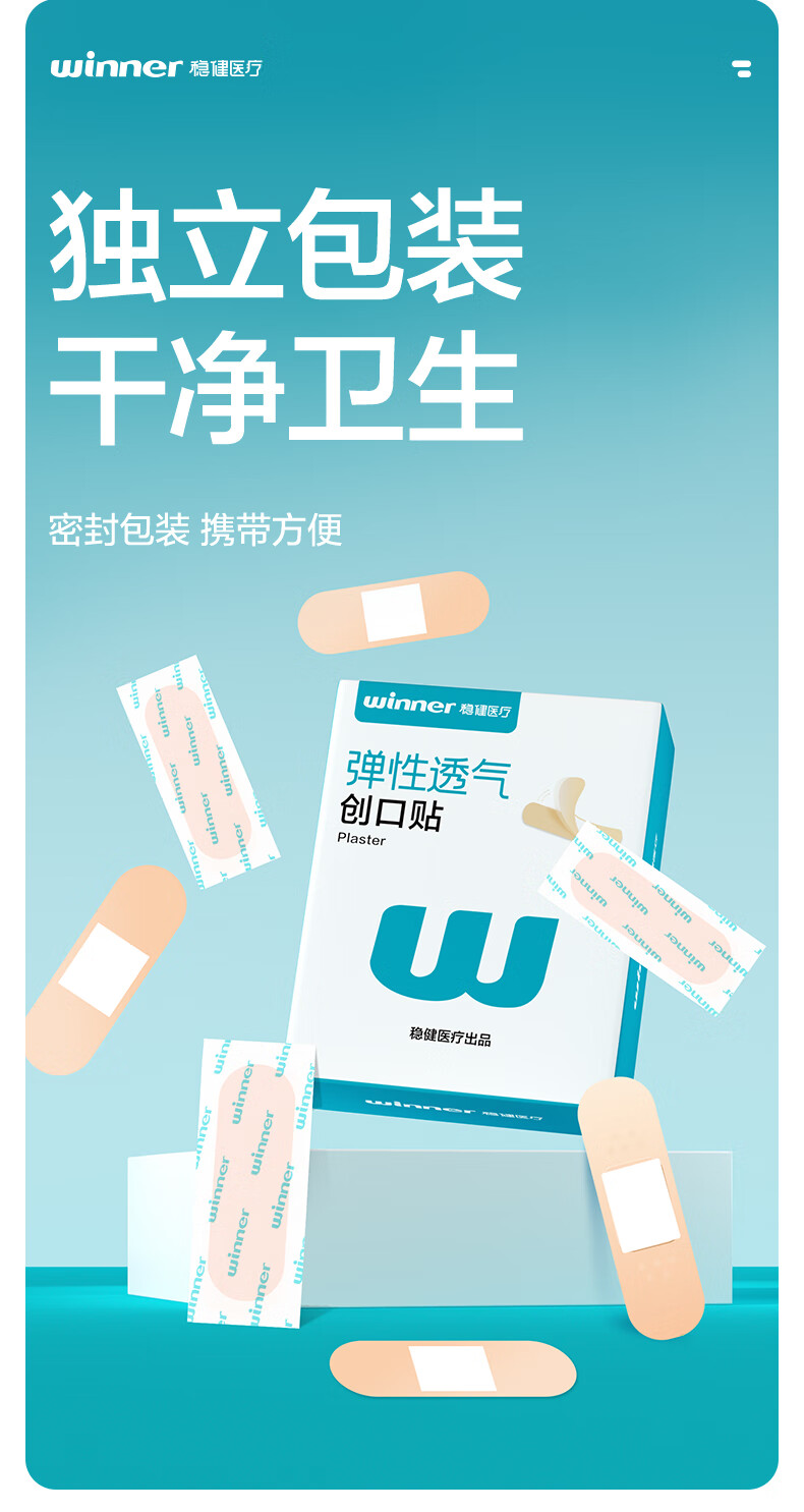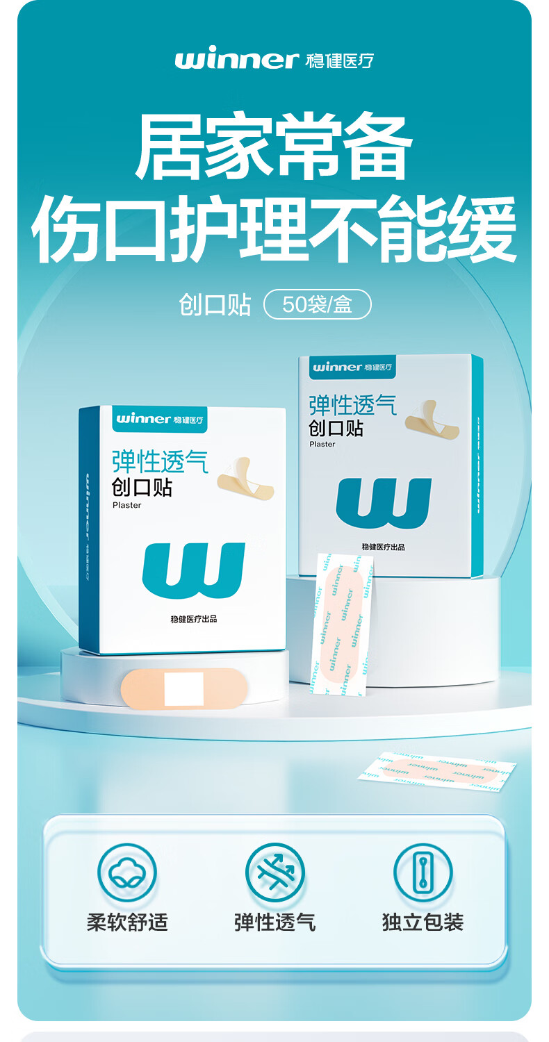 稳健弹性布创口贴独立装通用型轻巧便利皮外伤擦伤防磨脚贴50片/盒
