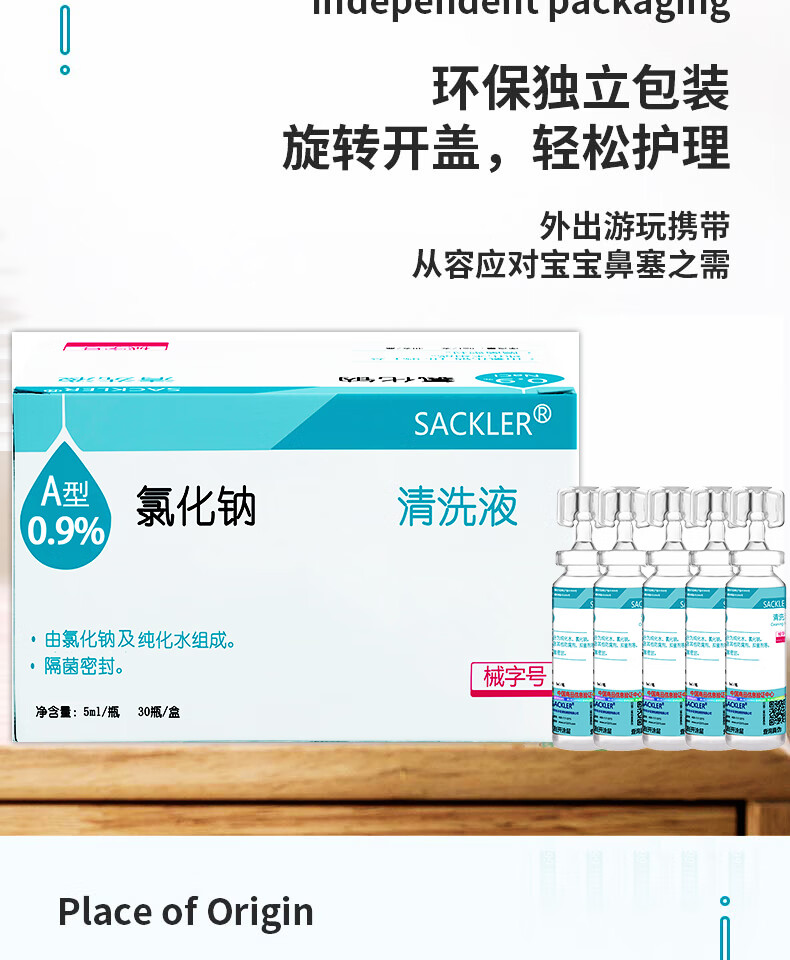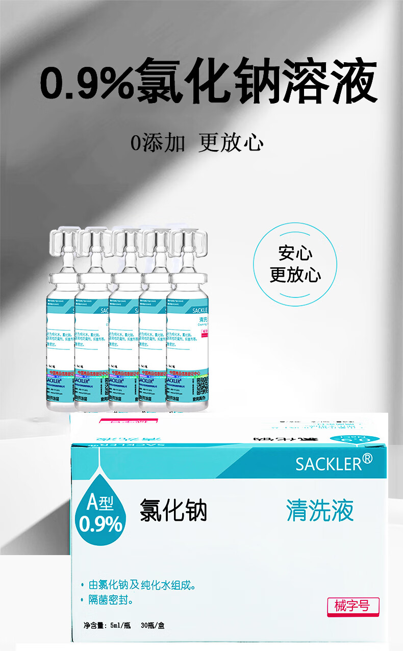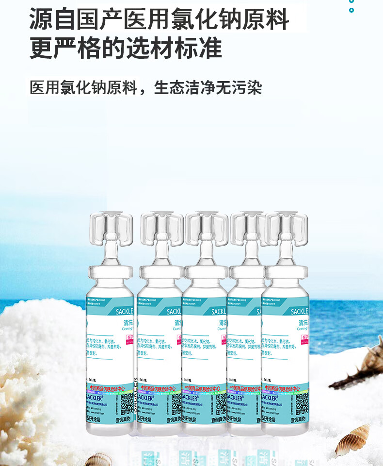 SACKLER0.9%氯化钠清洗液生理盐水医用雾化可分2毫升小支婴幼儿洗鼻无菌