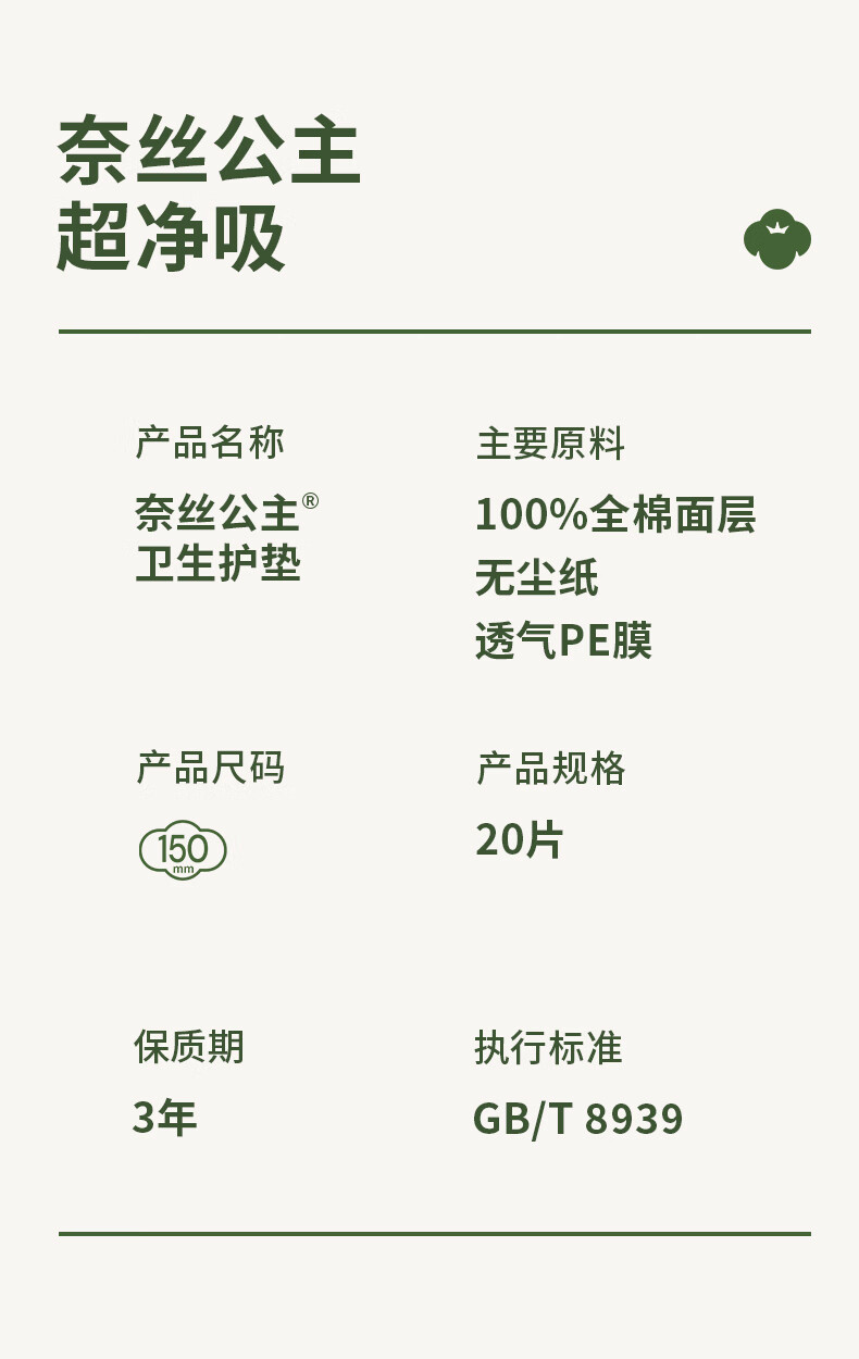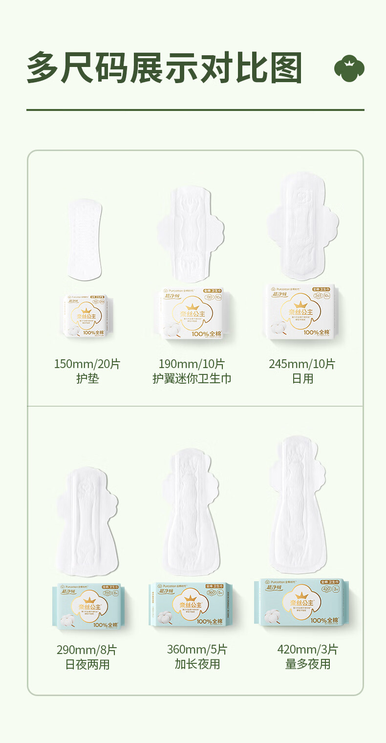 全棉时代奈丝公主医护级超净吸护垫纯棉日用卫生巾6包(150*120p)京东自营