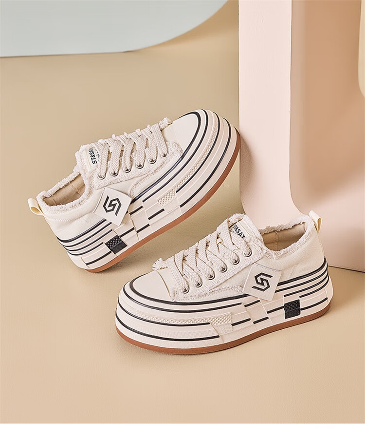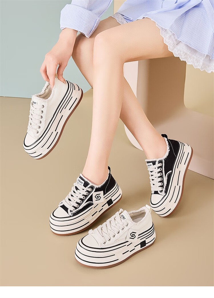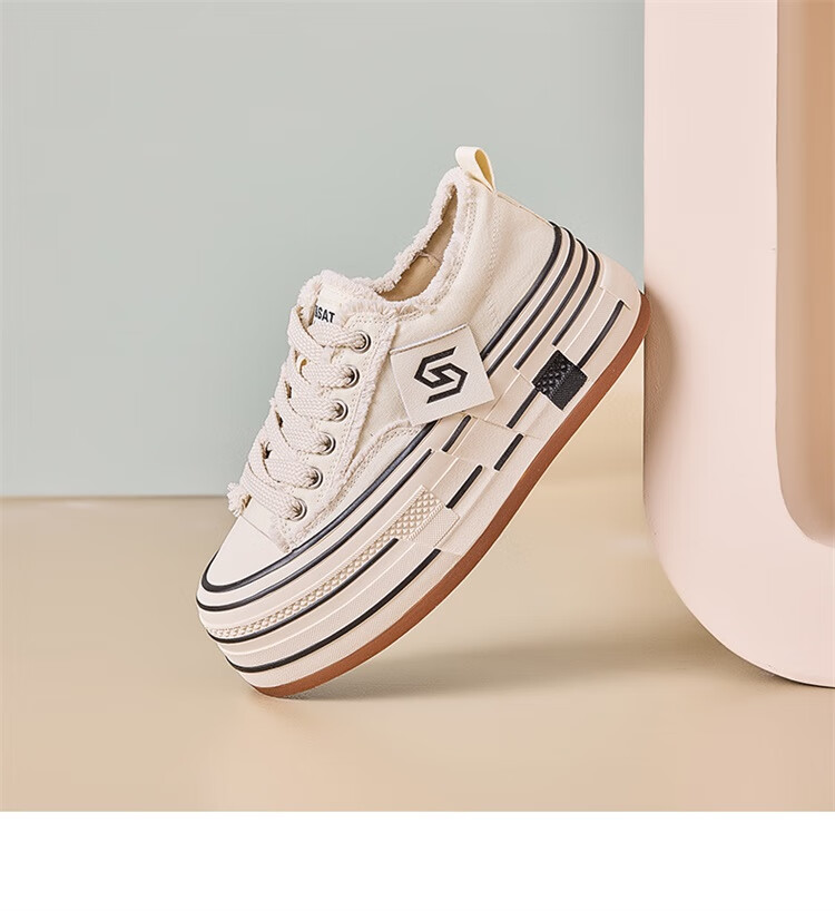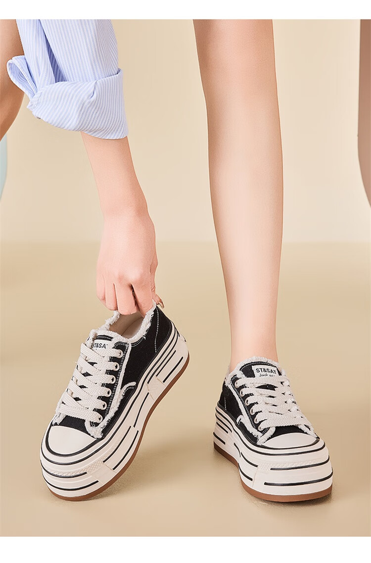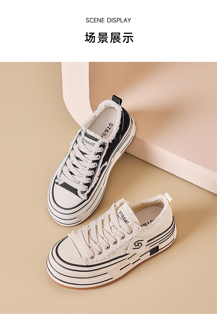 星期六(St&Sat)厚底帆布鞋女款2025新款增高乞丐鞋小白鞋软底休闲板鞋 黑色 35