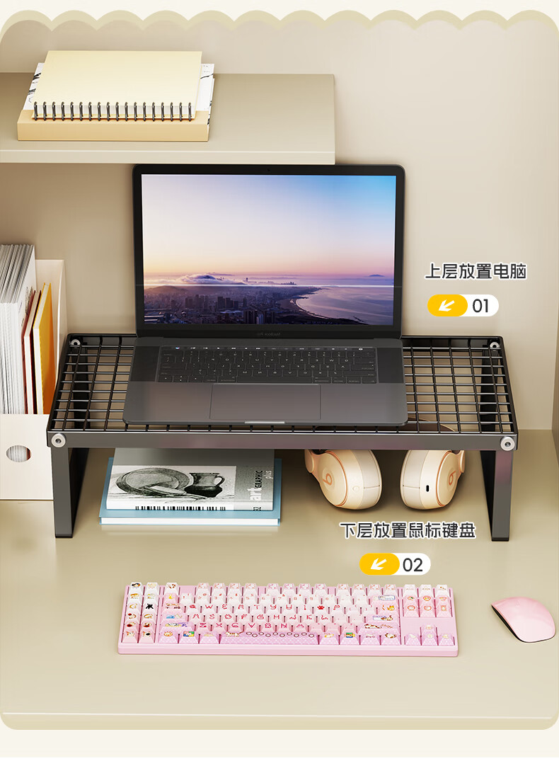 木格格笔记本电脑支架散热烧烤架游戏本电脑增高架桌面电脑加电脑置物架 黑色小号