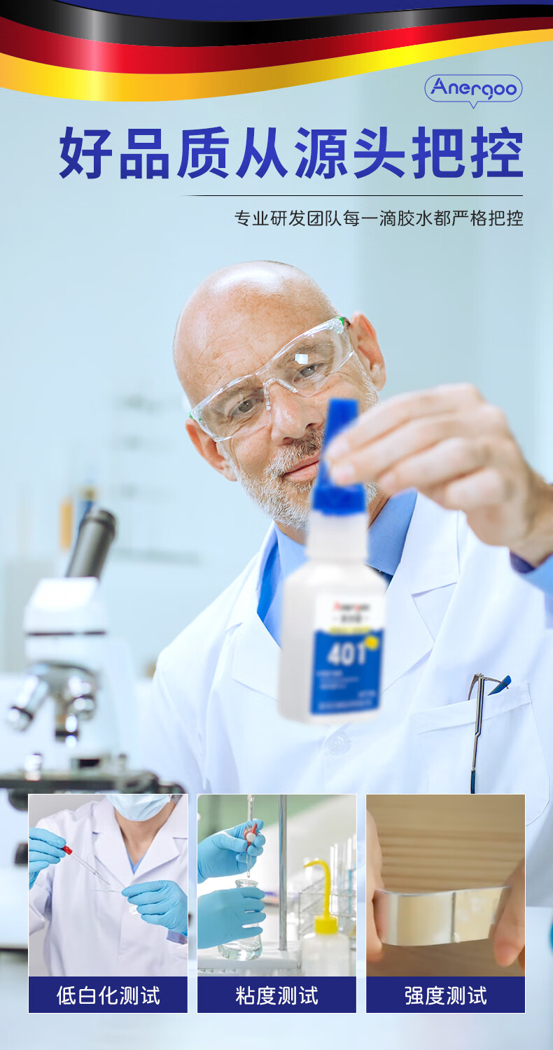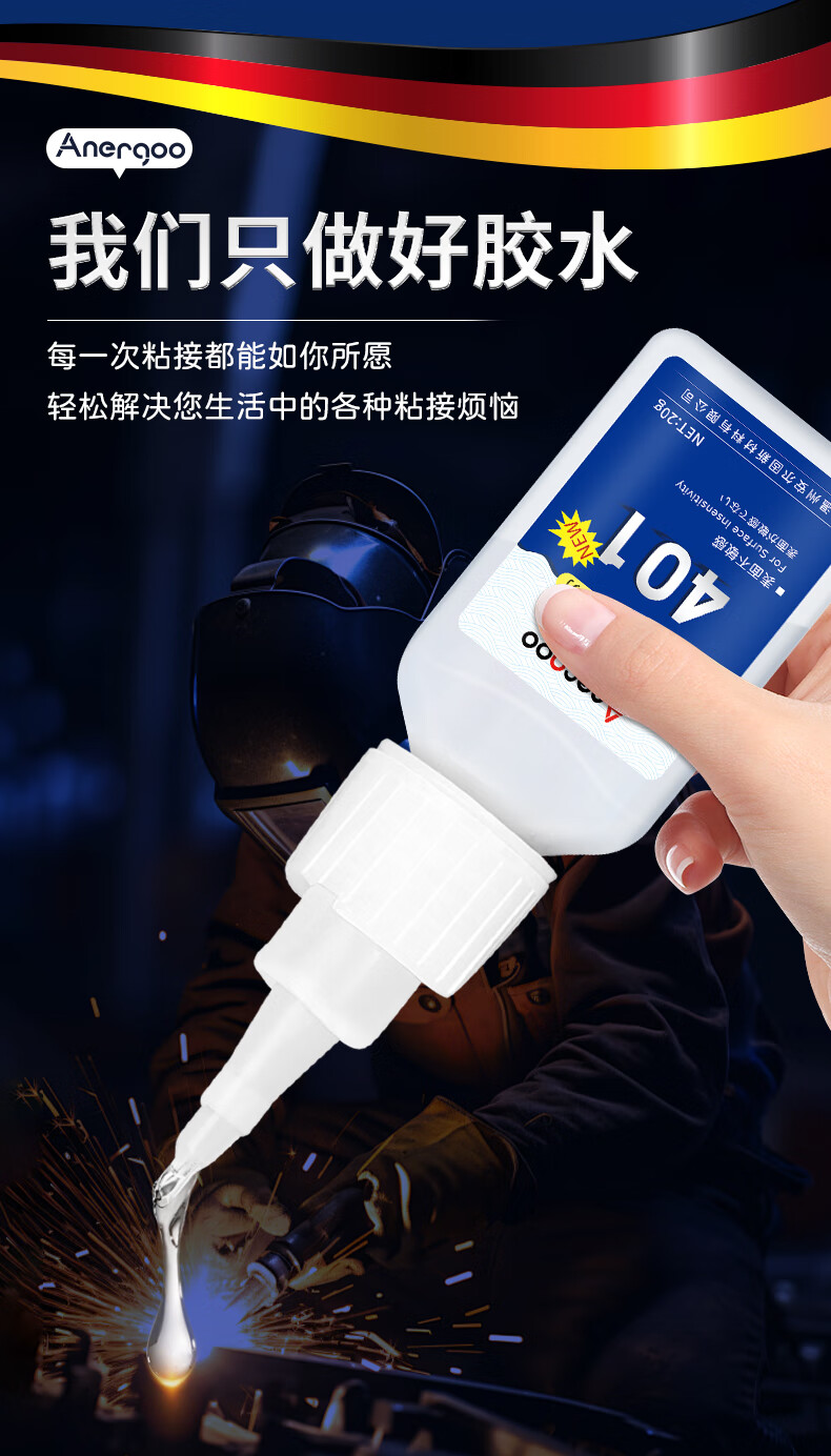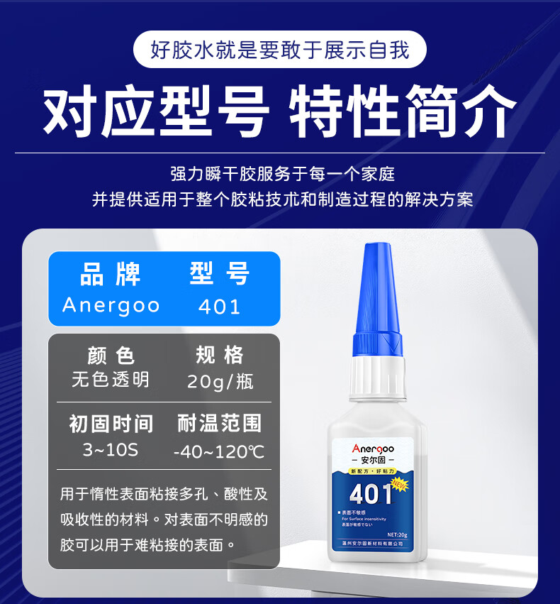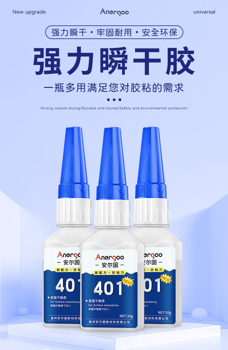 ANERGOO 安尔固 401强力胶水京东自营通用型瞬干无痕胶粘得牢金属纸张木材陶瓷塑料橡胶玉石胶快干透明万能胶