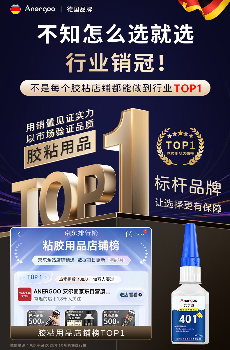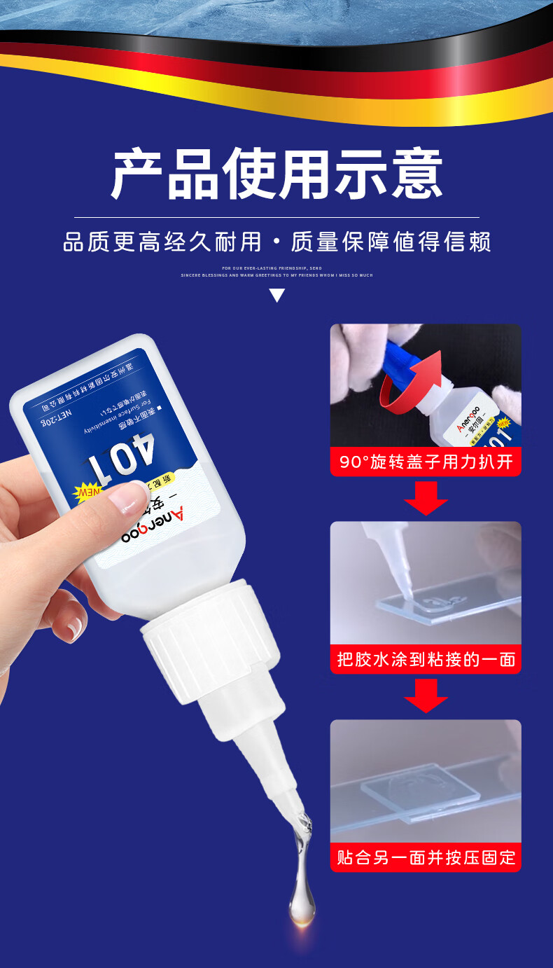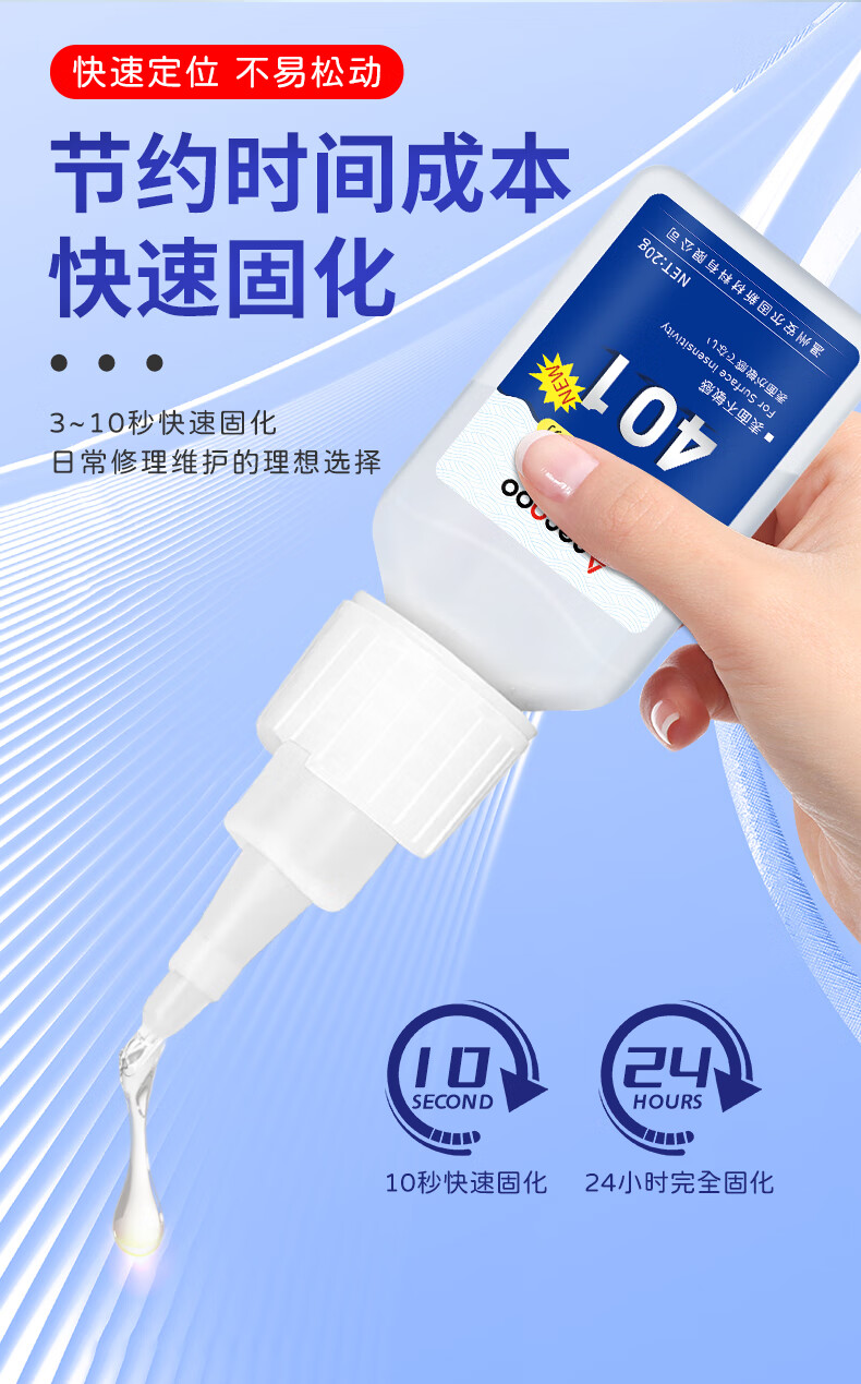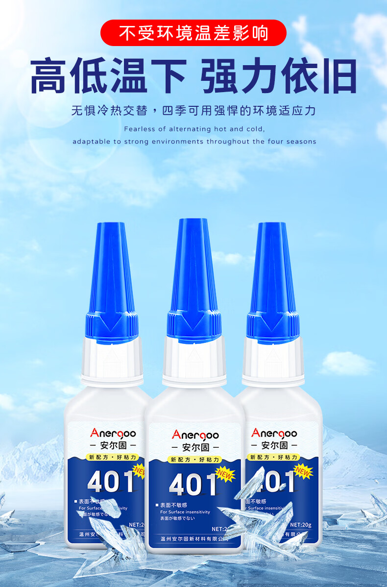ANERGOO 安尔固 401强力胶水京东自营通用型瞬干无痕胶粘得牢金属纸张木材陶瓷塑料橡胶玉石胶快干透明万能胶