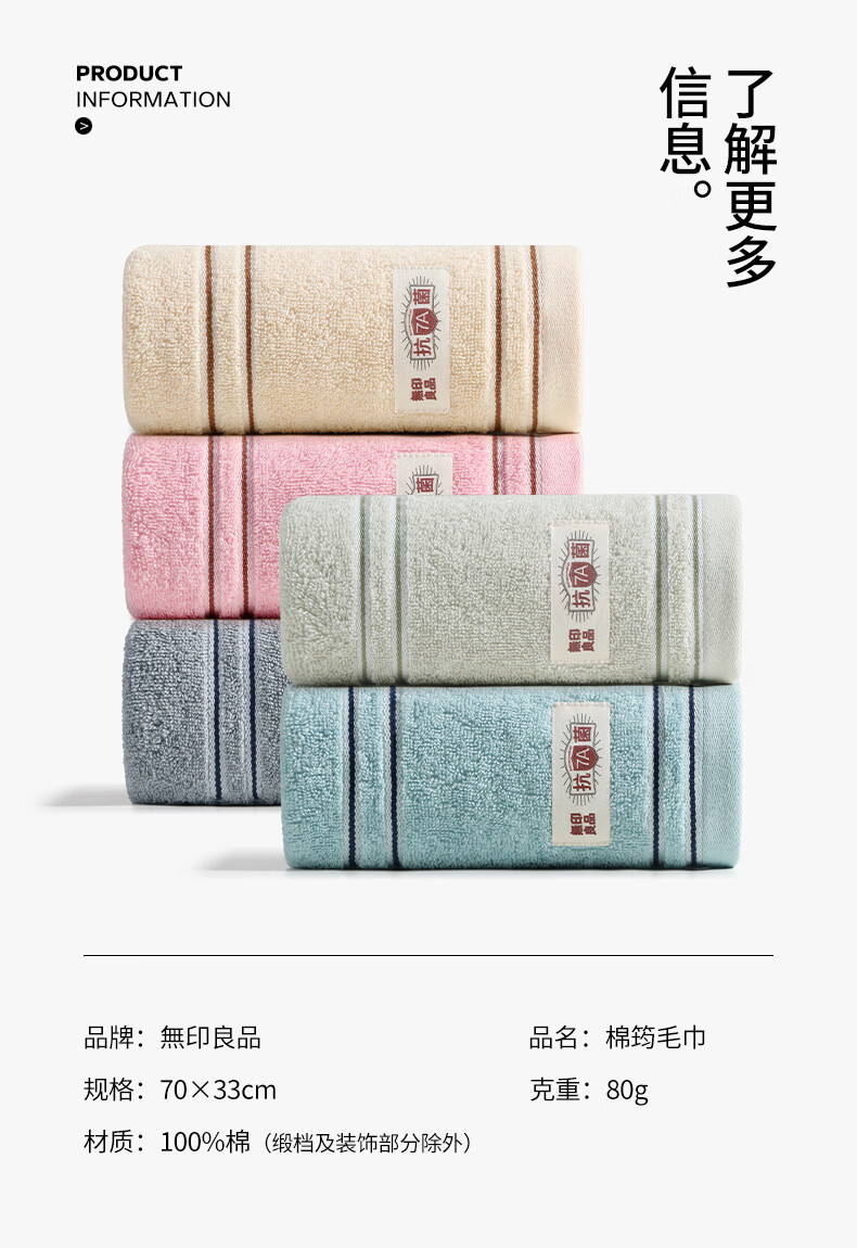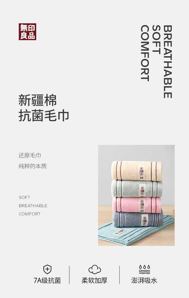 无印良品毛巾10条装抗菌新疆全棉家庭100%纯棉企业采购专供团购批发价毛巾