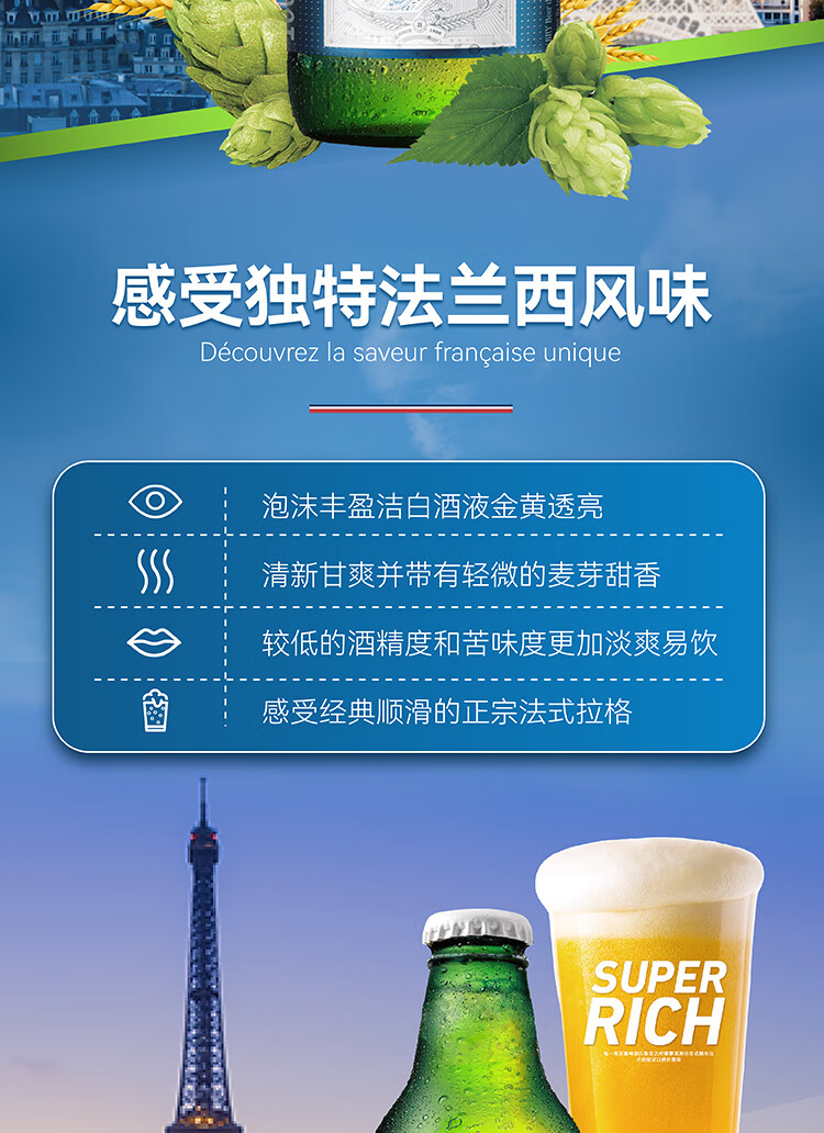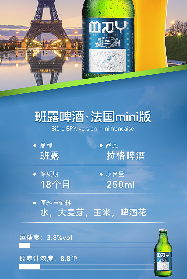 班露(BRY)法国原装进口小麦啤酒法兰西版便携旅行装250ml*6 班露啤酒 250mL 6瓶 组合装