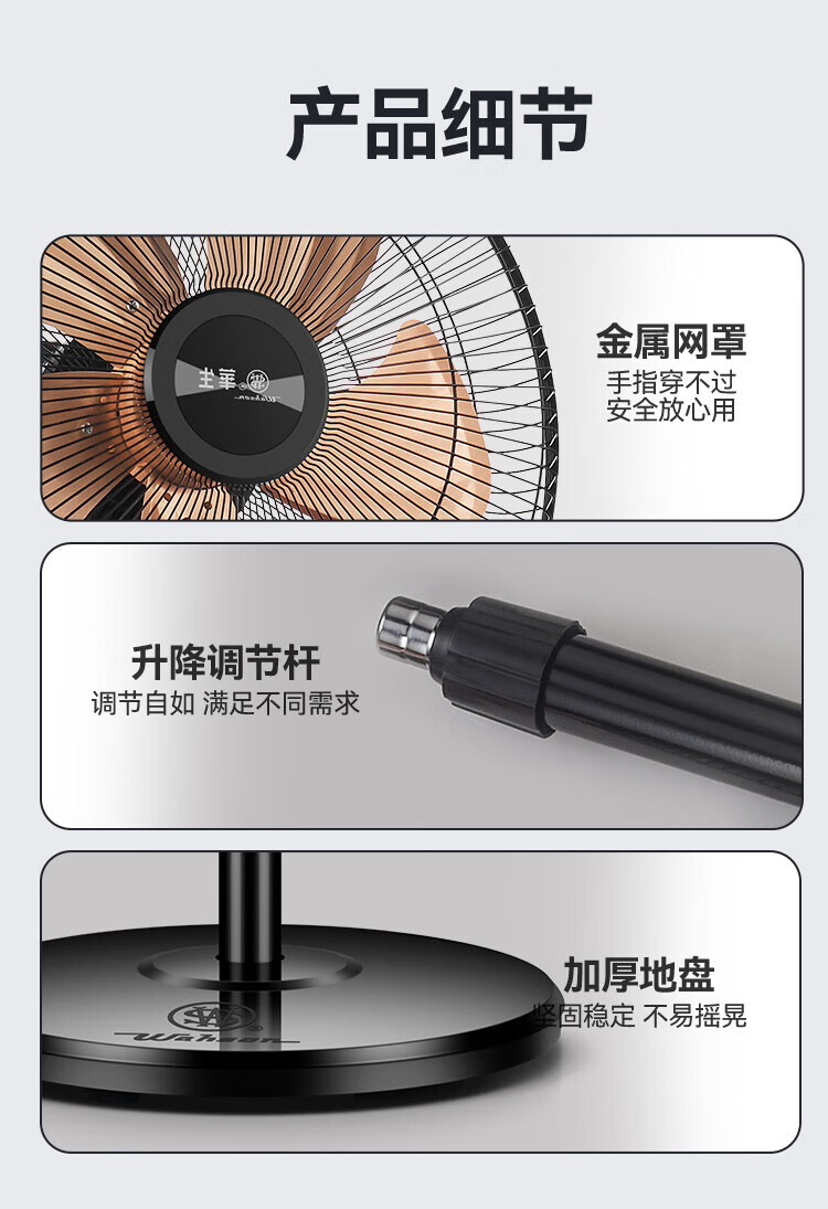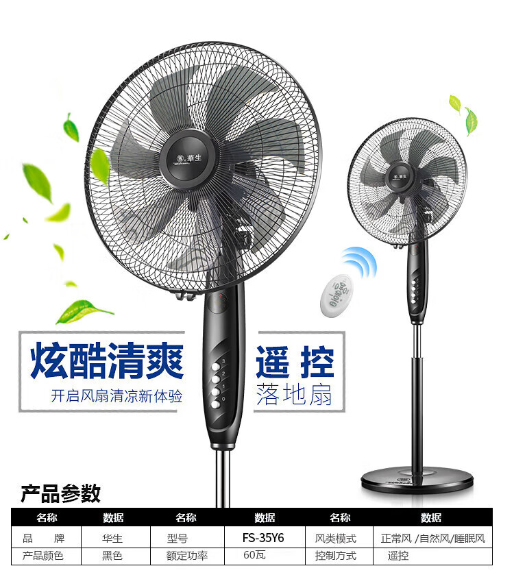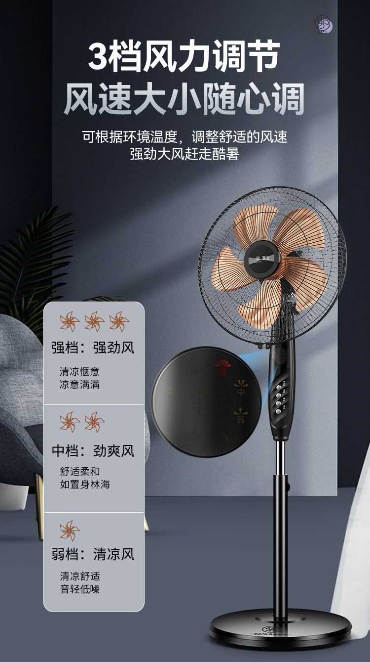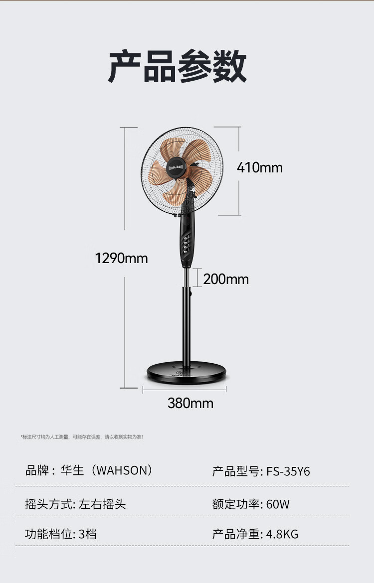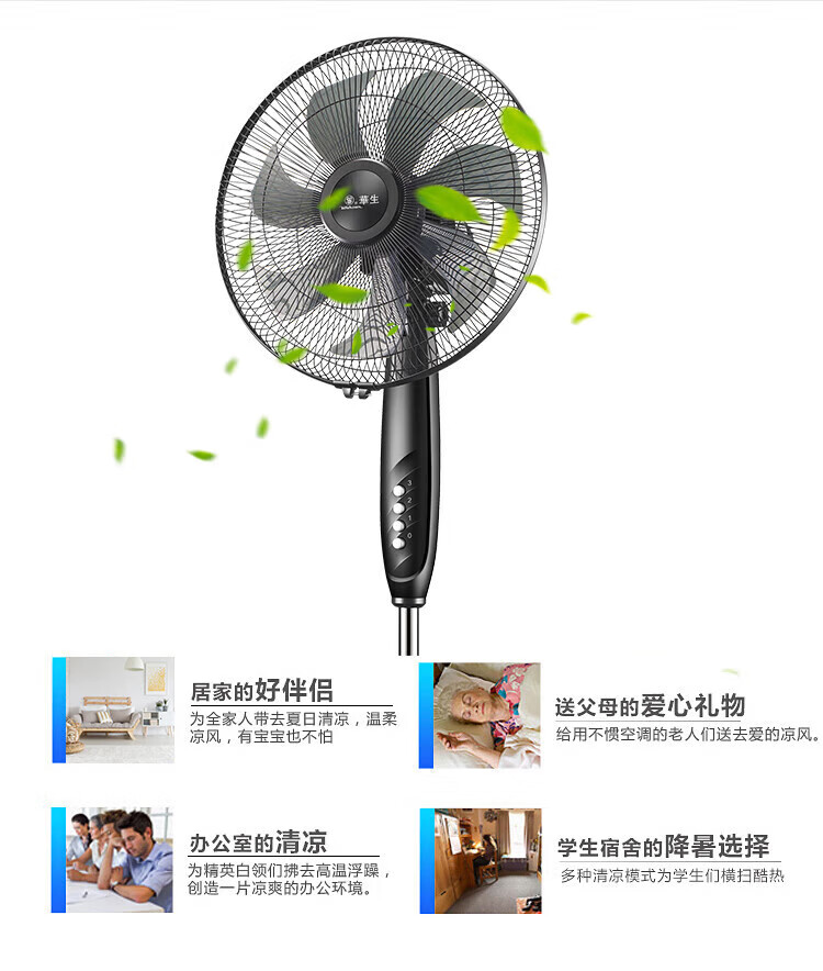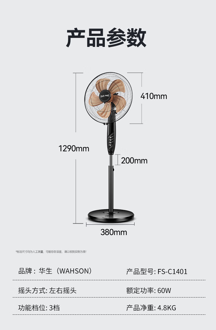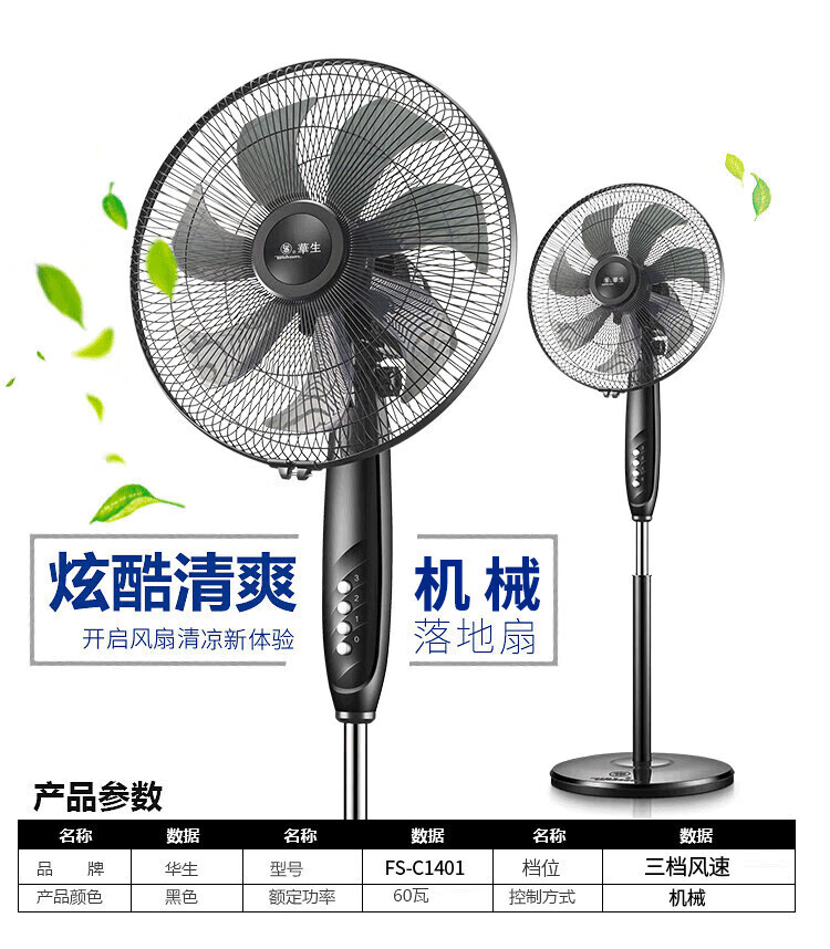 华生(Wahson)电风扇/落地扇/电扇立式台扇/家用商务风扇低噪大风量办公循环空气扇 推荐FS-D1401
