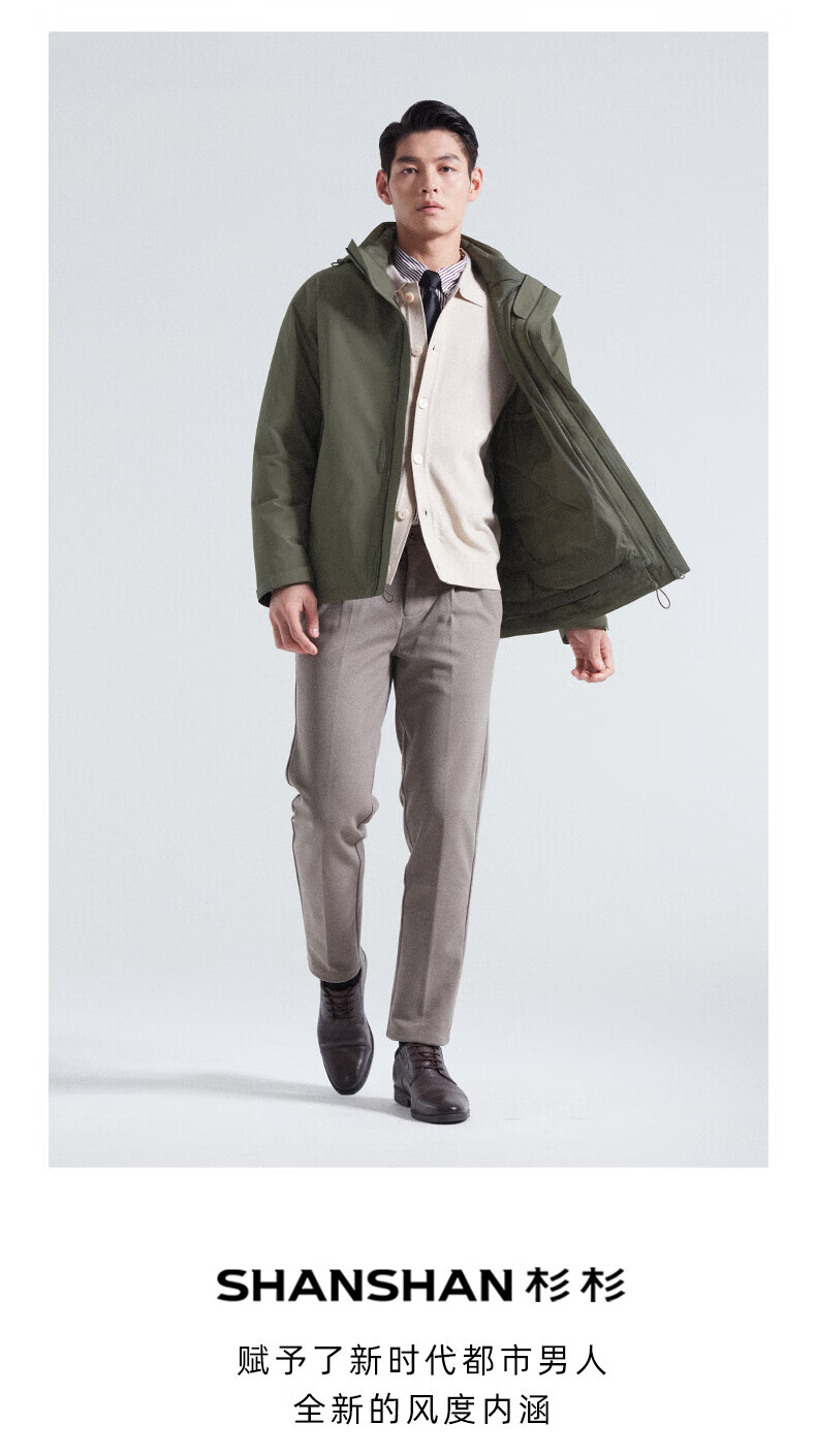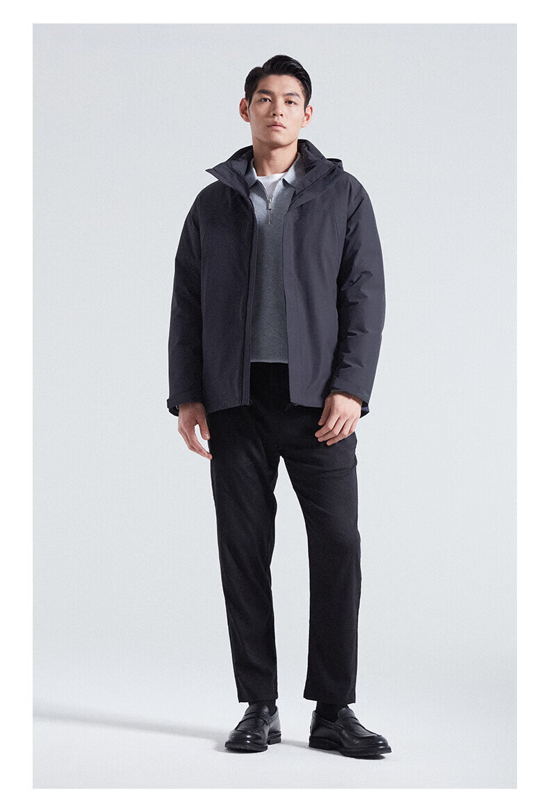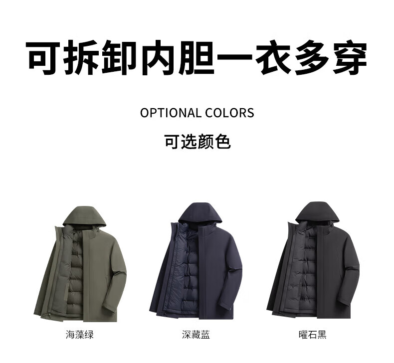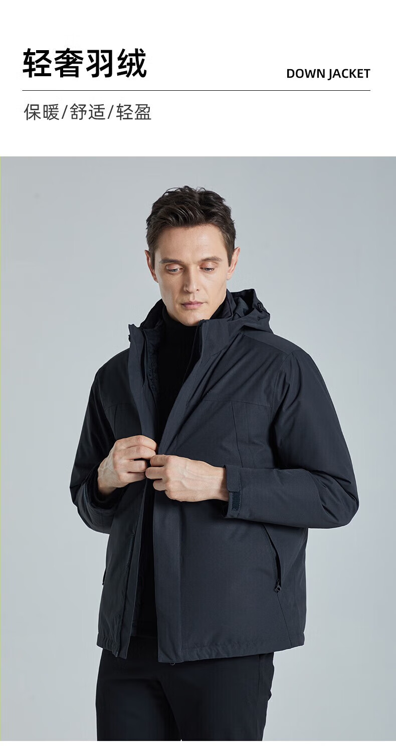 SHANSHAN杉杉【三合一可拆卸】羽绒服男士秋冬新款鸭绒防风保暖连帽外套 深藏蓝 【户外冲锋羽绒 帽子+内胆可拆】 L (175/92A)