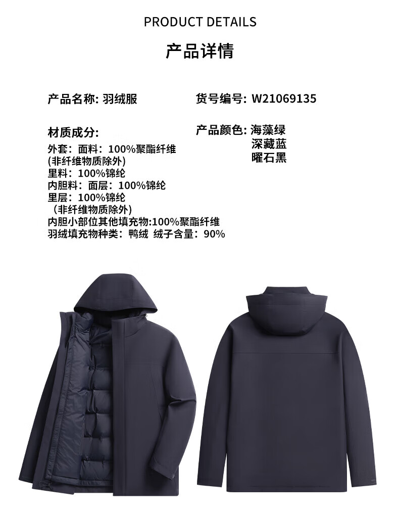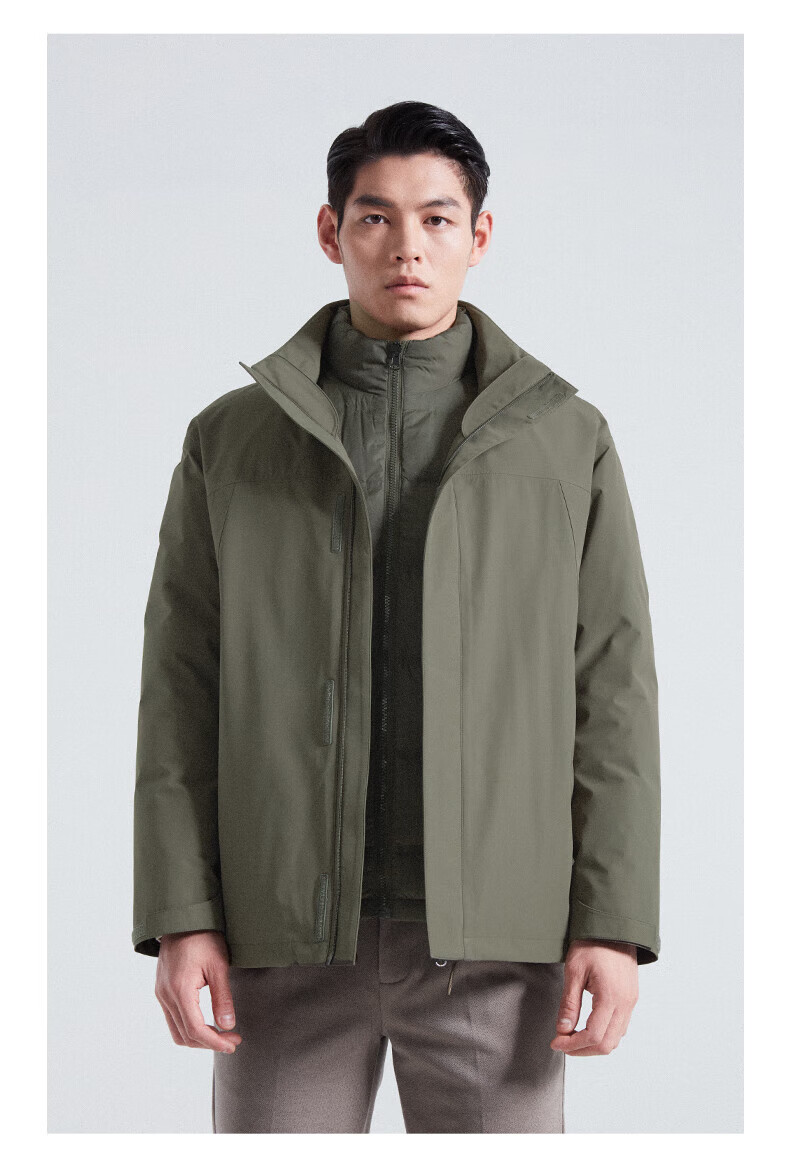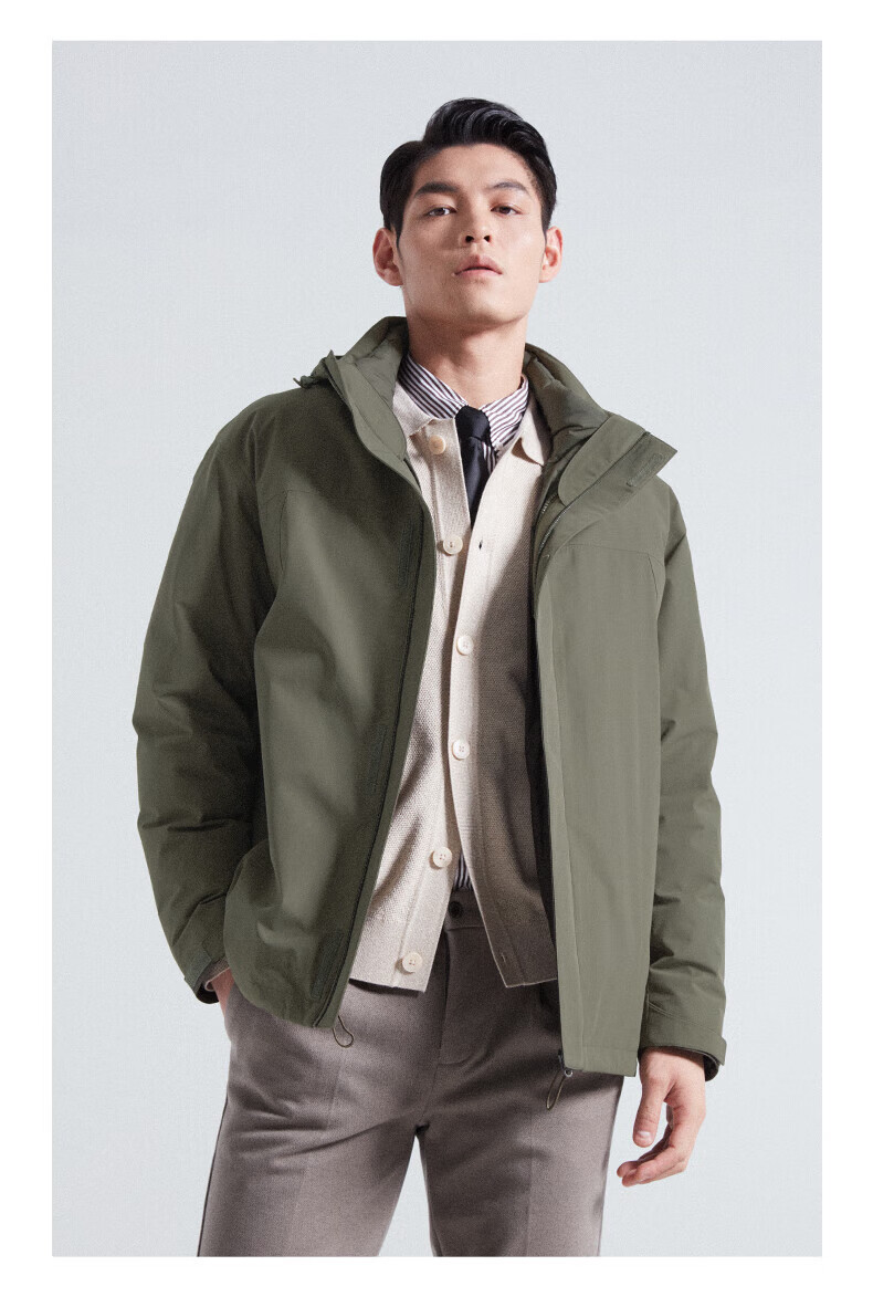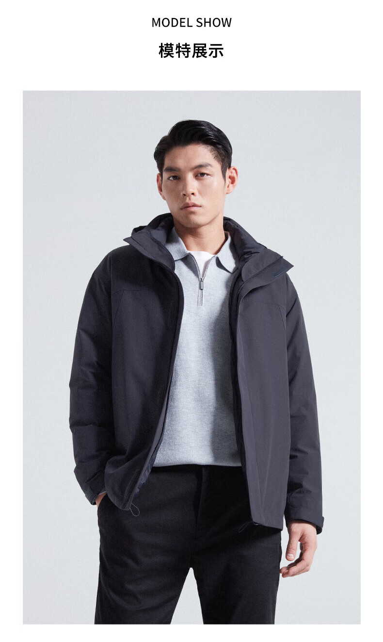 SHANSHAN杉杉【三合一可拆卸】羽绒服男士秋冬新款鸭绒防风保暖连帽外套 深藏蓝 【户外冲锋羽绒 帽子+内胆可拆】 L (175/92A)