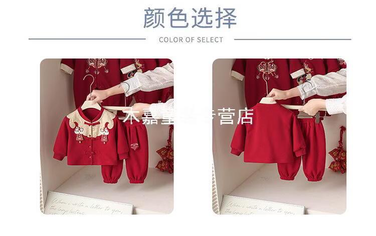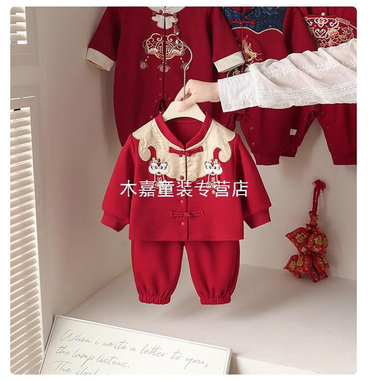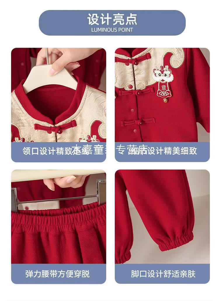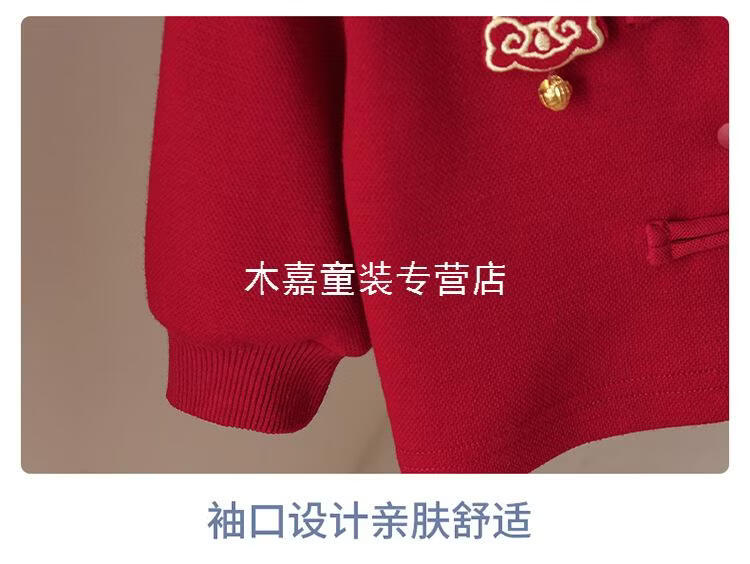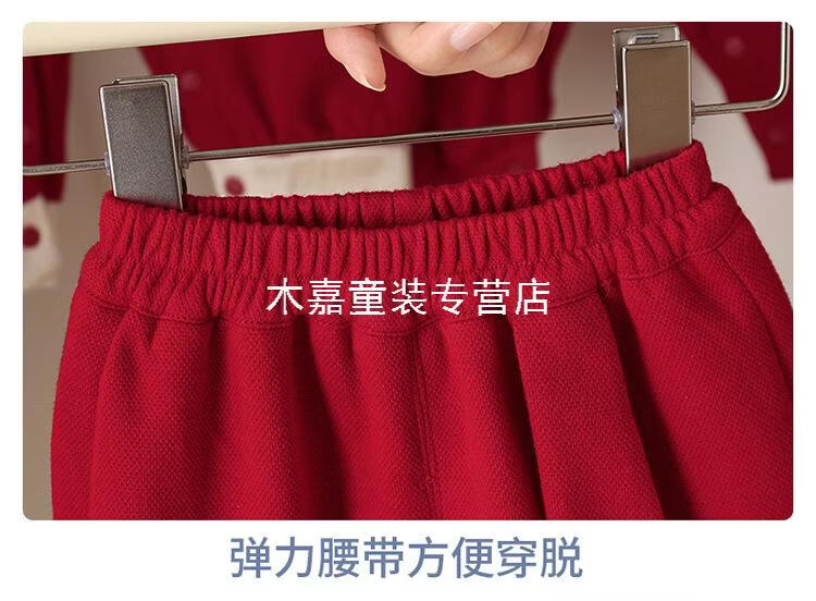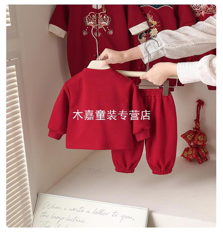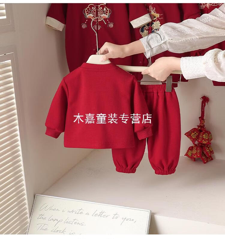 GOOFLORON一周岁礼服男宝宝儿童过年衣服春秋装红色喜庆宝宝分体两件套 红色上衣+裤子(不含帽子) 100 cm